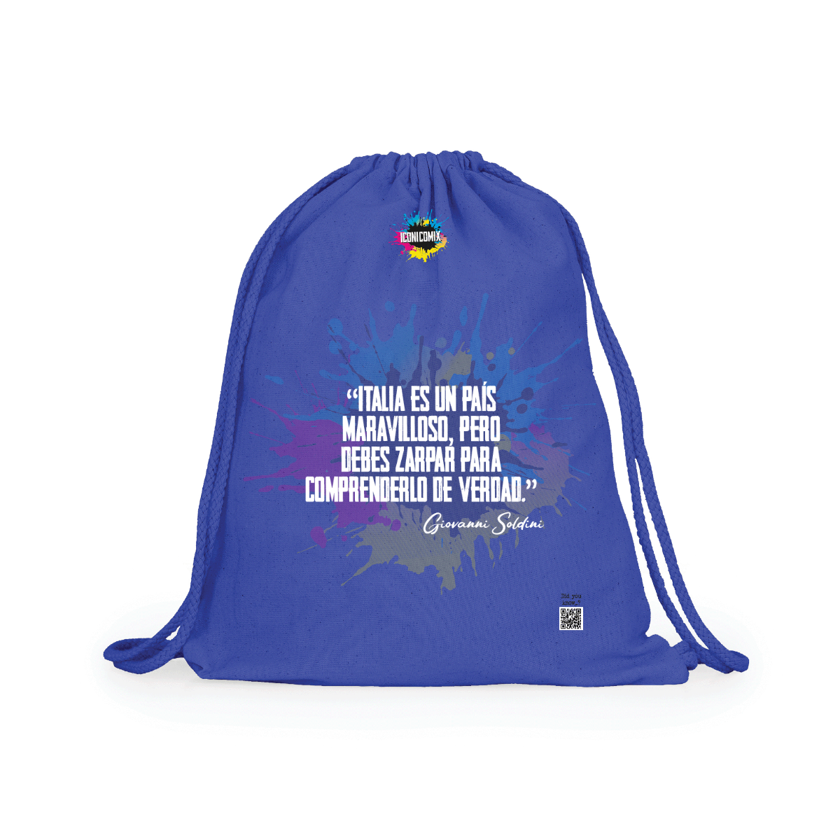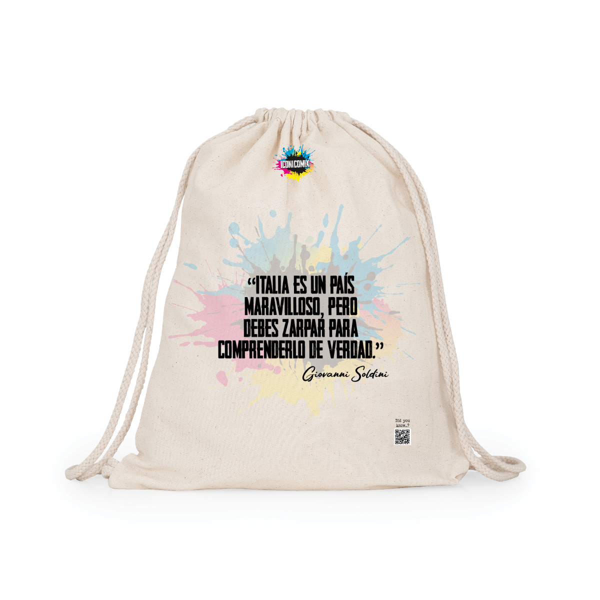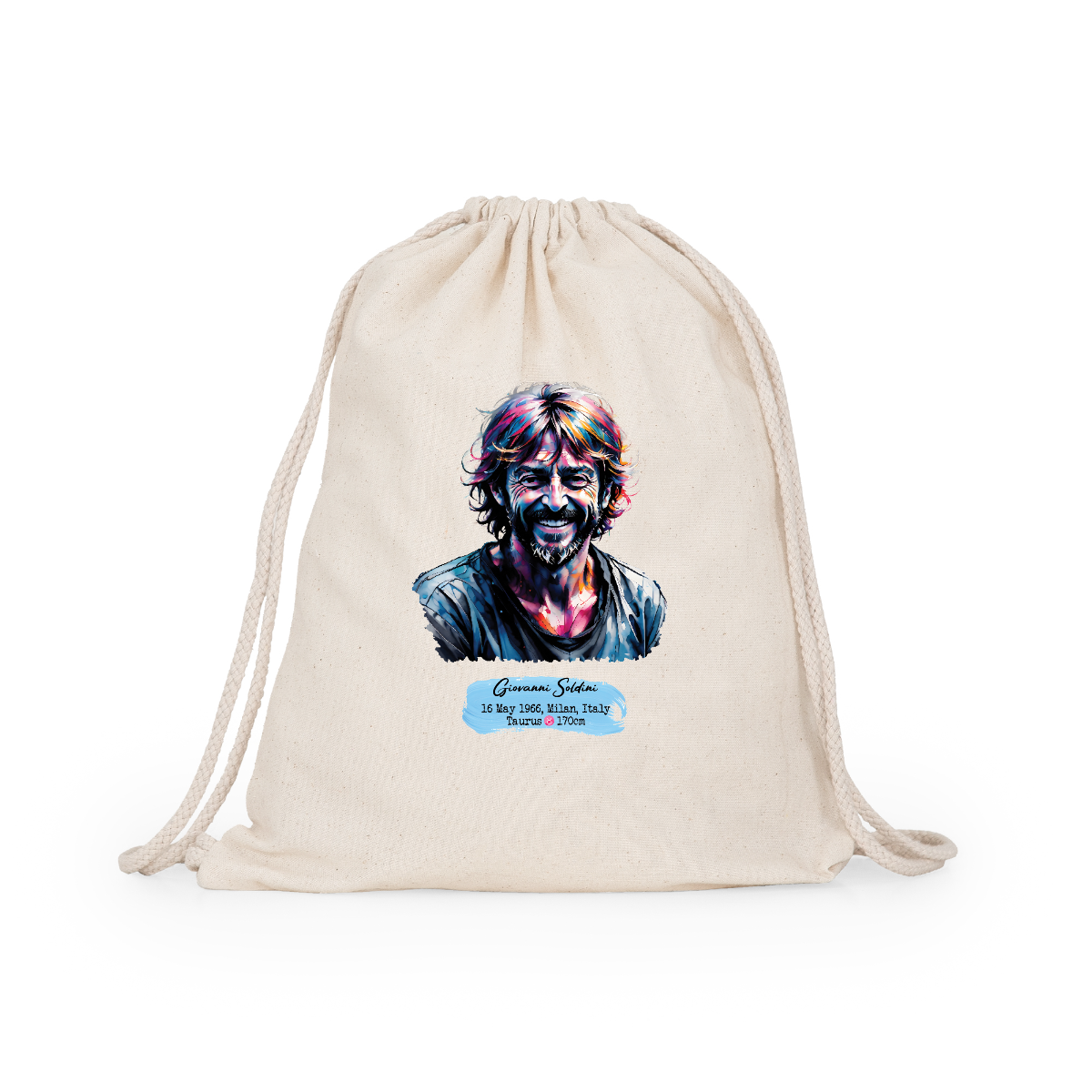 Mochila multiusos de algodón. Cordones ajustables en la espalda a juego de 8 mm de grosor. 100 % algodón, 140 g/m².  Medidas 37 cm / 41 cm