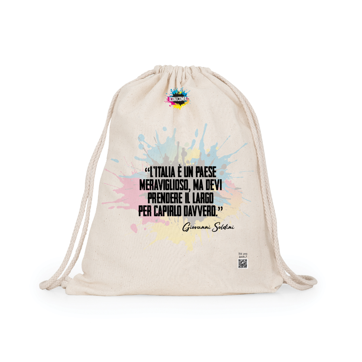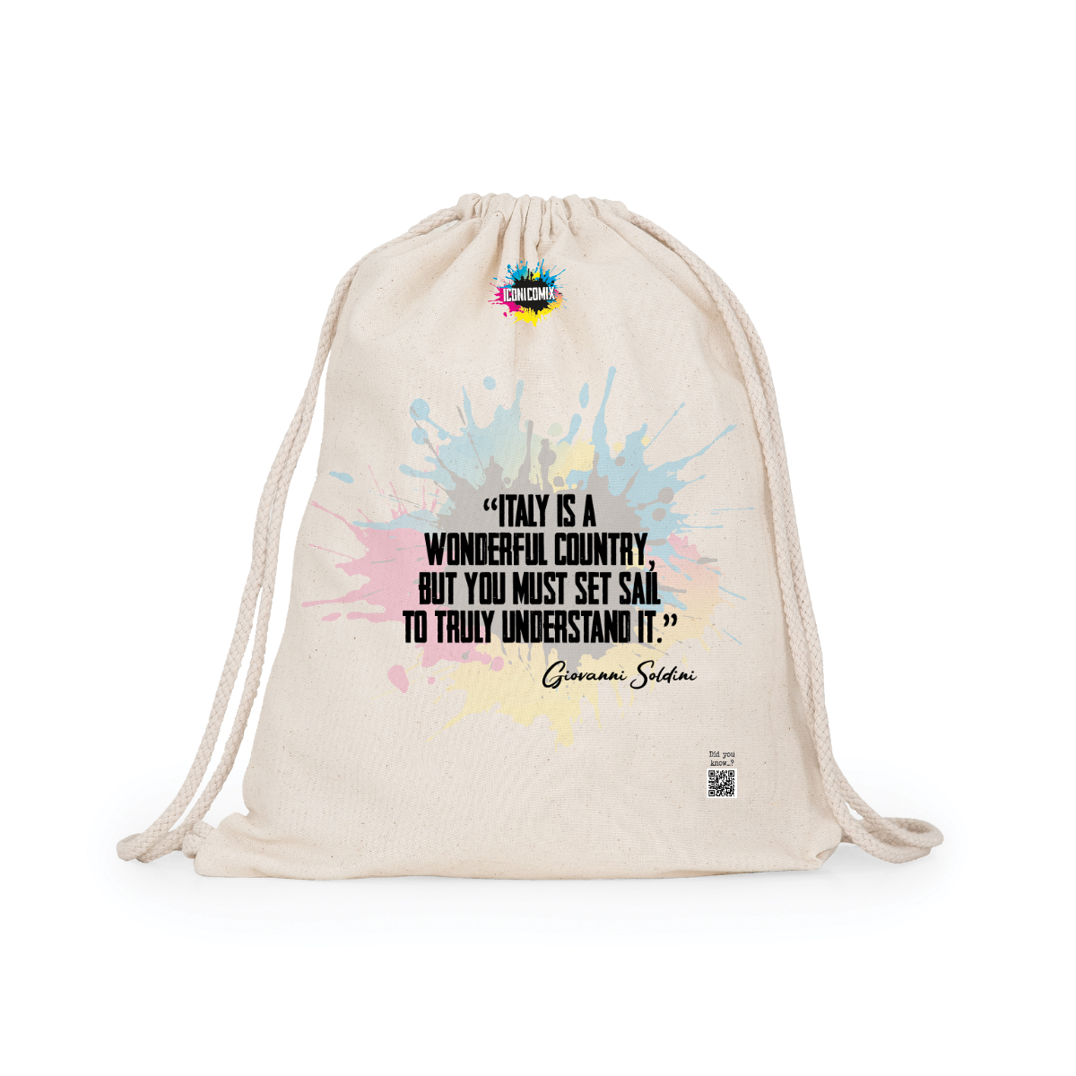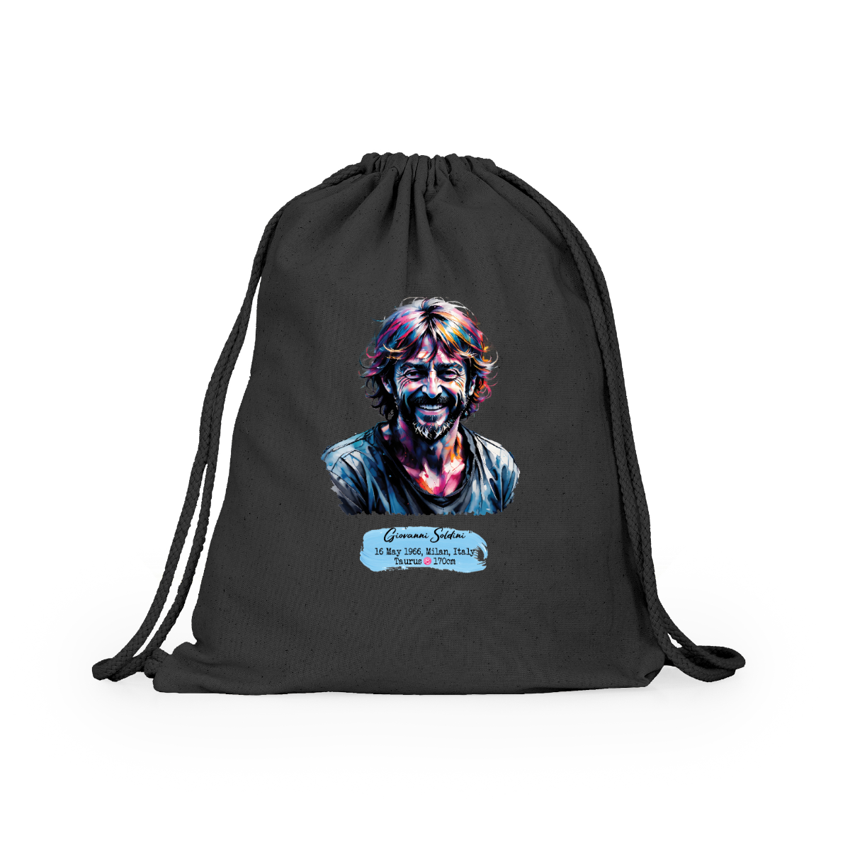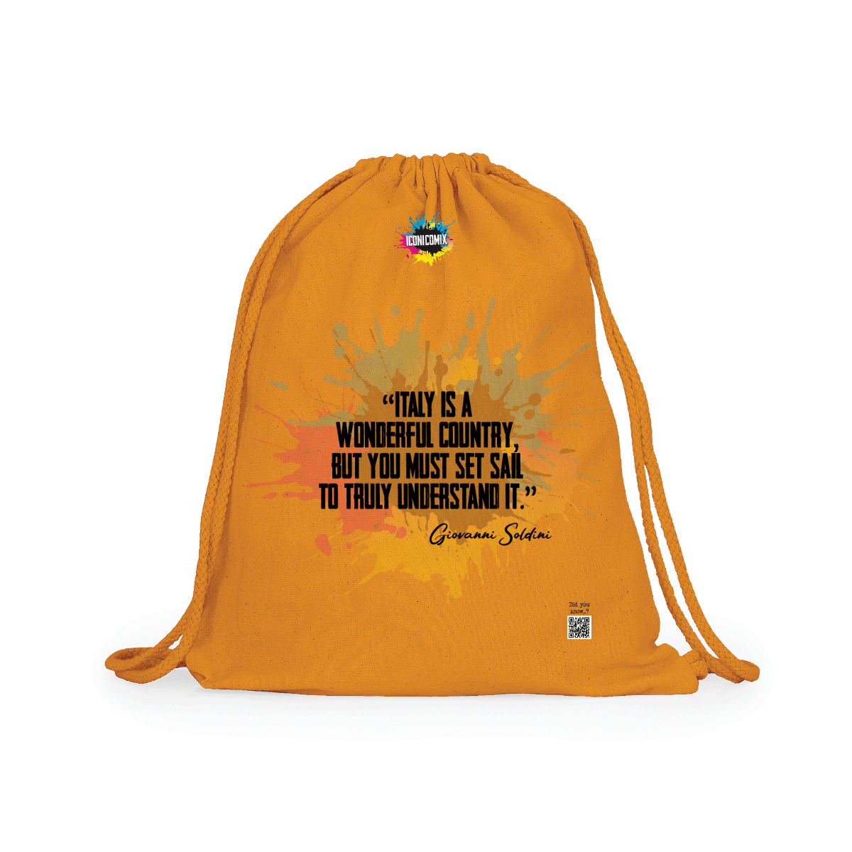 Mochila multiusos de algodón. Cordones ajustables en la espalda a juego de 8 mm de grosor. 100 % algodón, 140 g/m².  Medidas 37 cm / 41 cm