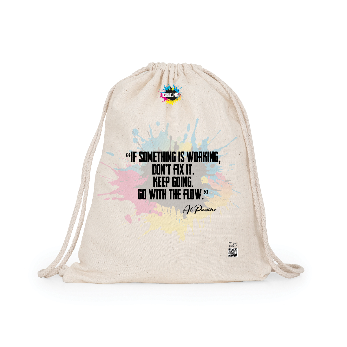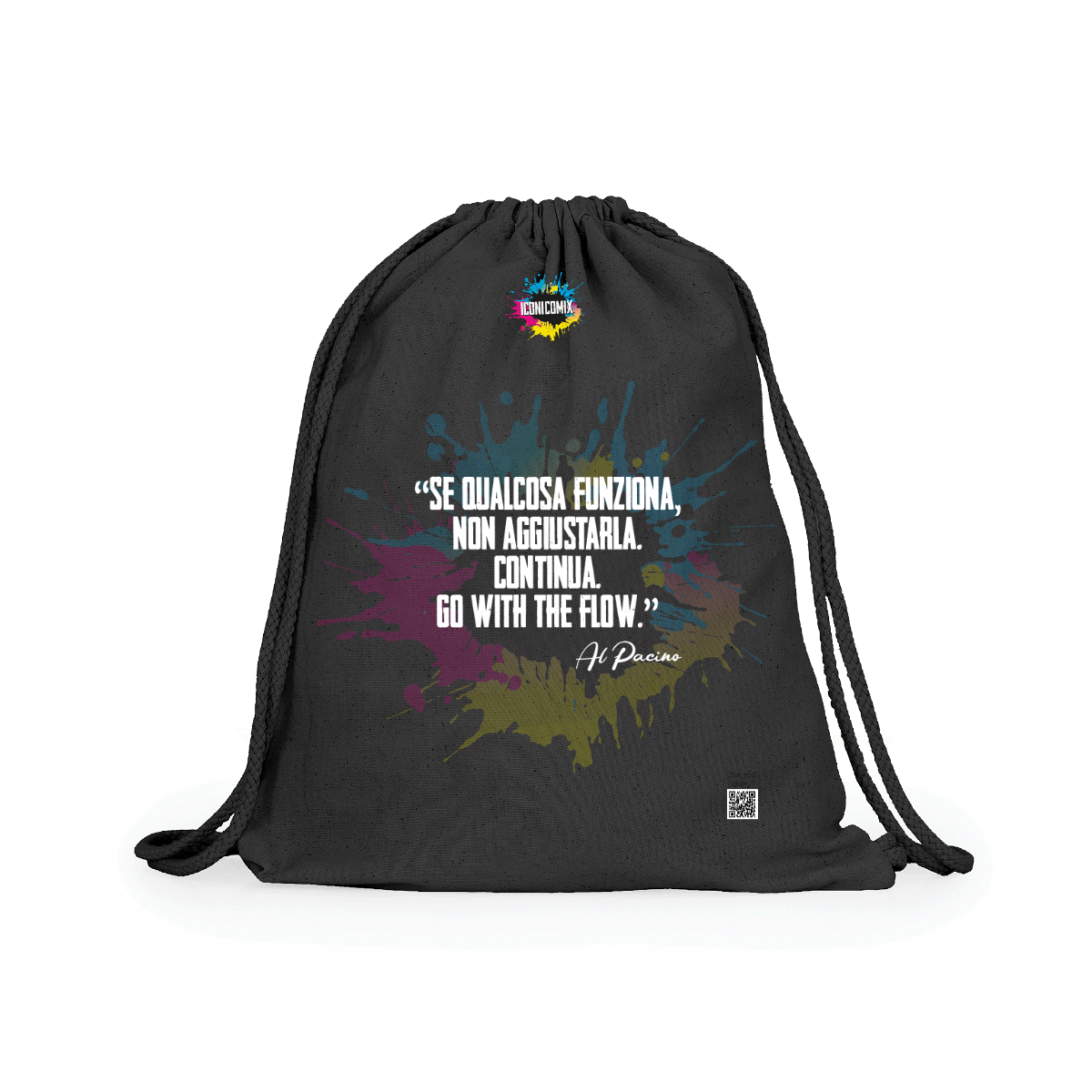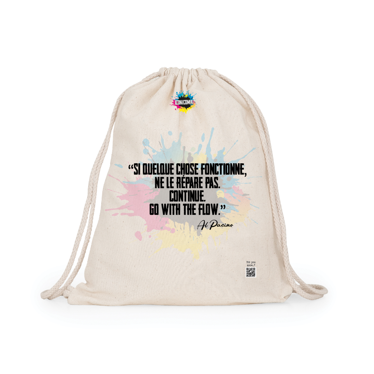 Zaino multiuso in cotone. Cordoni regolabili nella schiena in tinta di 8mm di spessore. 100% cotone,140 g/m².  Misure 37cm / 41cm