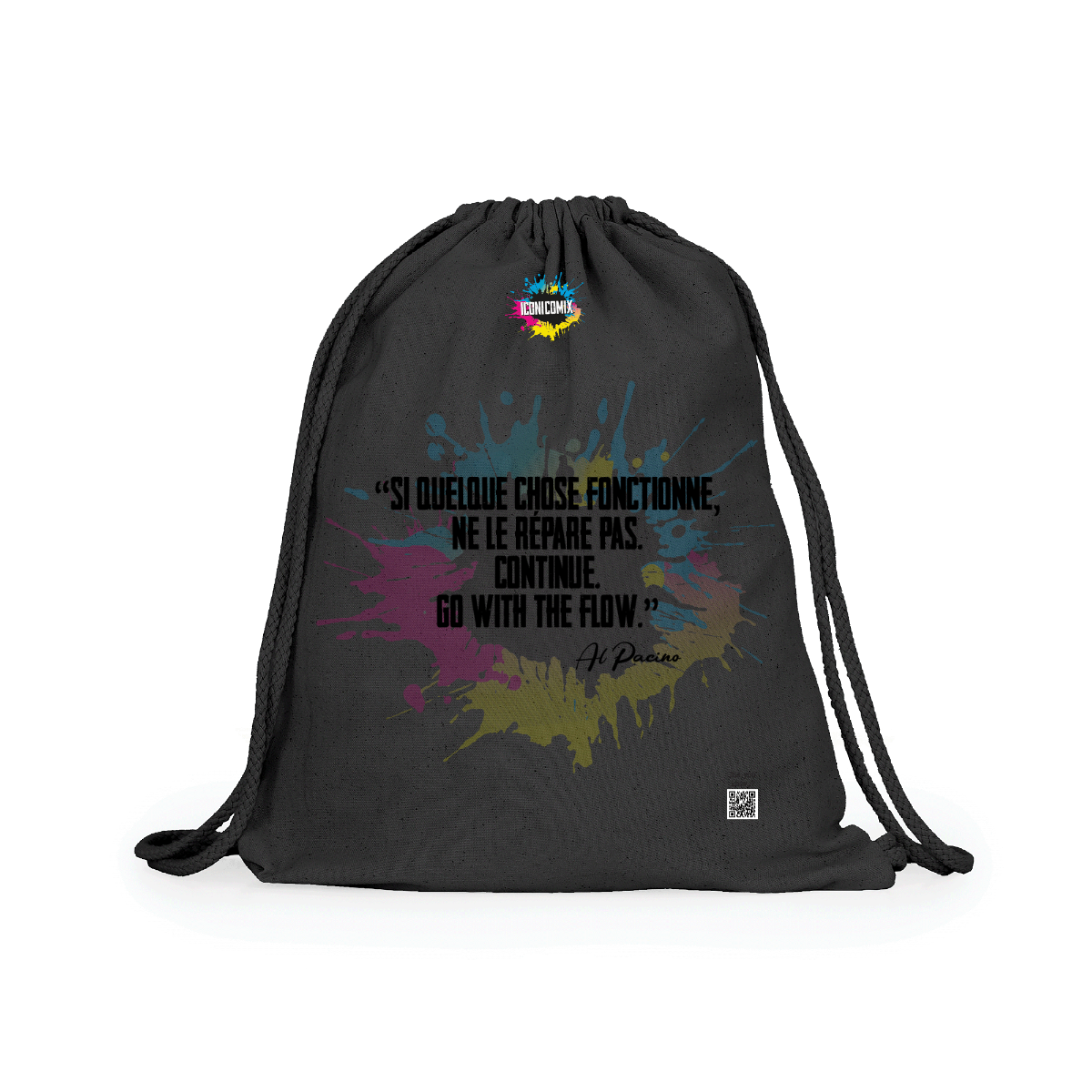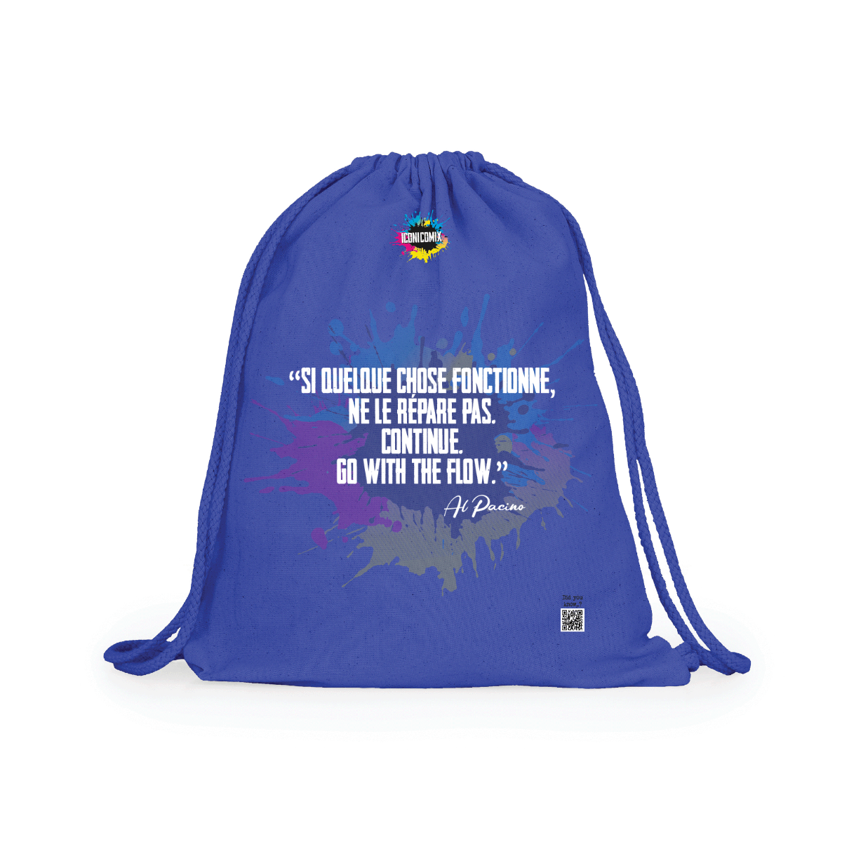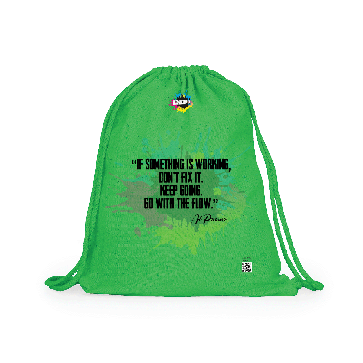 Zaino multiuso in cotone. Cordoni regolabili nella schiena in tinta di 8mm di spessore. 100% cotone,140 g/m².  Misure 37cm / 41cm