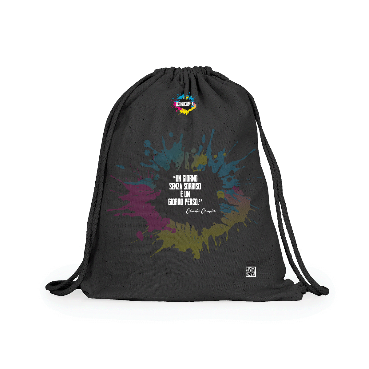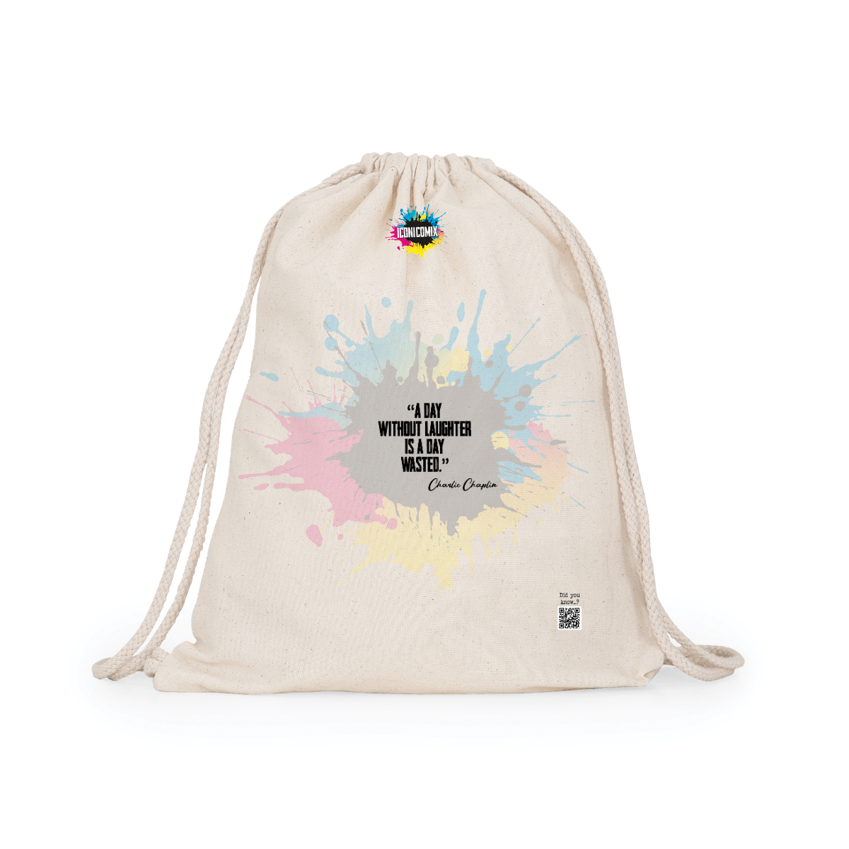 Sac à dos polyvalent en coton. Cordons réglables assortis à l'arrière, d'une épaisseur de 8 mm. 100 % coton, 140 g/m².  Dimensions 37 cm / 41 cm