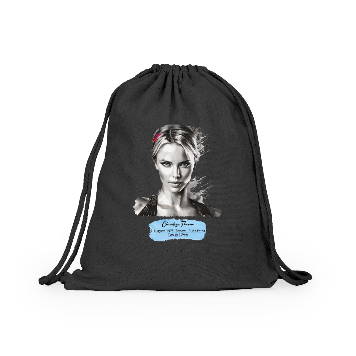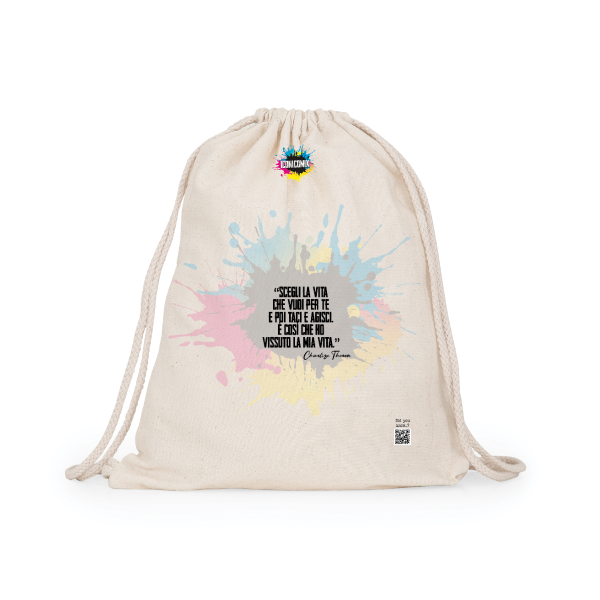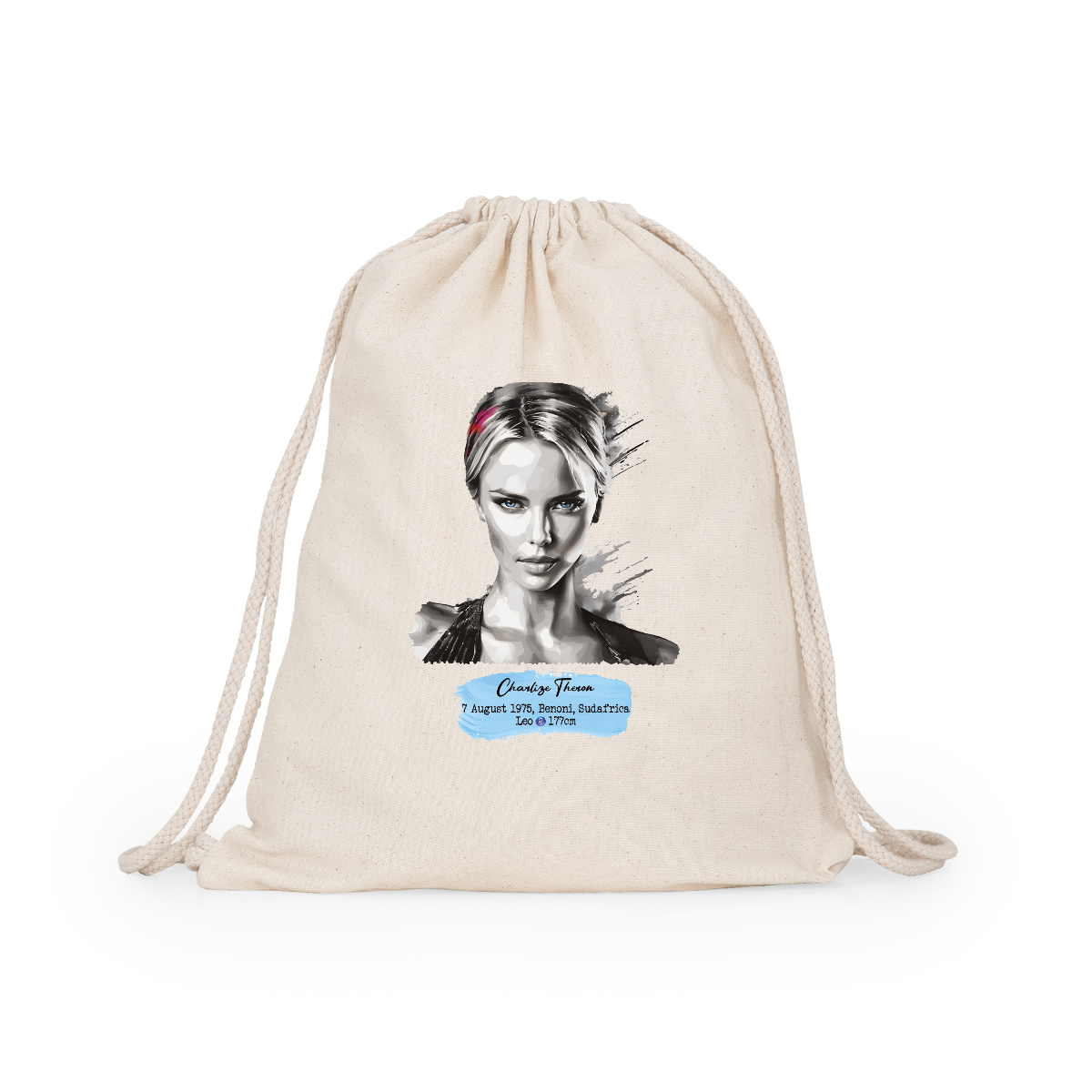 Multipurpose cotton backpack. Adjustable matching drawstrings on the back, 8 mm thick. 100% cotton, 140 g/m².  Measures 37cm / 41cm