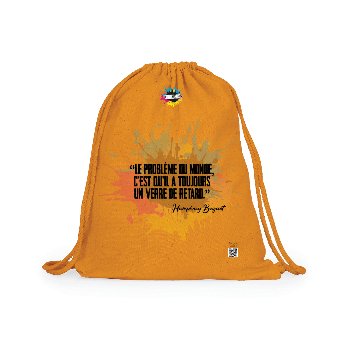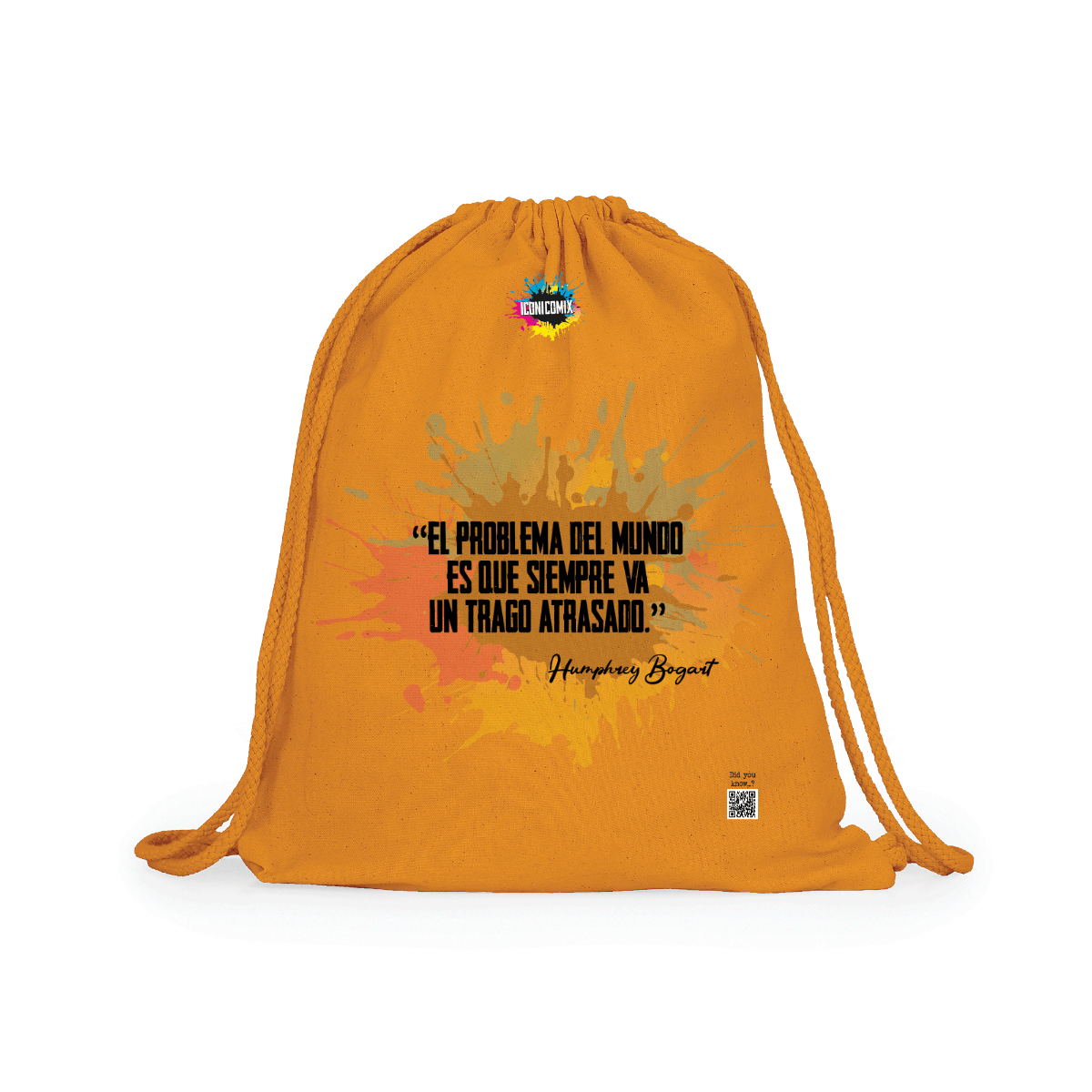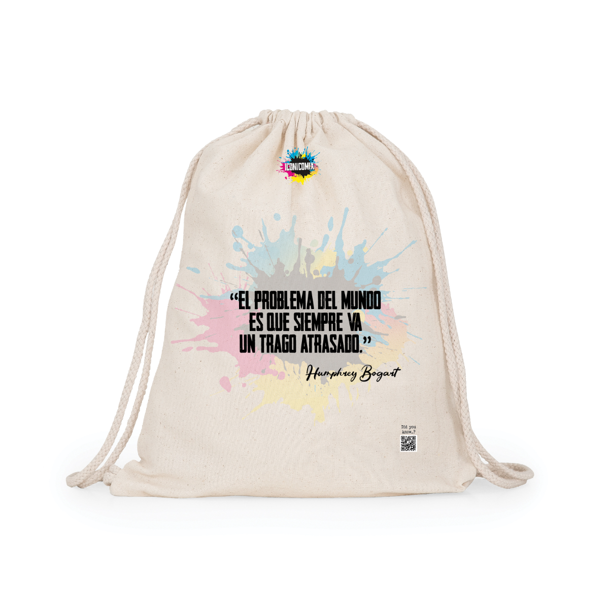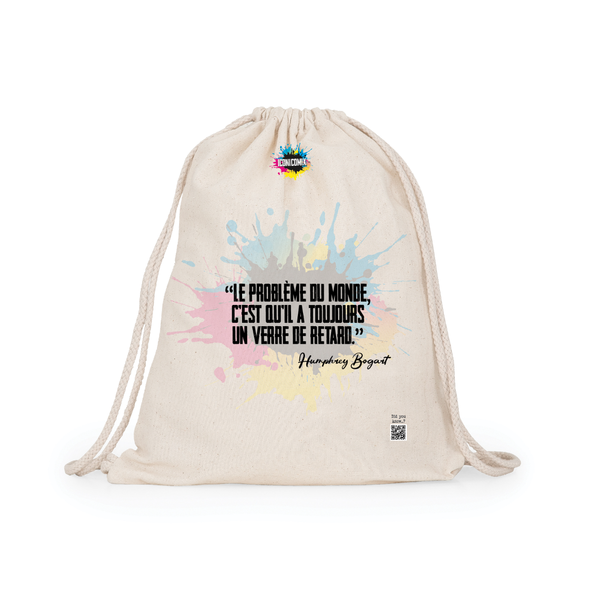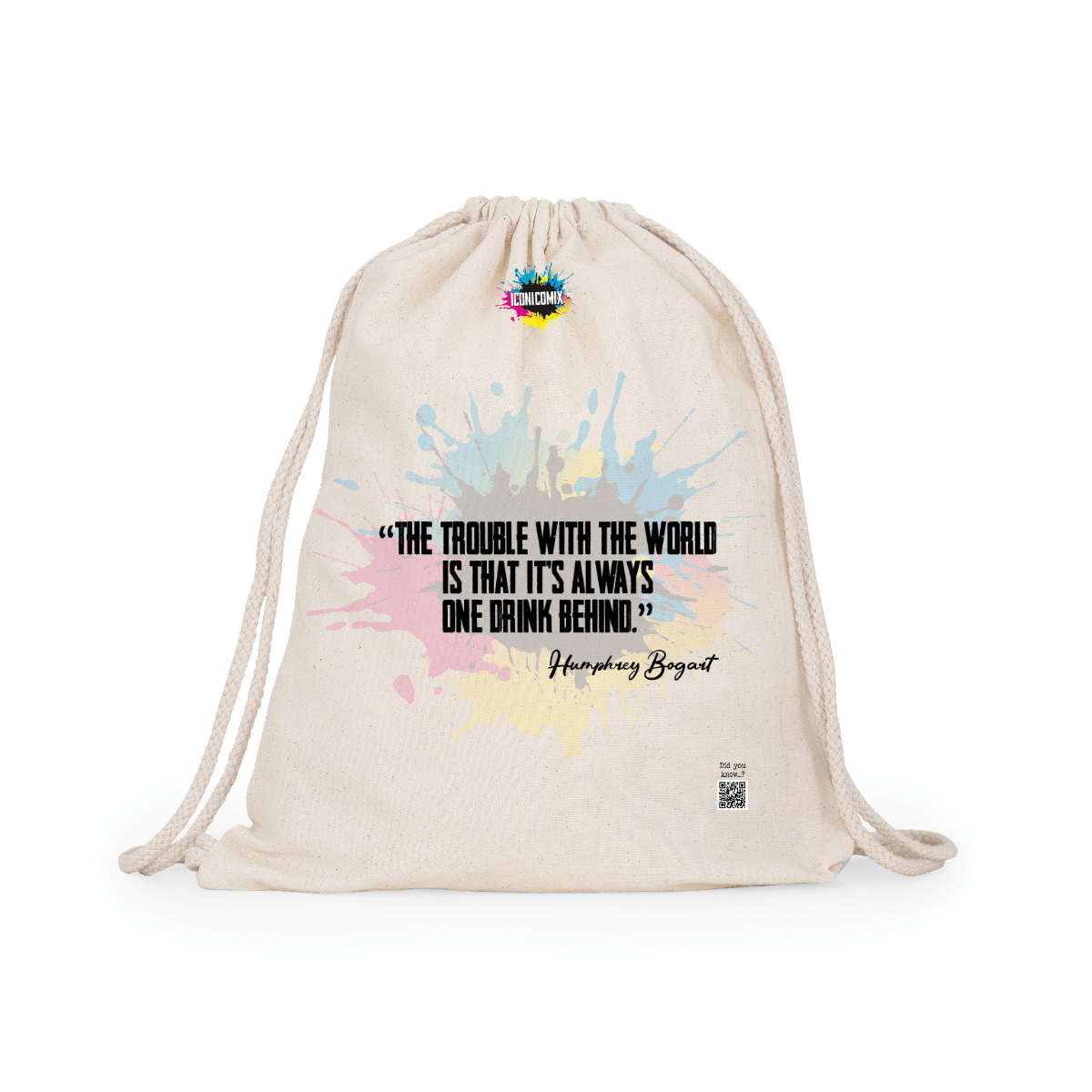 Mochila multiusos de algodón. Cordones ajustables en la espalda a juego de 8 mm de grosor. 100 % algodón, 140 g/m².  Medidas 37 cm / 41 cm