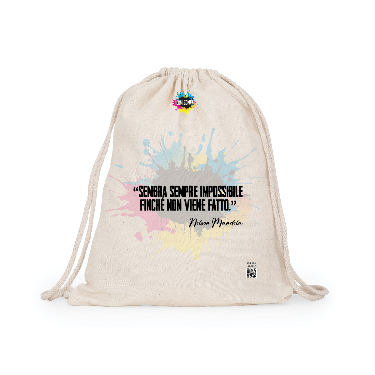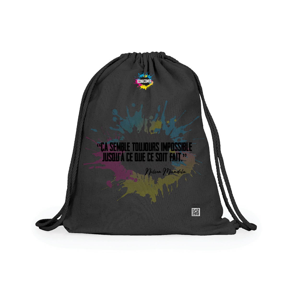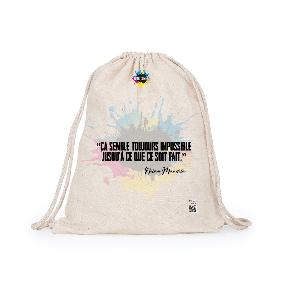 Sac à dos polyvalent en coton. Cordons réglables assortis à l'arrière, d'une épaisseur de 8 mm. 100 % coton, 140 g/m².  Dimensions 37 cm / 41 cm