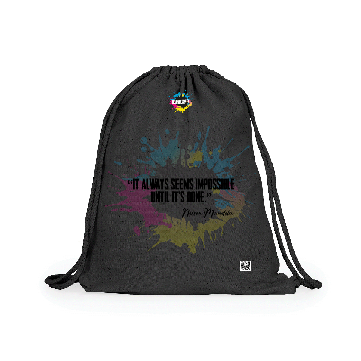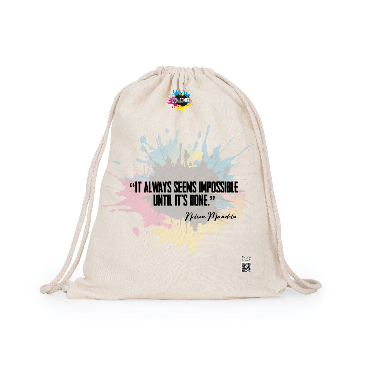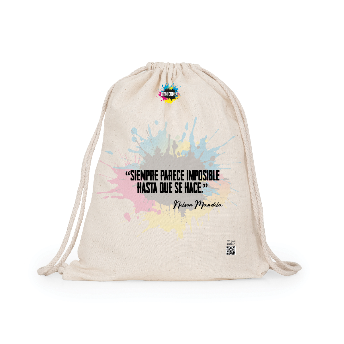 Sac à dos polyvalent en coton. Cordons réglables assortis à l'arrière, d'une épaisseur de 8 mm. 100 % coton, 140 g/m².  Dimensions 37 cm / 41 cm