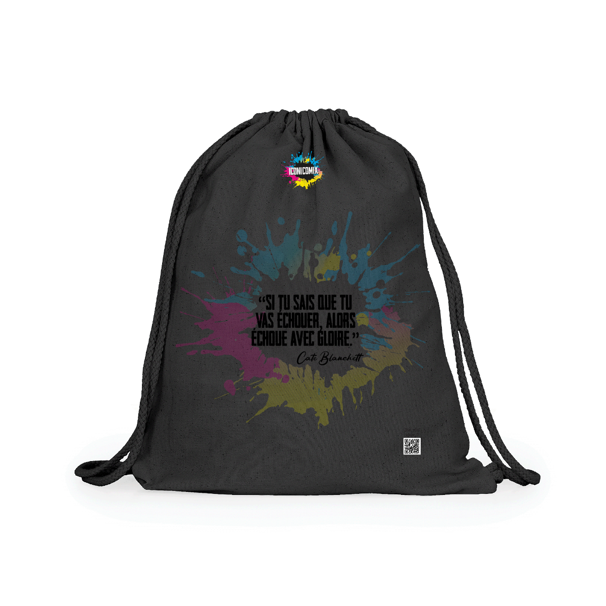 Zaino multiuso in cotone. Cordoni regolabili nella schiena in tinta di 8mm di spessore. 100% cotone,140 g/m².  Misure 37cm / 41cm