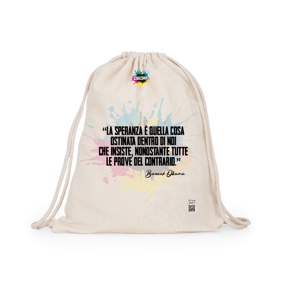 Zaino multiuso in cotone. Cordoni regolabili nella schiena in tinta di 8mm di spessore. 100% cotone,140 g/m².  Misure 37cm / 41cm