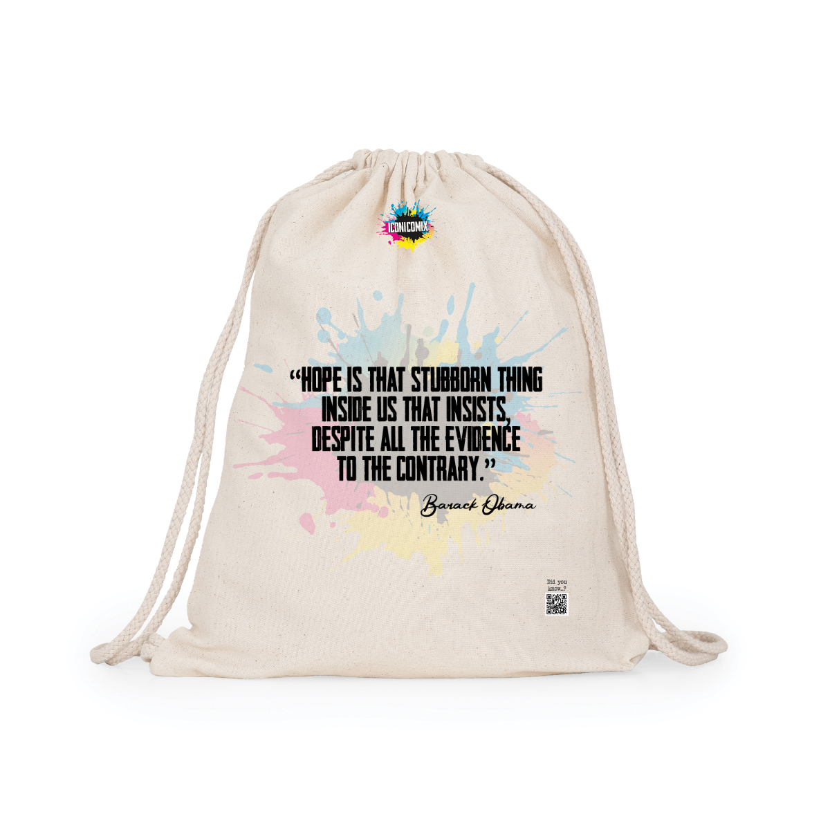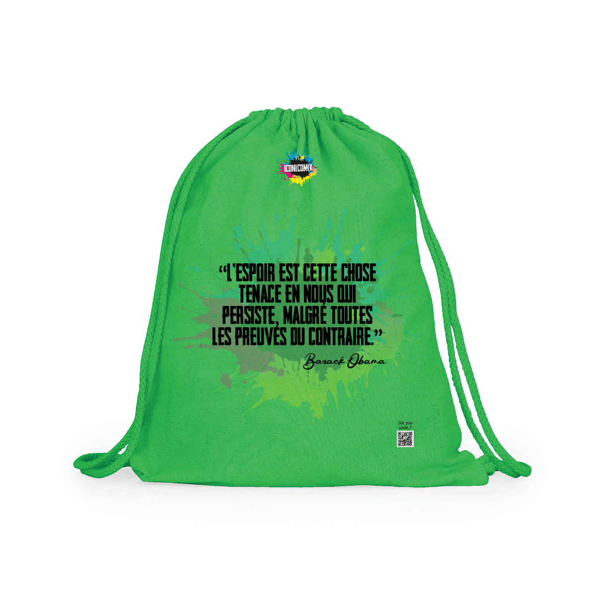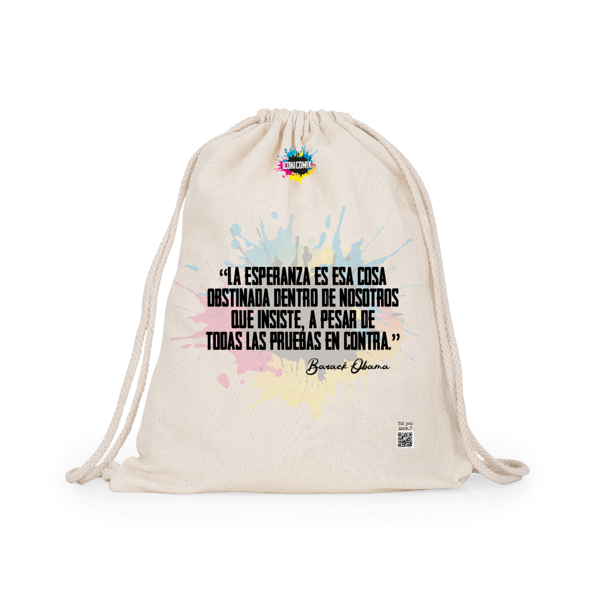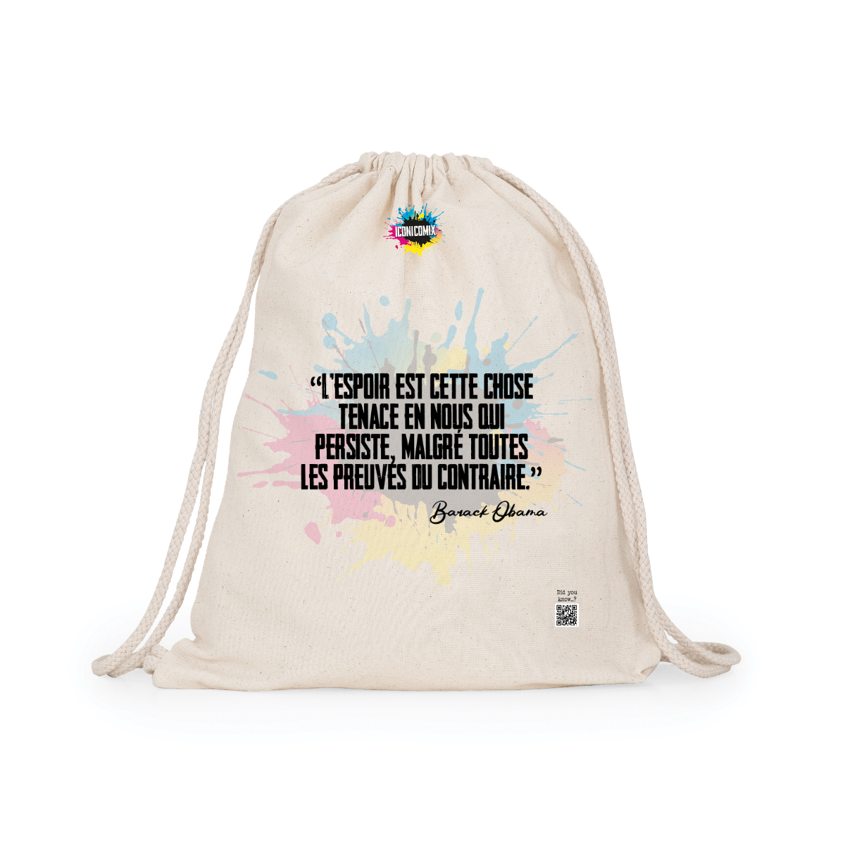 Mochila multiusos de algodón. Cordones ajustables en la espalda a juego de 8 mm de grosor. 100 % algodón, 140 g/m².  Medidas 37 cm / 41 cm