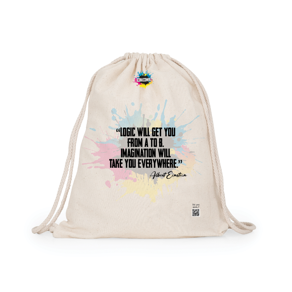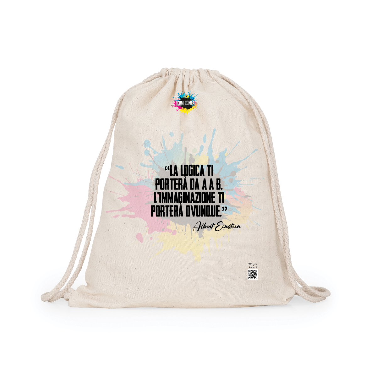 Zaino multiuso in cotone. Cordoni regolabili nella schiena in tinta di 8mm di spessore. 100% cotone,140 g/m².  Misure 37cm / 41cm