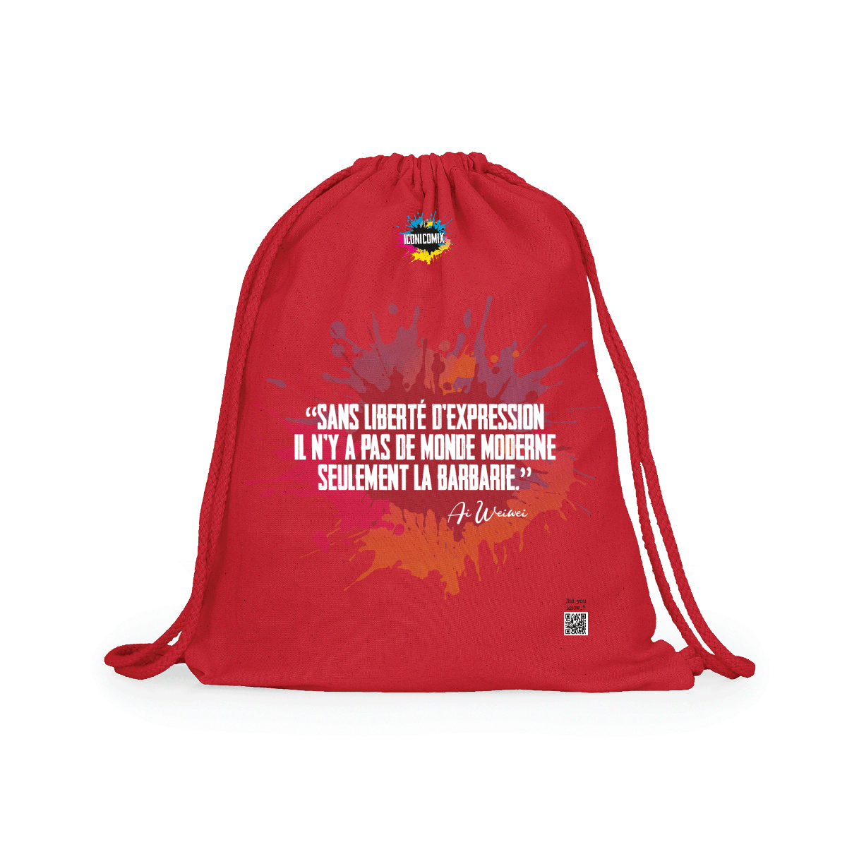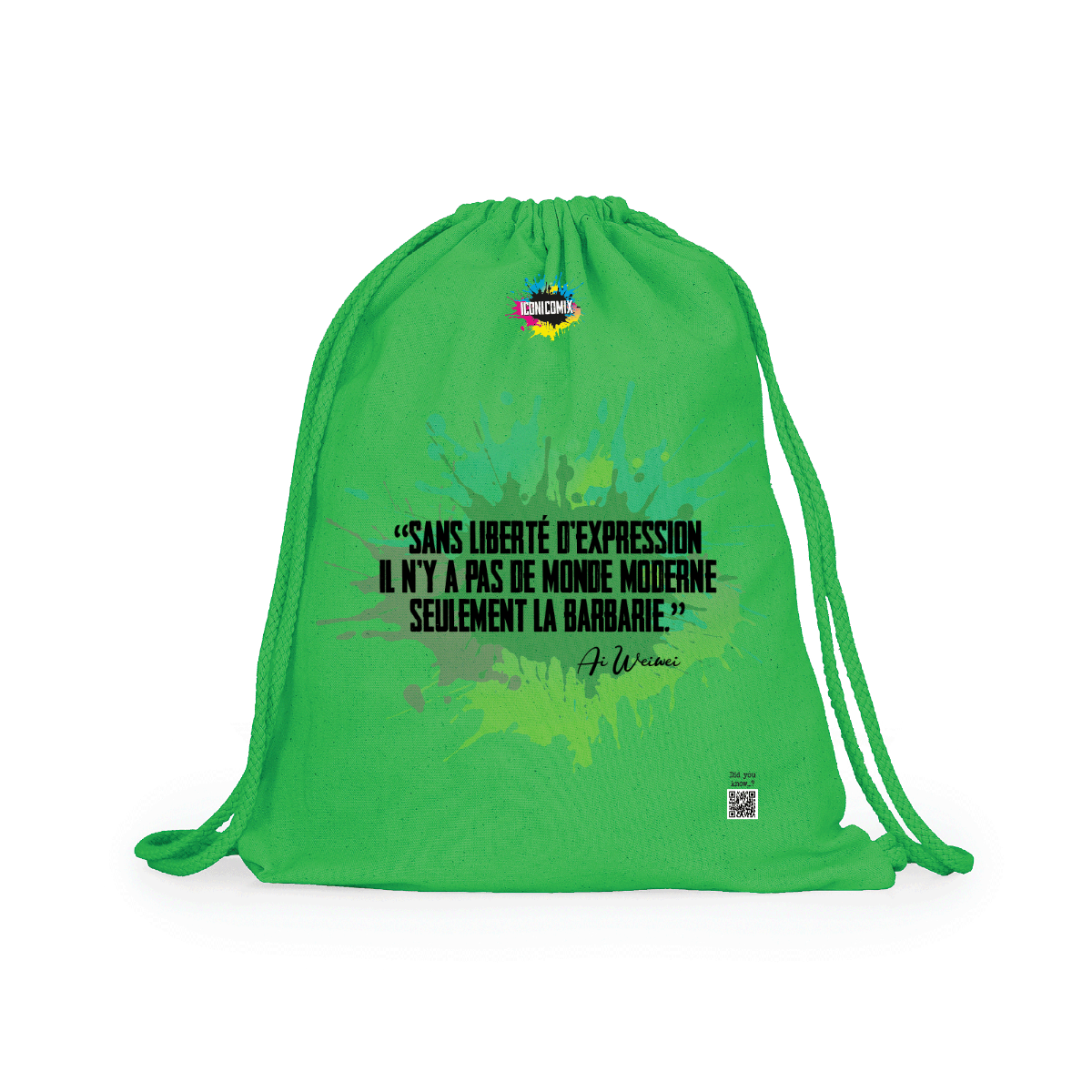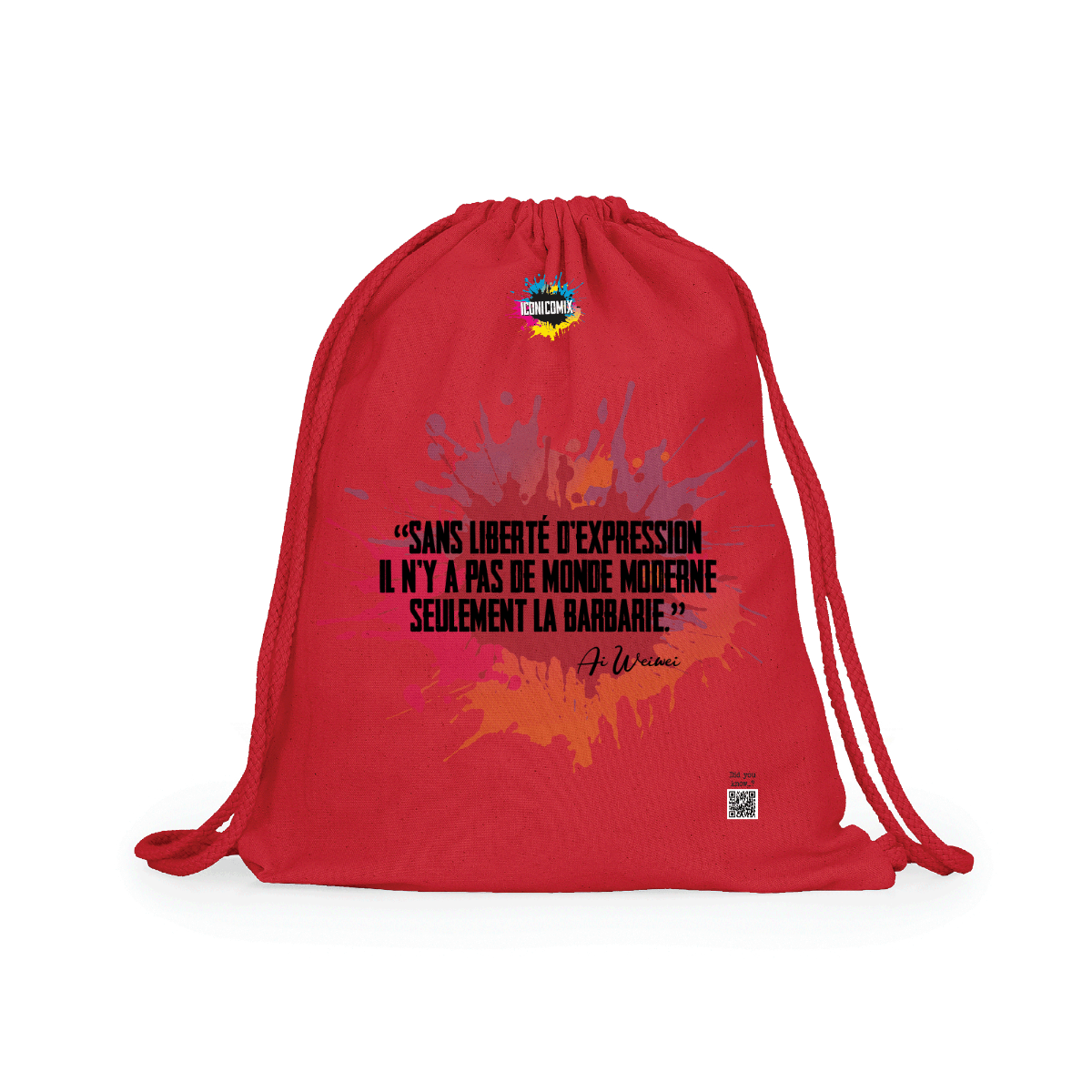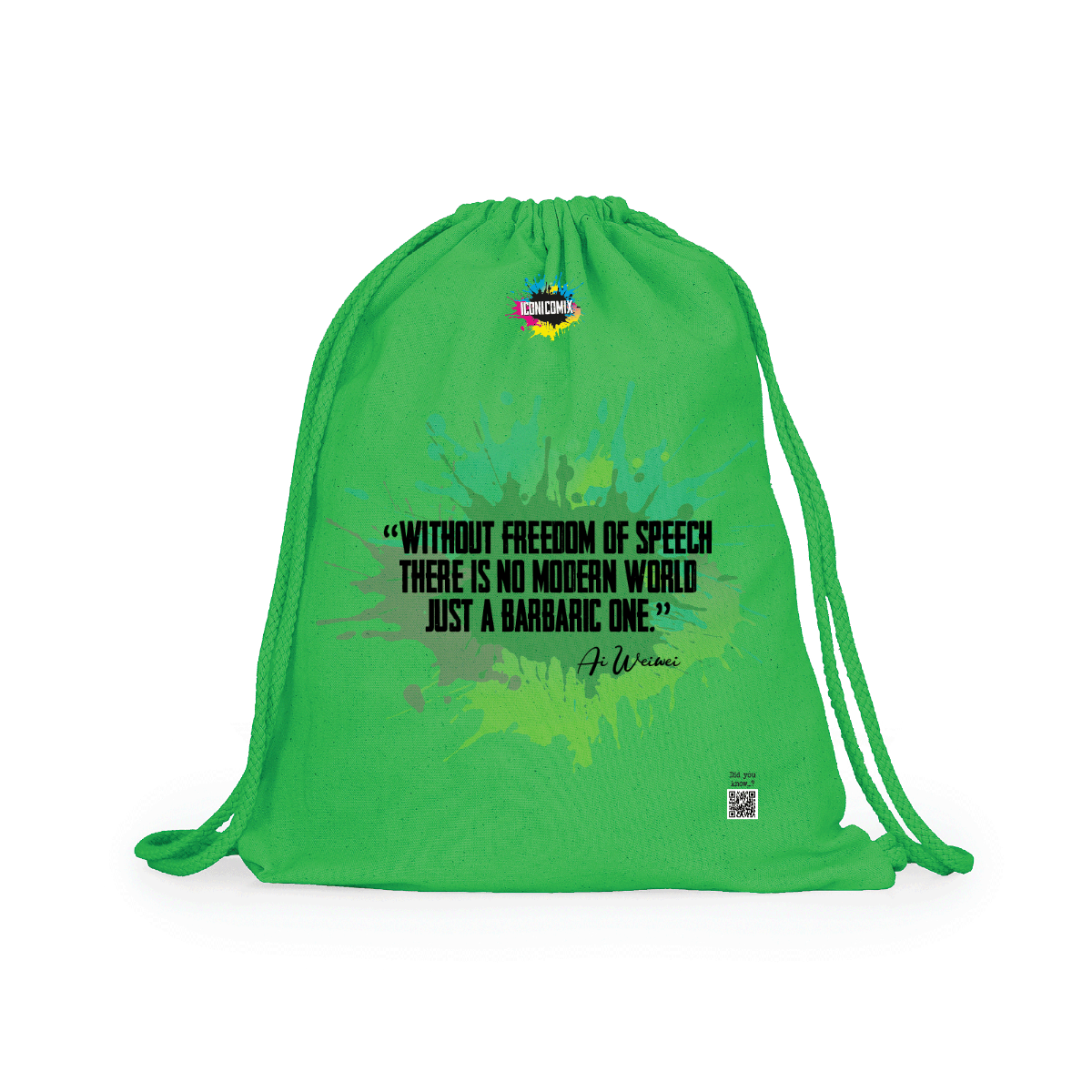 Multipurpose cotton backpack. Adjustable matching drawstrings on the back, 8 mm thick. 100% cotton, 140 g/m².  Measures 37cm / 41cm
