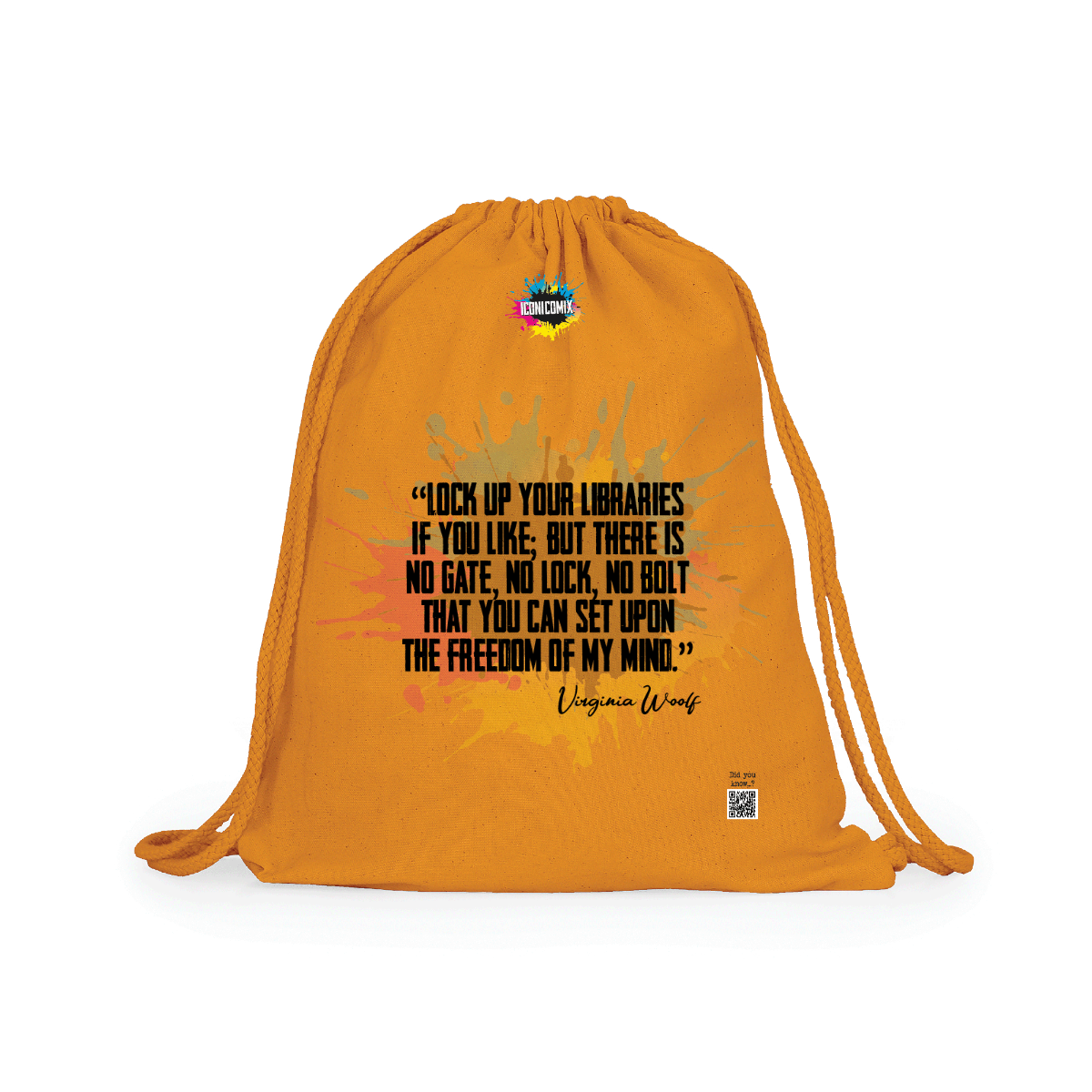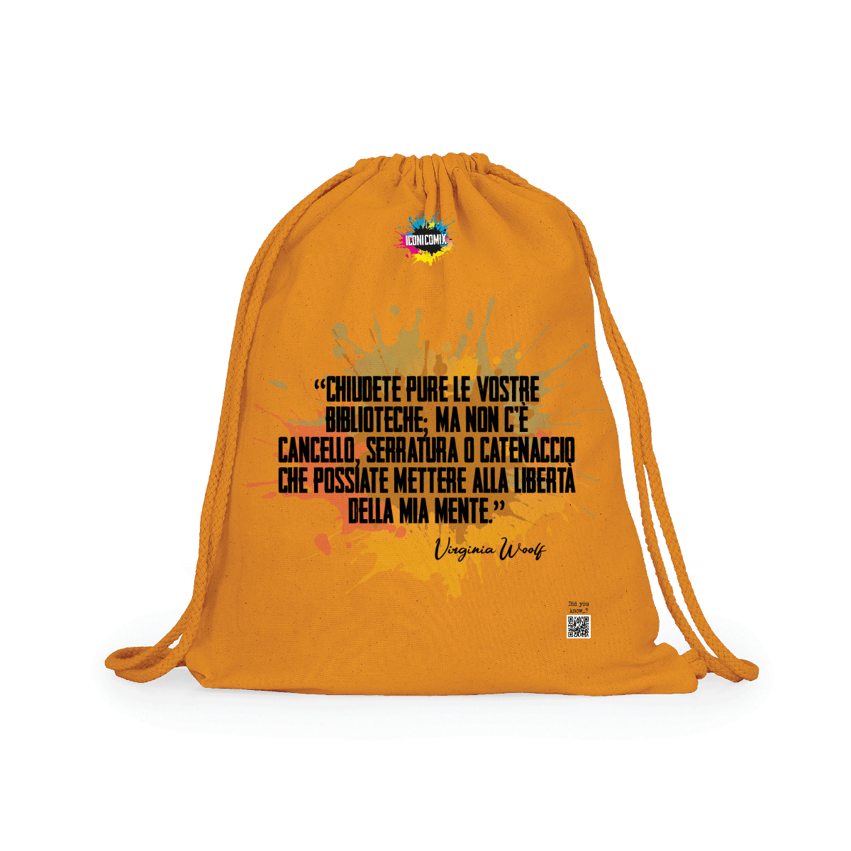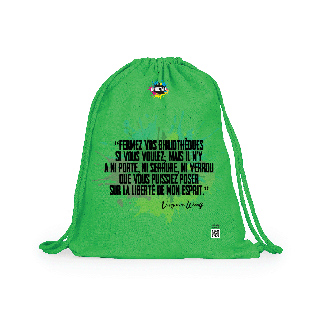 Multipurpose cotton backpack. Adjustable matching drawstrings on the back, 8 mm thick. 100% cotton, 140 g/m².  Measures 37cm / 41cm