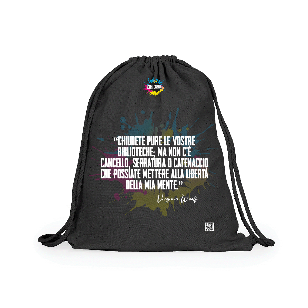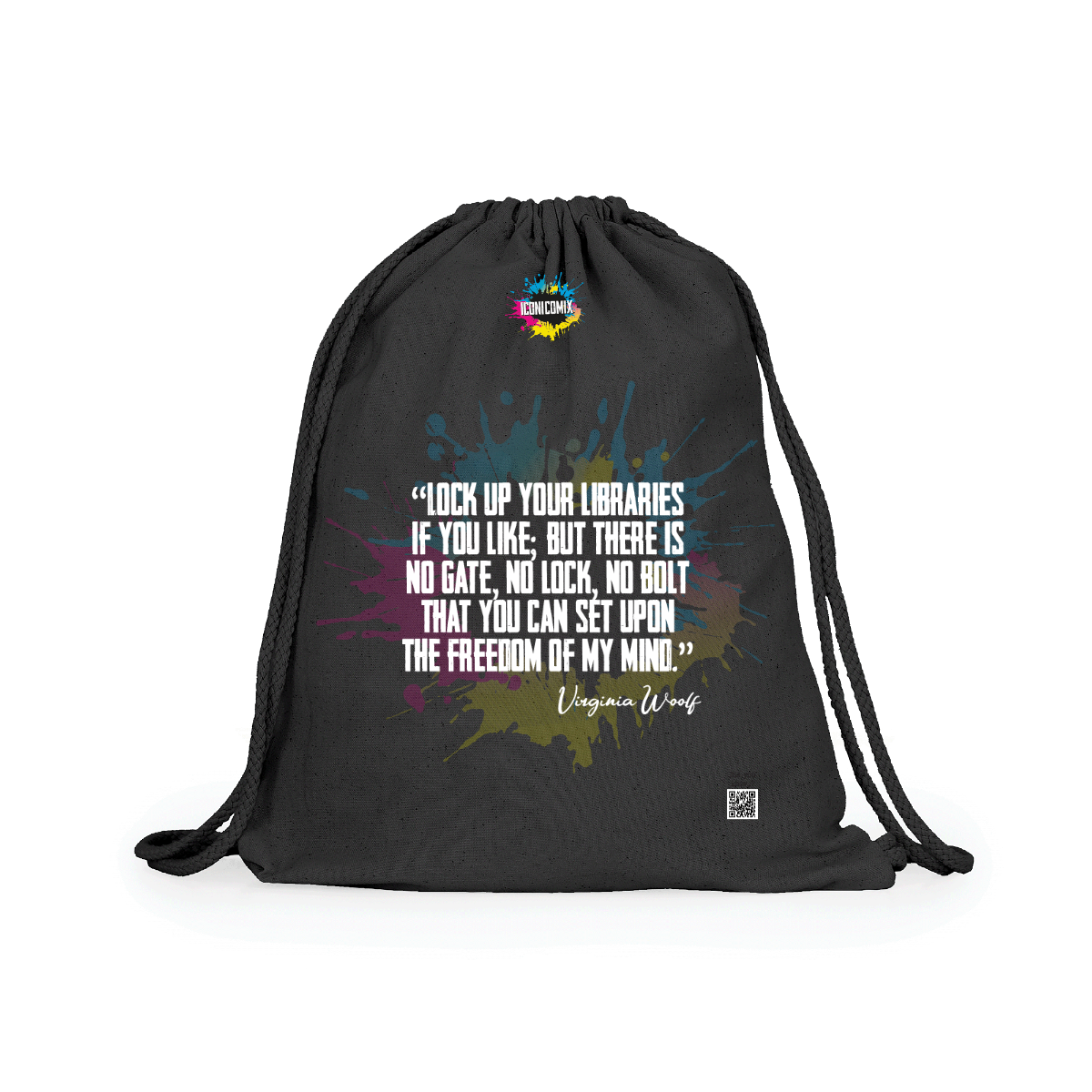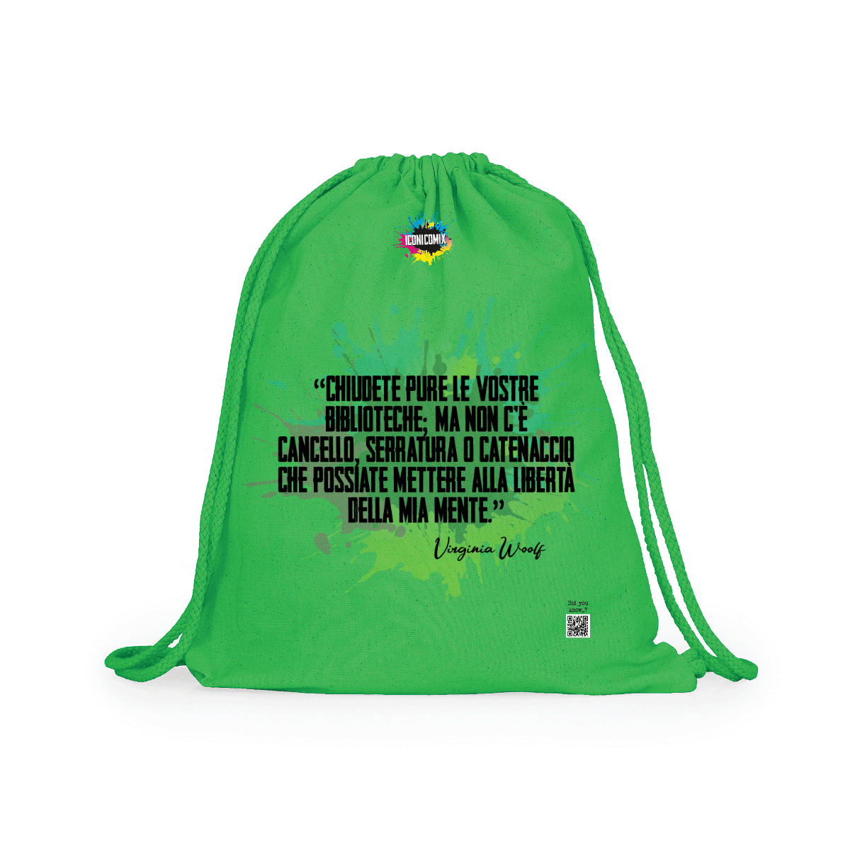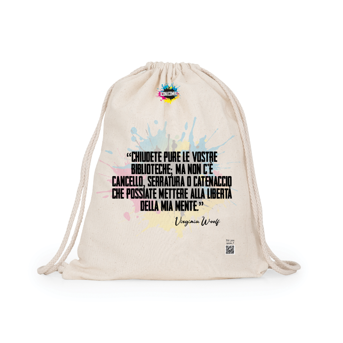 Multipurpose cotton backpack. Adjustable matching drawstrings on the back, 8 mm thick. 100% cotton, 140 g/m².  Measures 37cm / 41cm