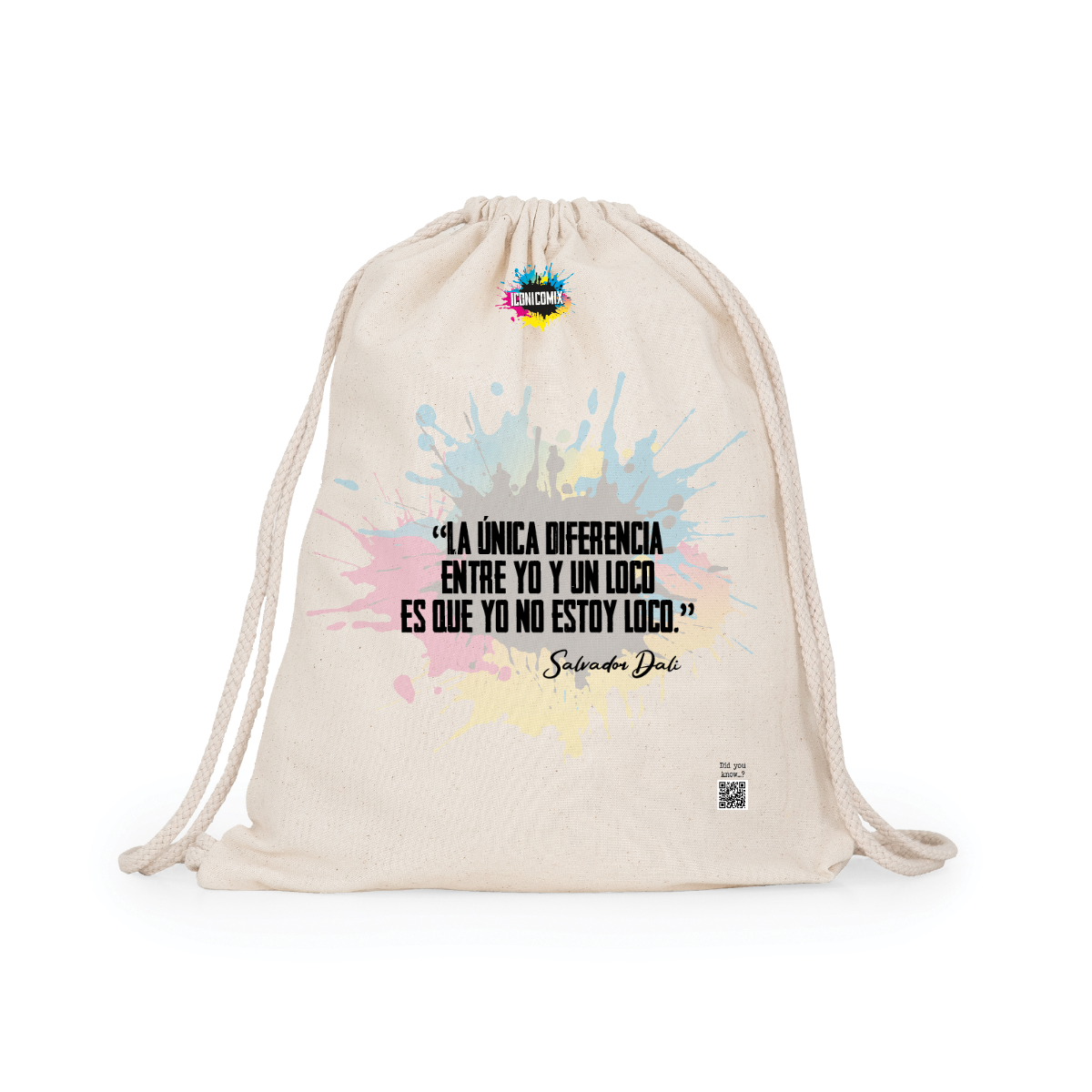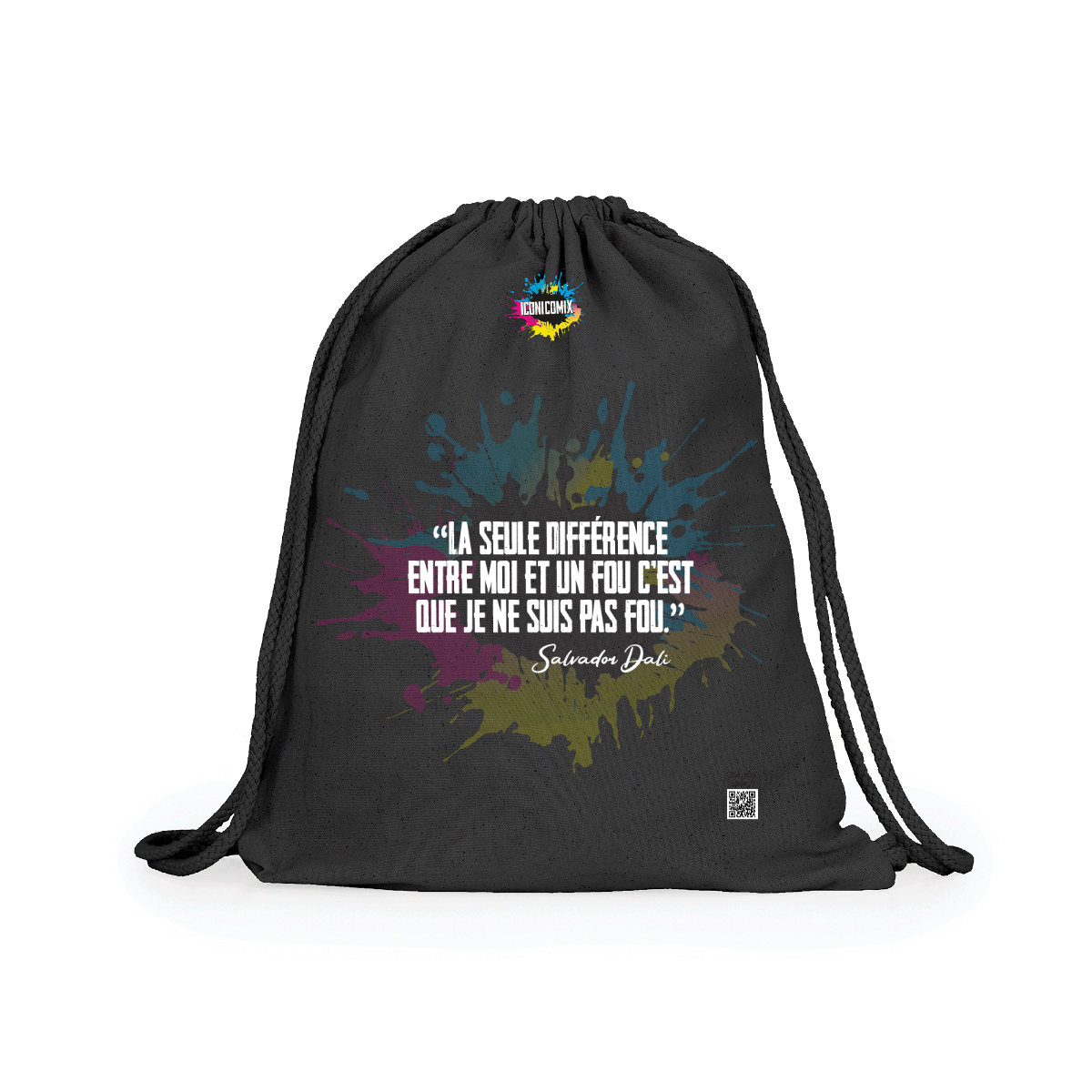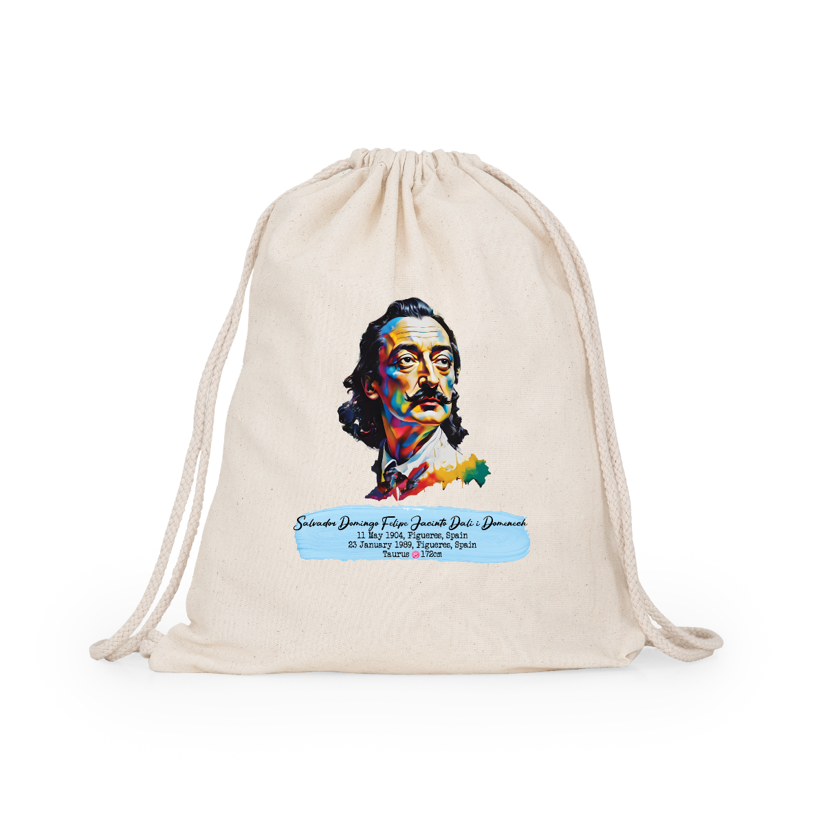 Multipurpose cotton backpack. Adjustable matching drawstrings on the back, 8 mm thick. 100% cotton, 140 g/m².  Measures 37cm / 41cm