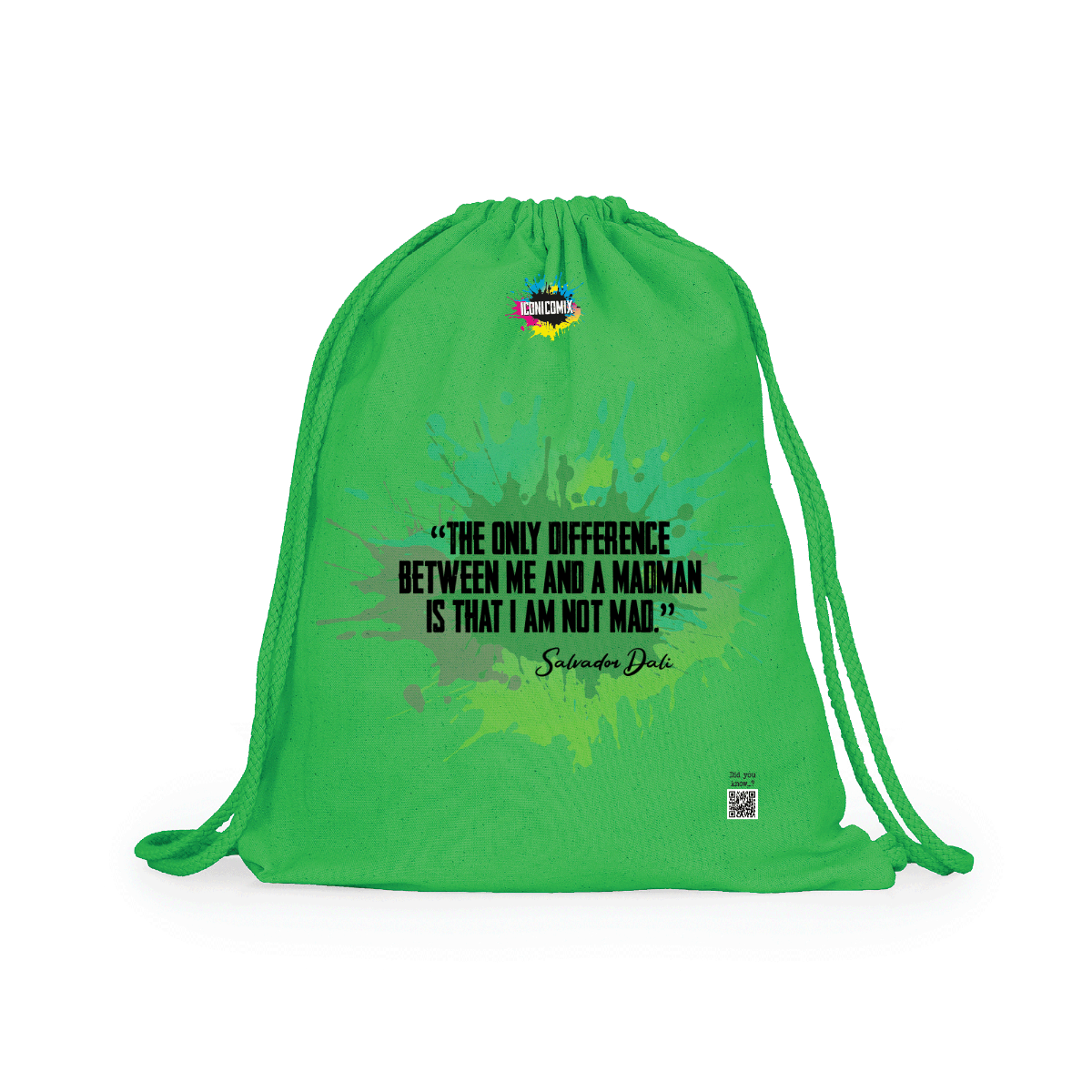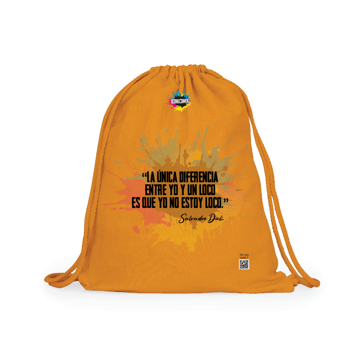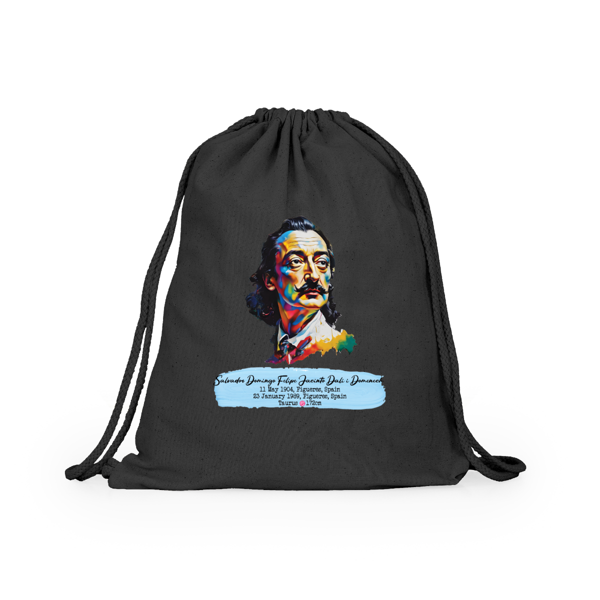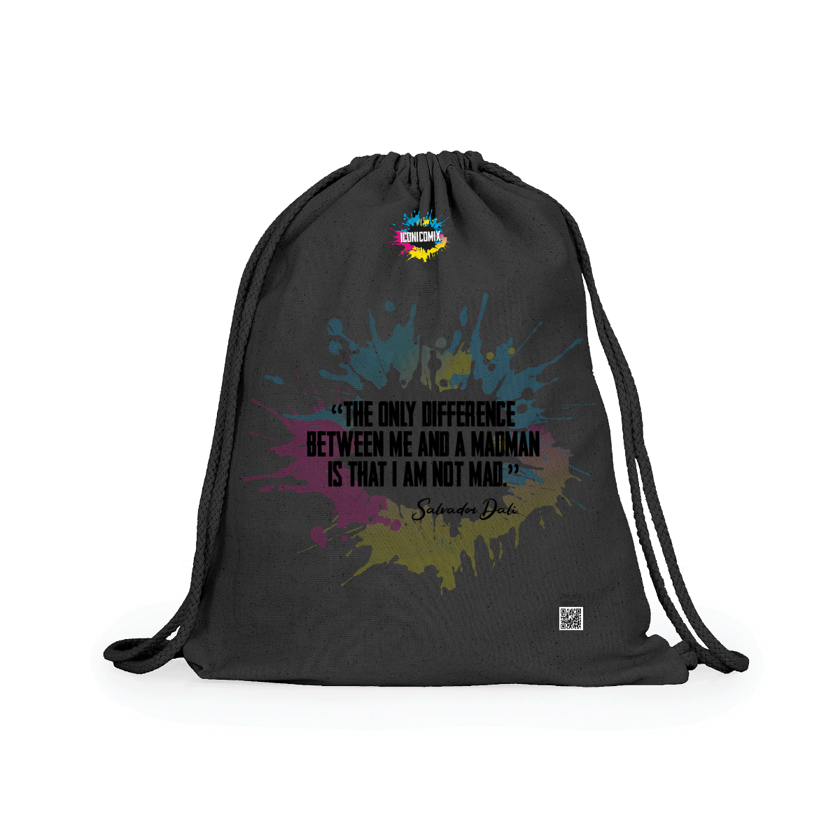 Multipurpose cotton backpack. Adjustable matching drawstrings on the back, 8 mm thick. 100% cotton, 140 g/m².  Measures 37cm / 41cm