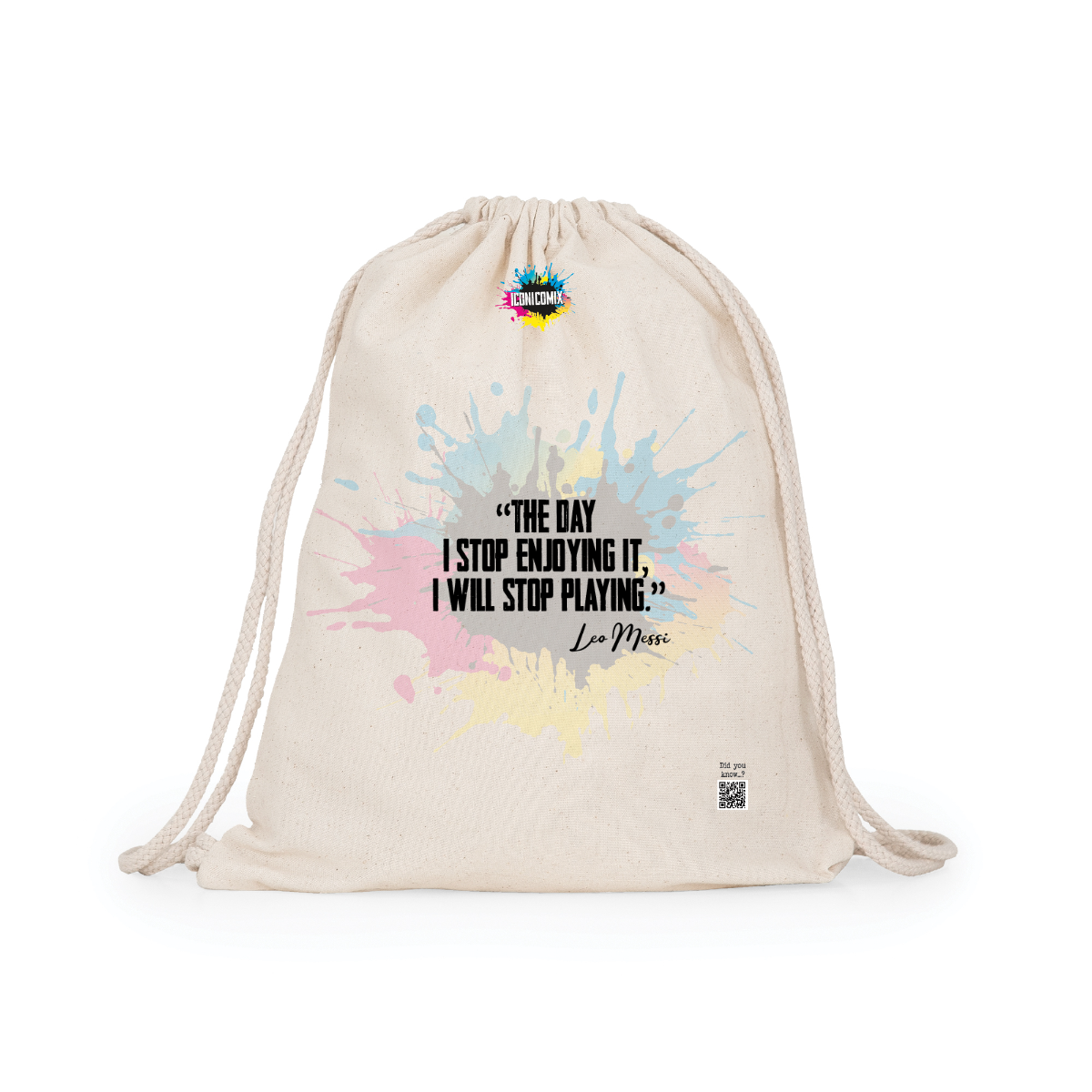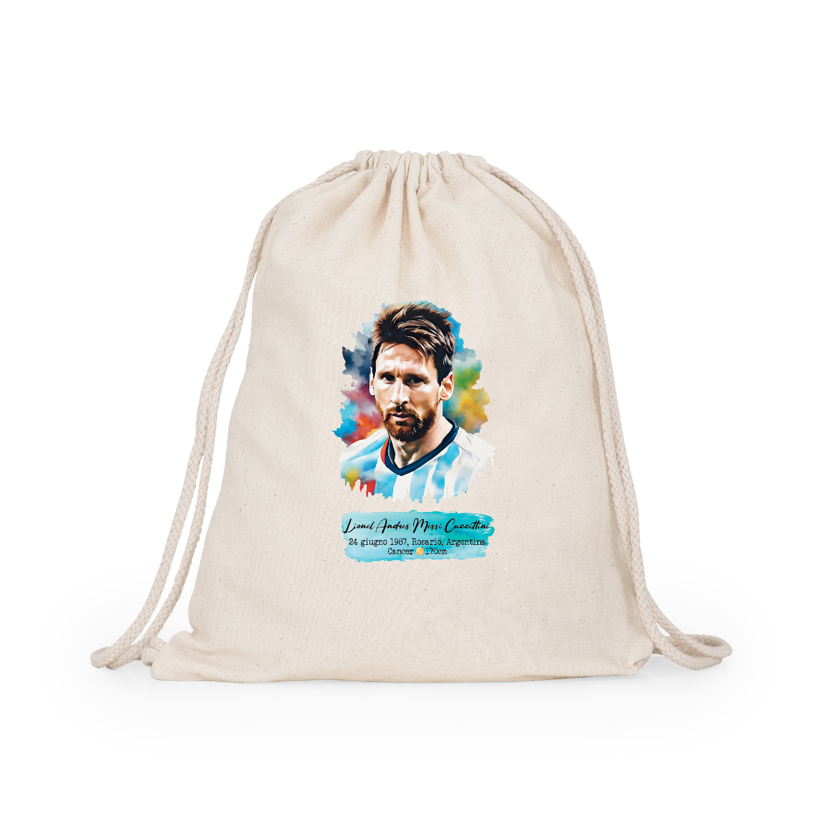 Zaino multiuso in cotone. Cordoni regolabili nella schiena in tinta di 8mm di spessore. 100% cotone,140 g/m².  Misure 37cm / 41cm