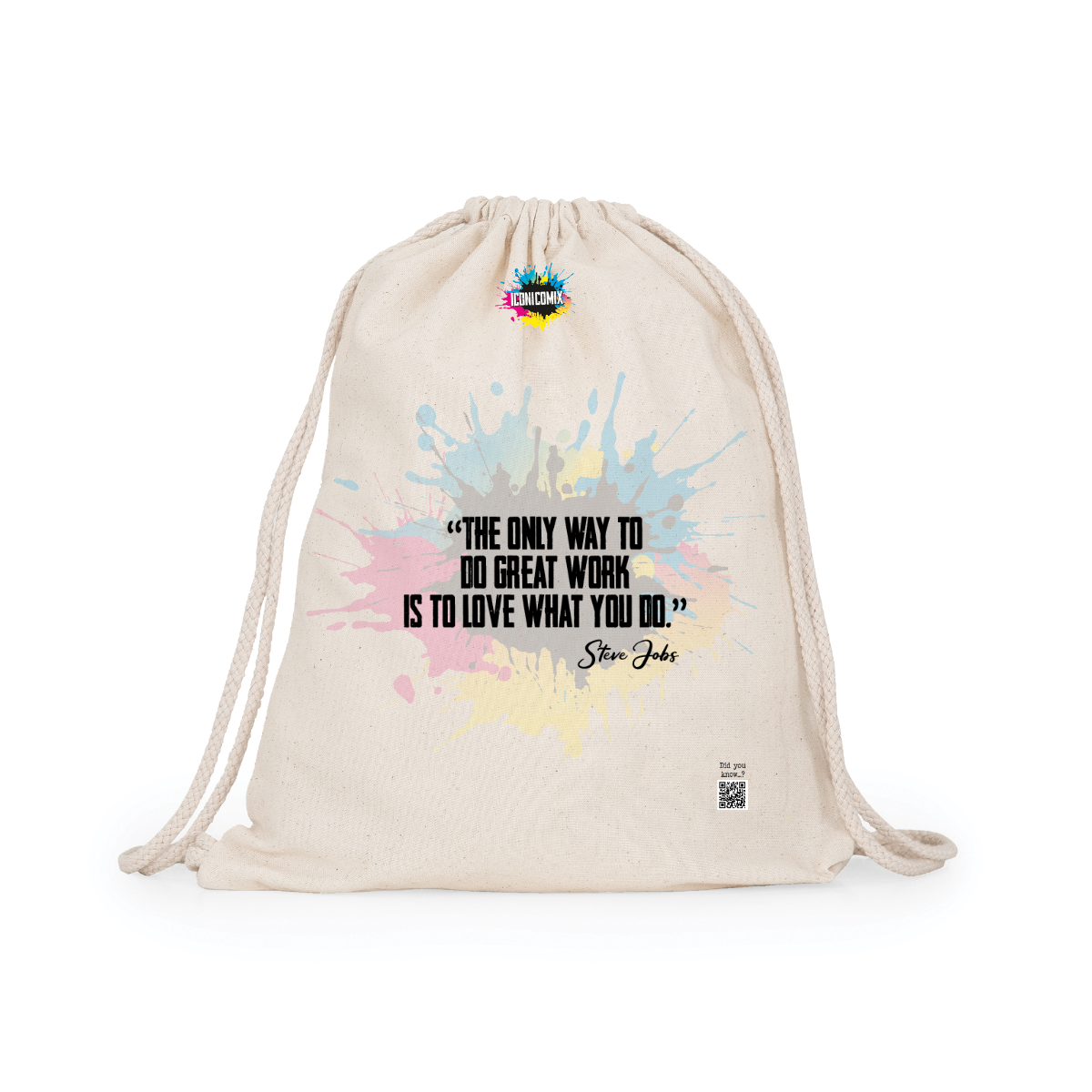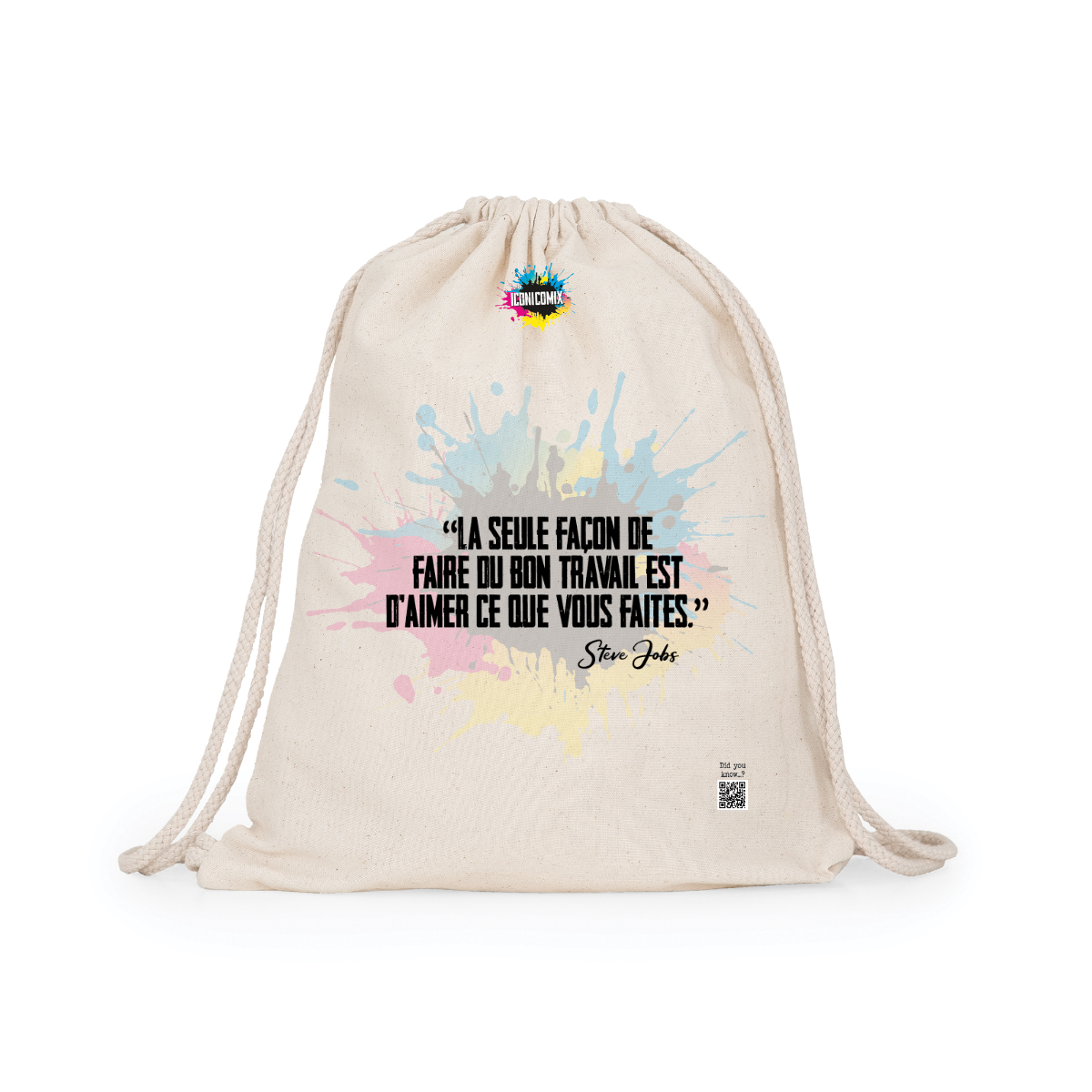 Zaino multiuso in cotone. Cordoni regolabili nella schiena in tinta di 8mm di spessore. 100% cotone,140 g/m².  Misure 37cm / 41cm