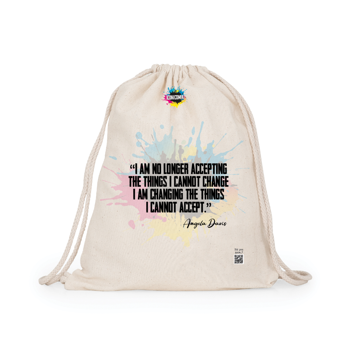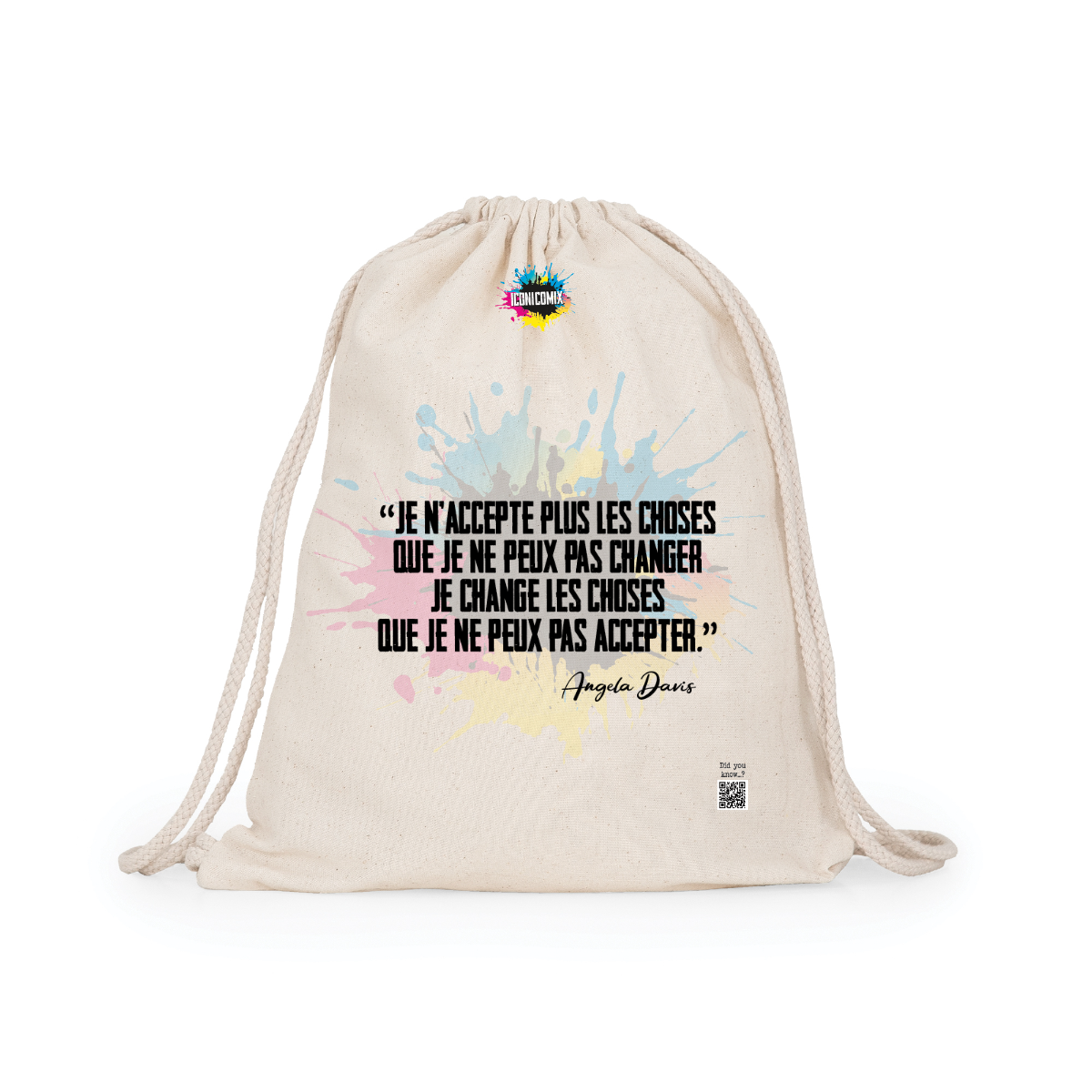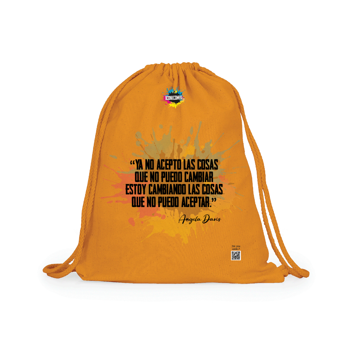 Zaino multiuso in cotone. Cordoni regolabili nella schiena in tinta di 8mm di spessore. 100% cotone,140 g/m².  Misure 37cm / 41cm