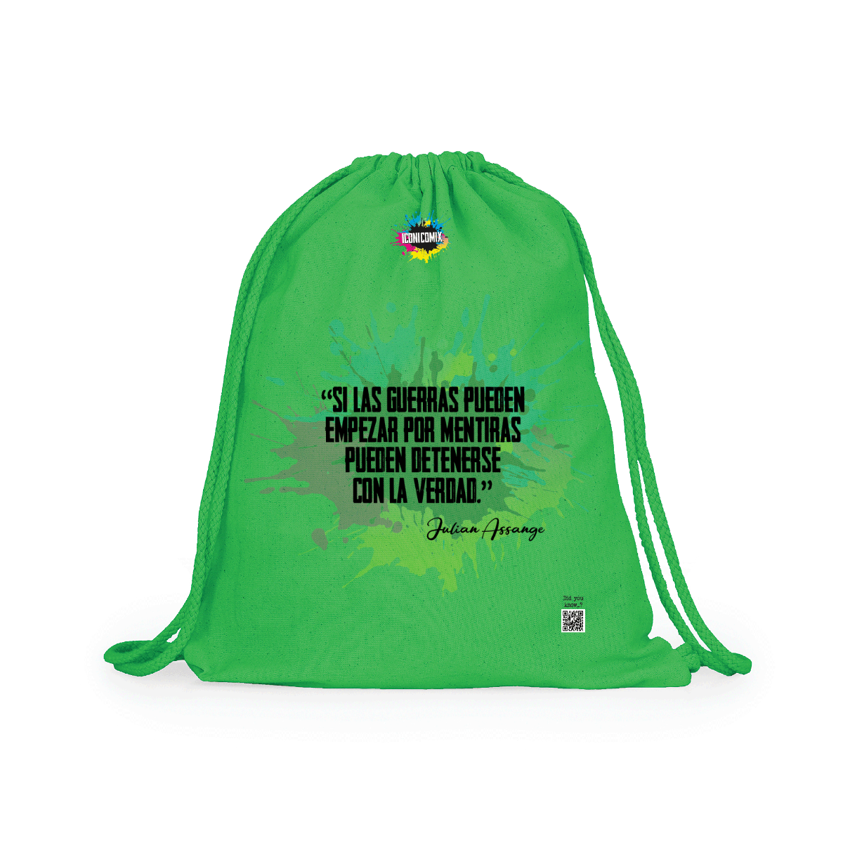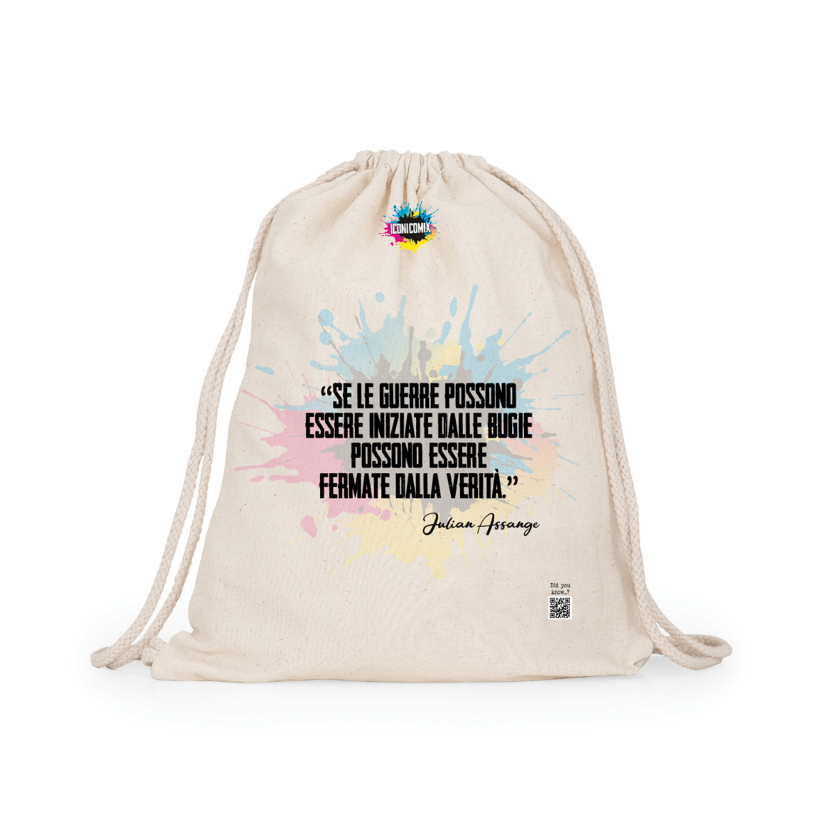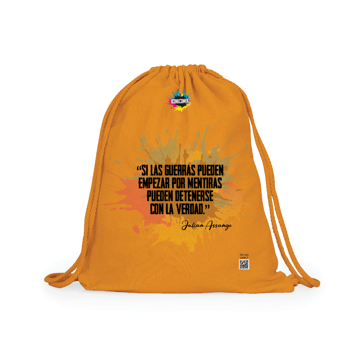 Zaino multiuso in cotone. Cordoni regolabili nella schiena in tinta di 8mm di spessore. 100% cotone,140 g/m².  Misure 37cm / 41cm