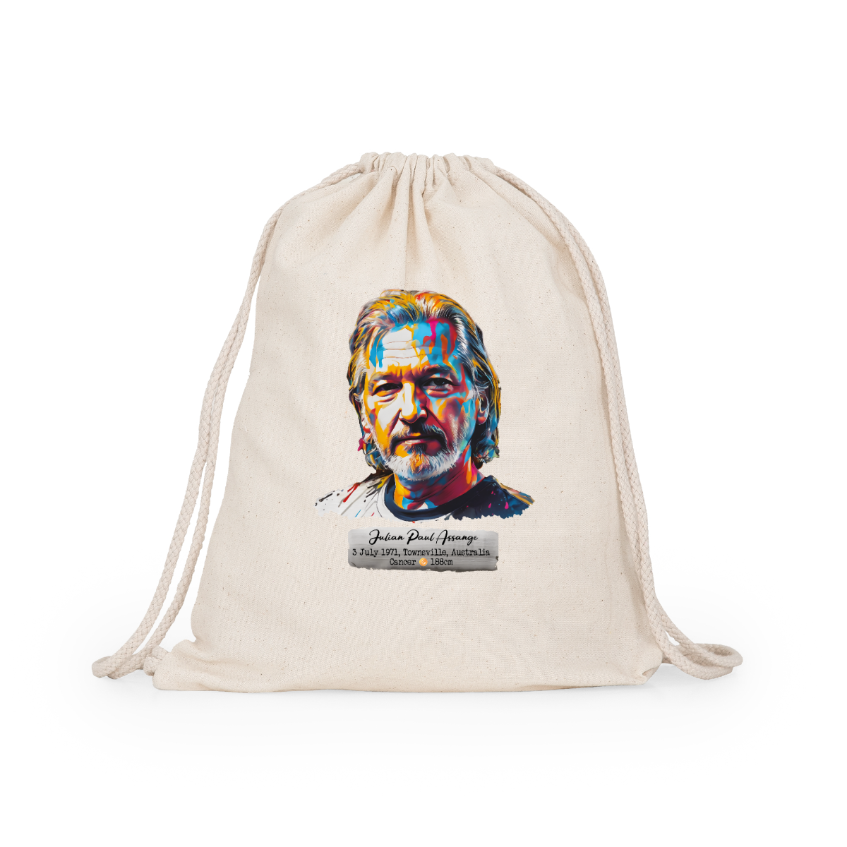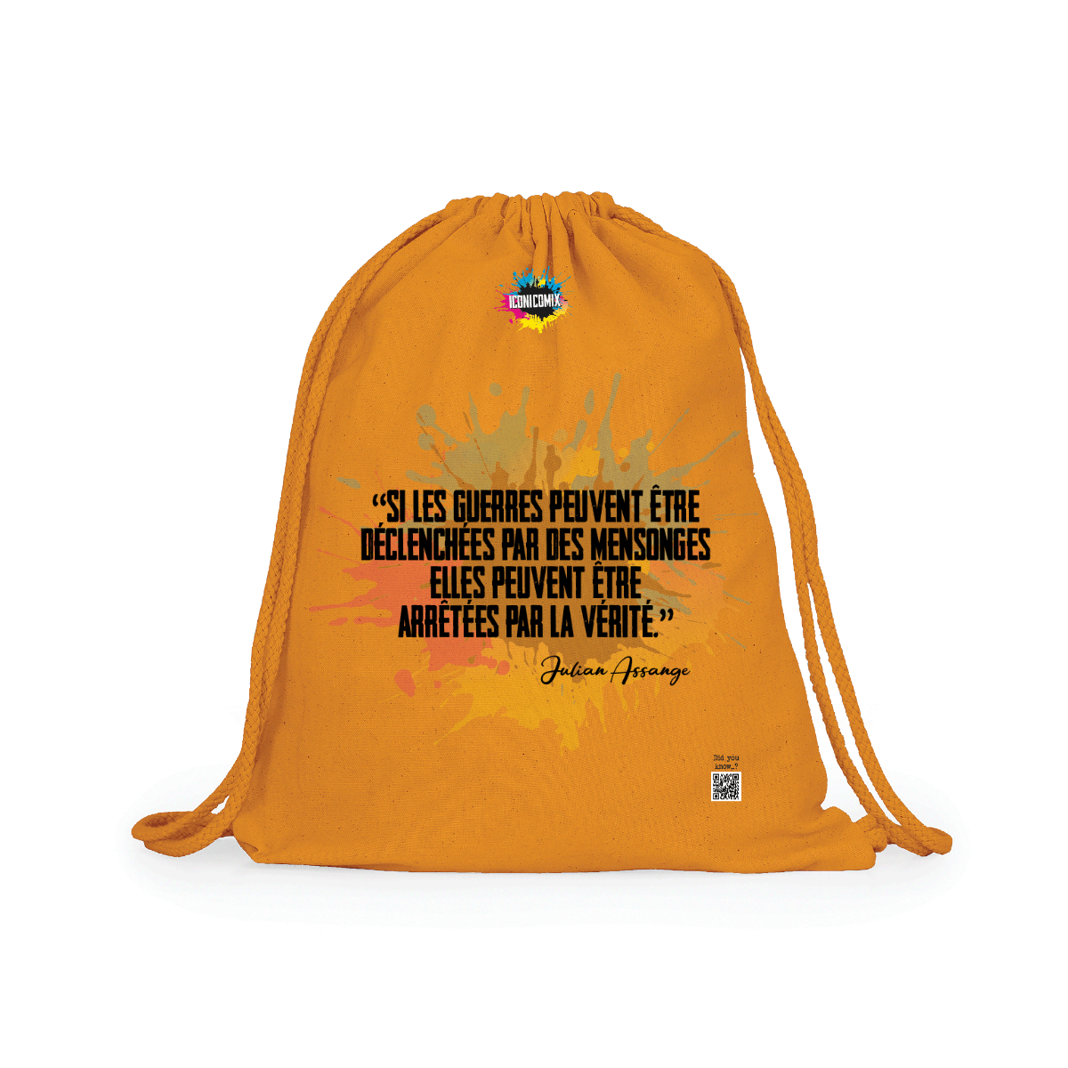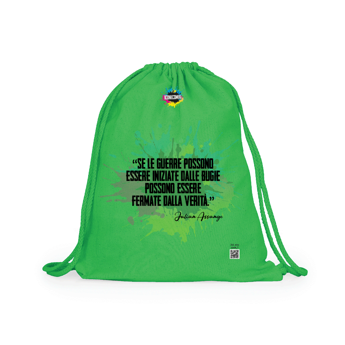 Zaino multiuso in cotone. Cordoni regolabili nella schiena in tinta di 8mm di spessore. 100% cotone,140 g/m².  Misure 37cm / 41cm