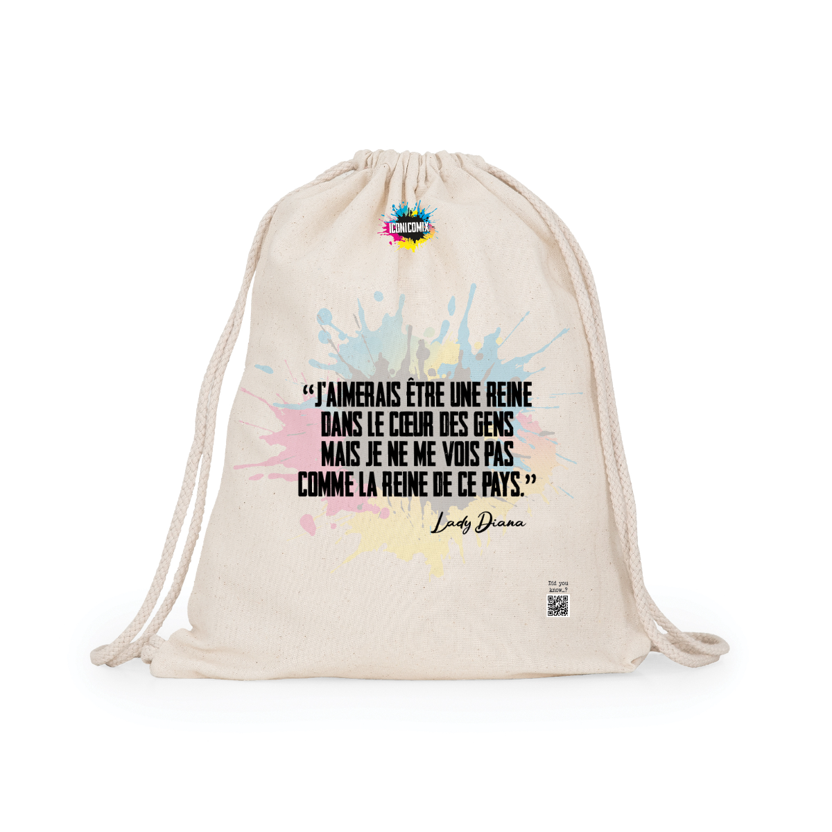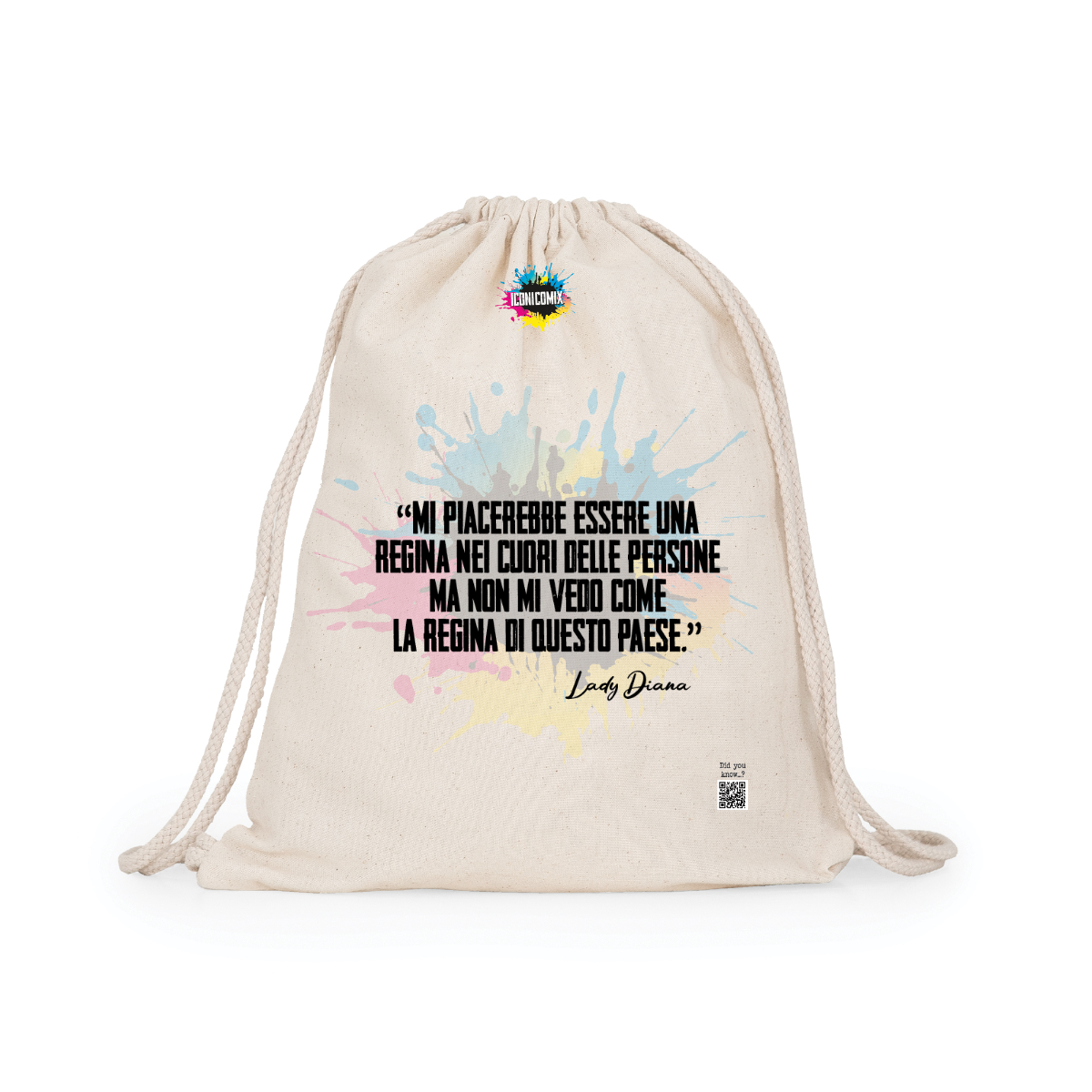 Zaino multiuso in cotone. Cordoni regolabili nella schiena in tinta di 8mm di spessore. 100% cotone,140 g/m².  Misure 37cm / 41cm