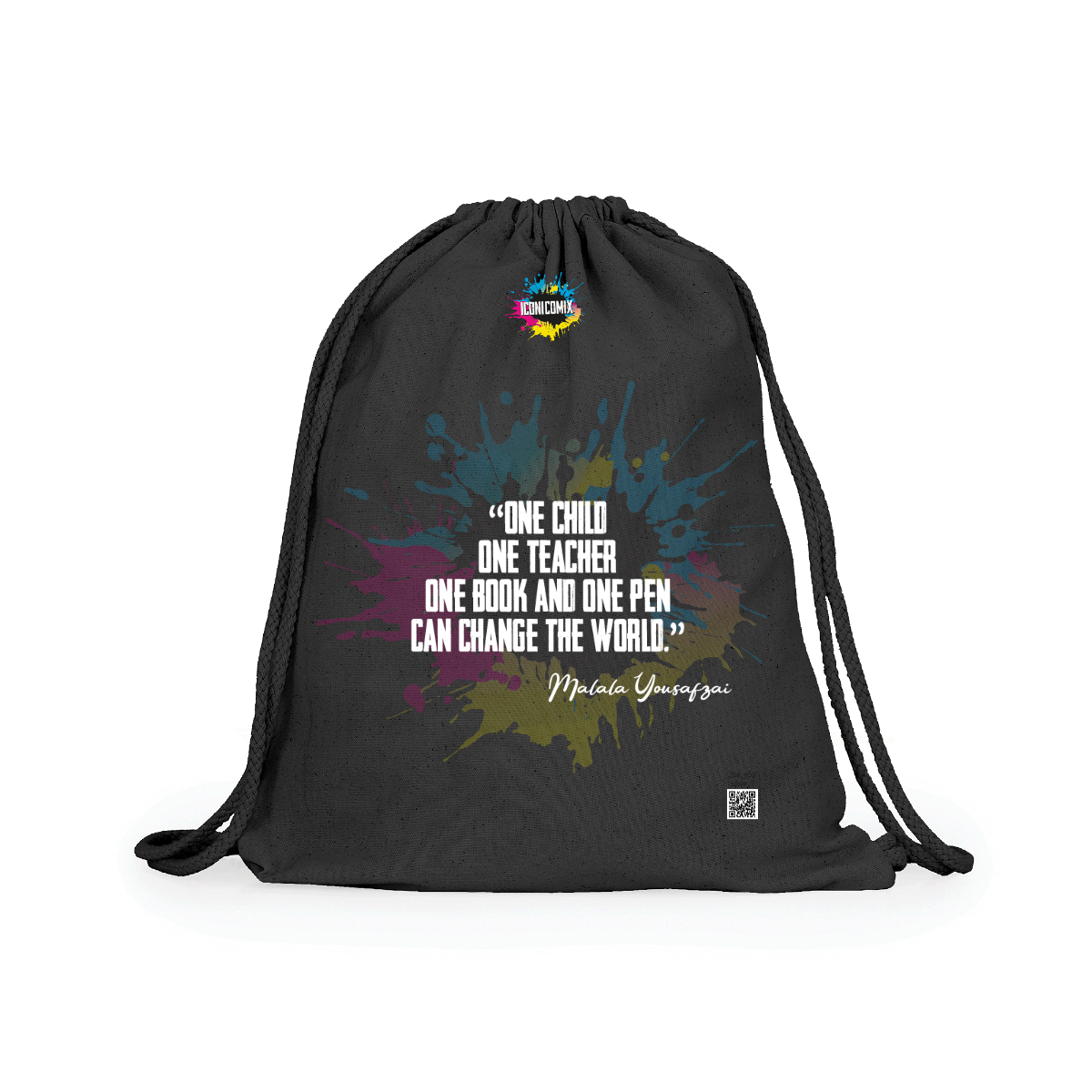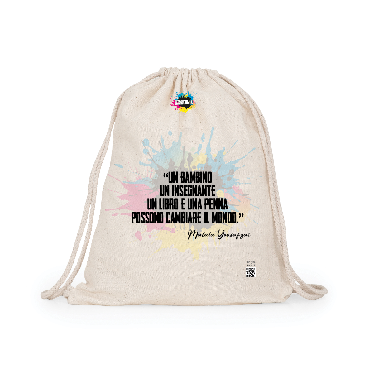Zaino multiuso in cotone. Cordoni regolabili nella schiena in tinta di 8mm di spessore. 100% cotone,140 g/m².  Misure 37cm / 41cm
