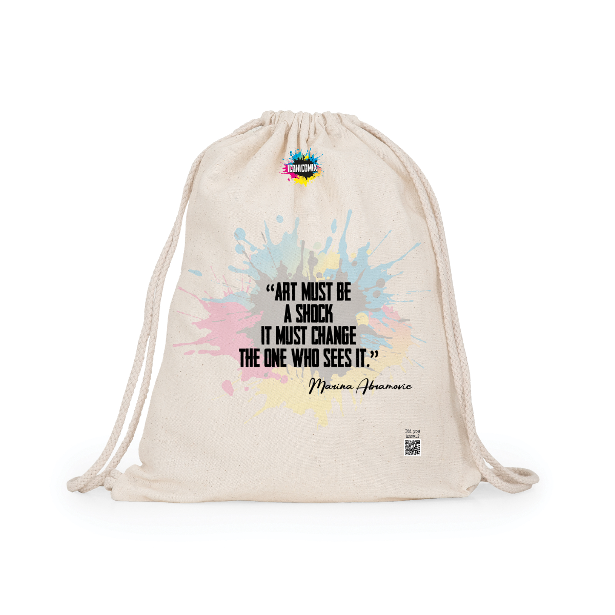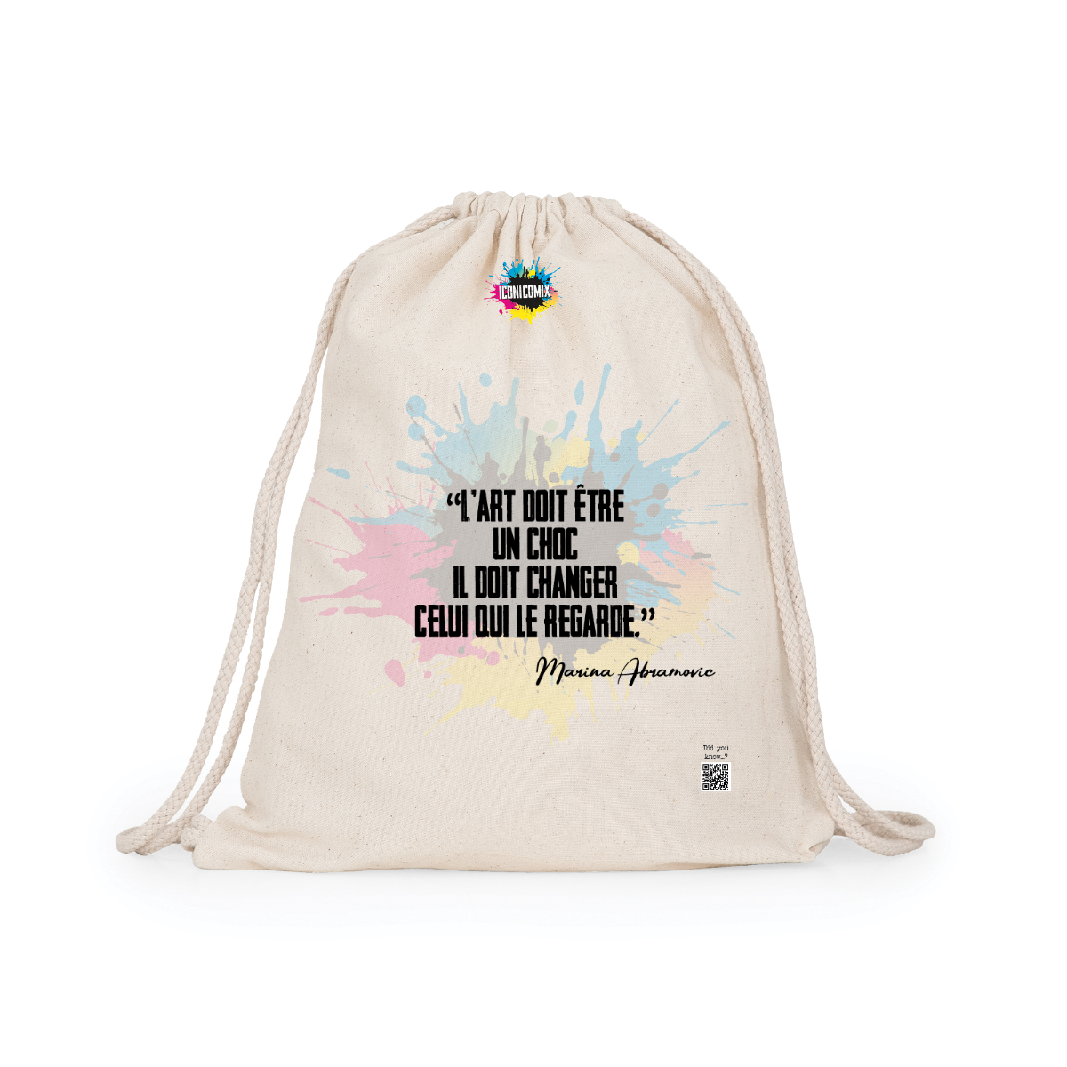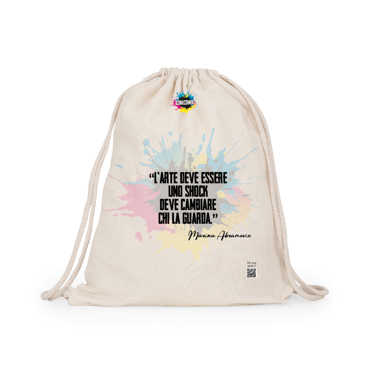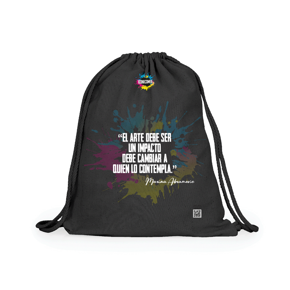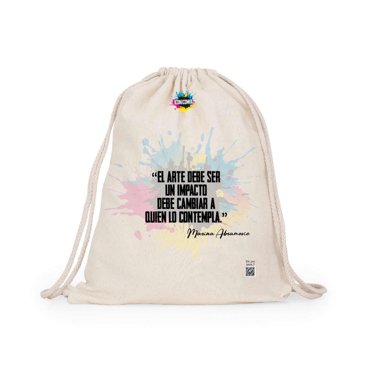 Zaino multiuso in cotone. Cordoni regolabili nella schiena in tinta di 8mm di spessore. 100% cotone,140 g/m².  Misure 37cm / 41cm