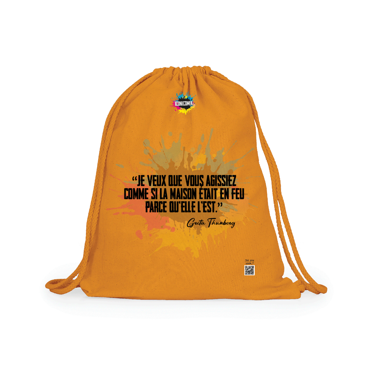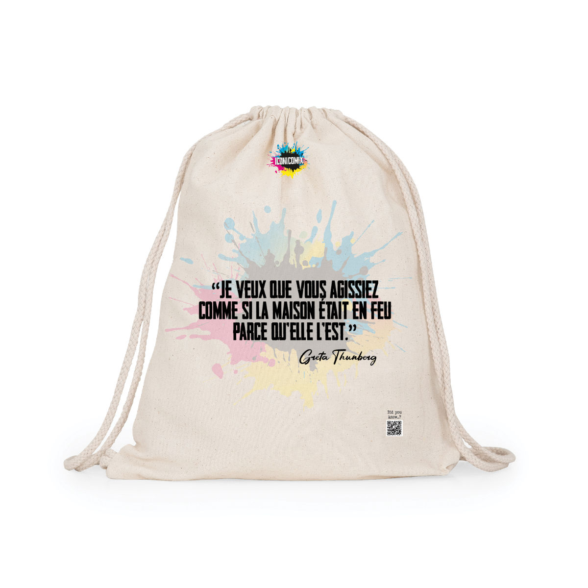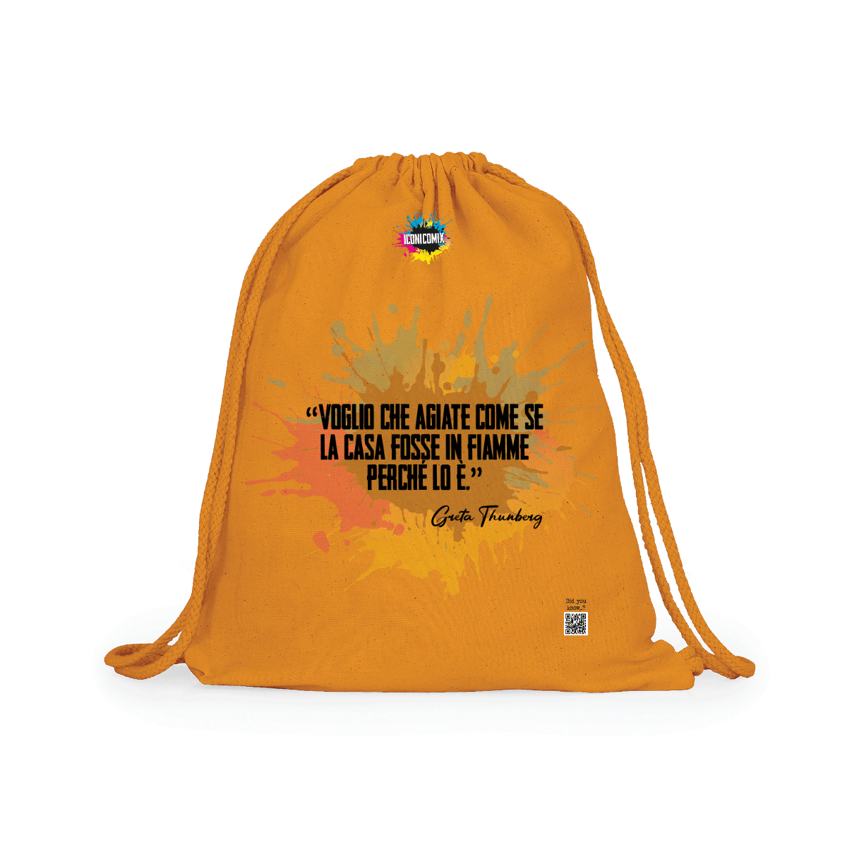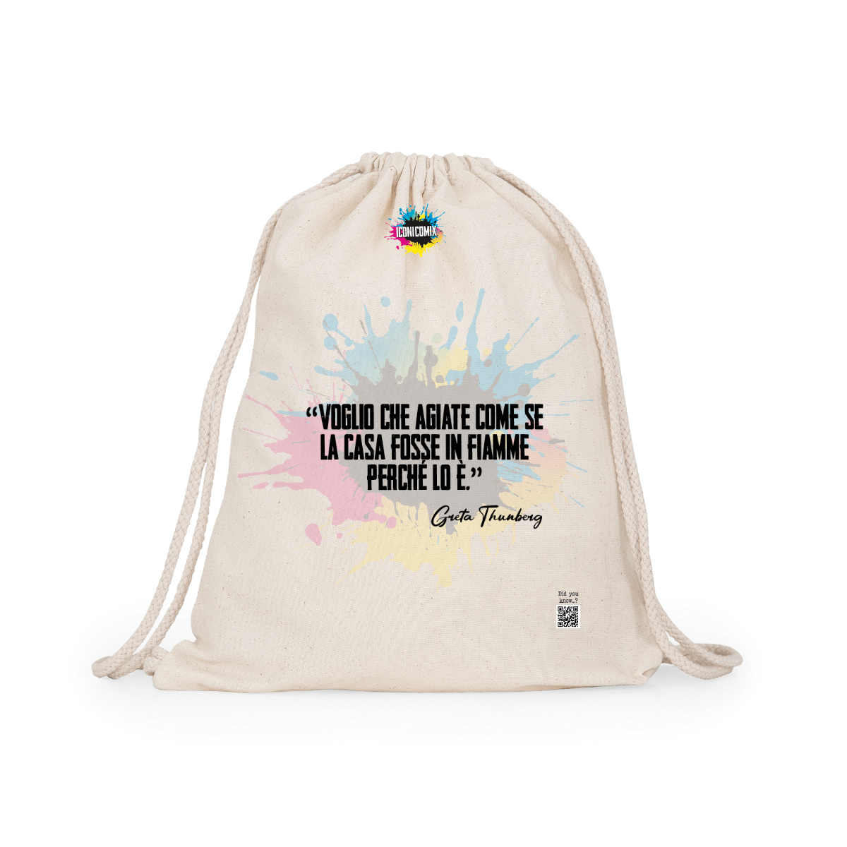 Zaino multiuso in cotone. Cordoni regolabili nella schiena in tinta di 8mm di spessore. 100% cotone,140 g/m².  Misure 37cm / 41cm