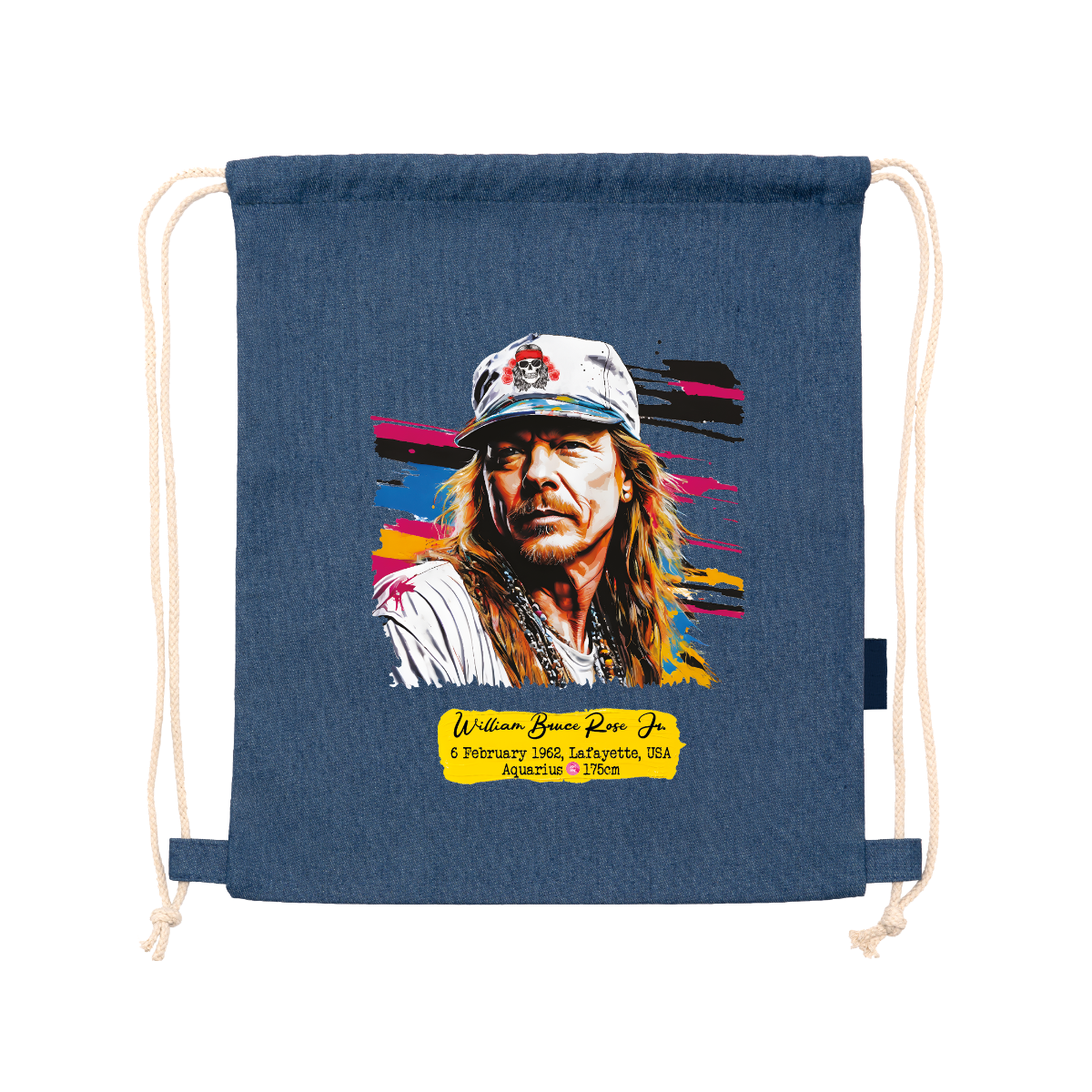 Mochila multiusos fabricada con denim reciclado. Cordones ajustables a juego en la parte trasera, 8 mm de grosor. 100 % denim, 320 g/m². Dimensiones: 36 cm / 42 cm.