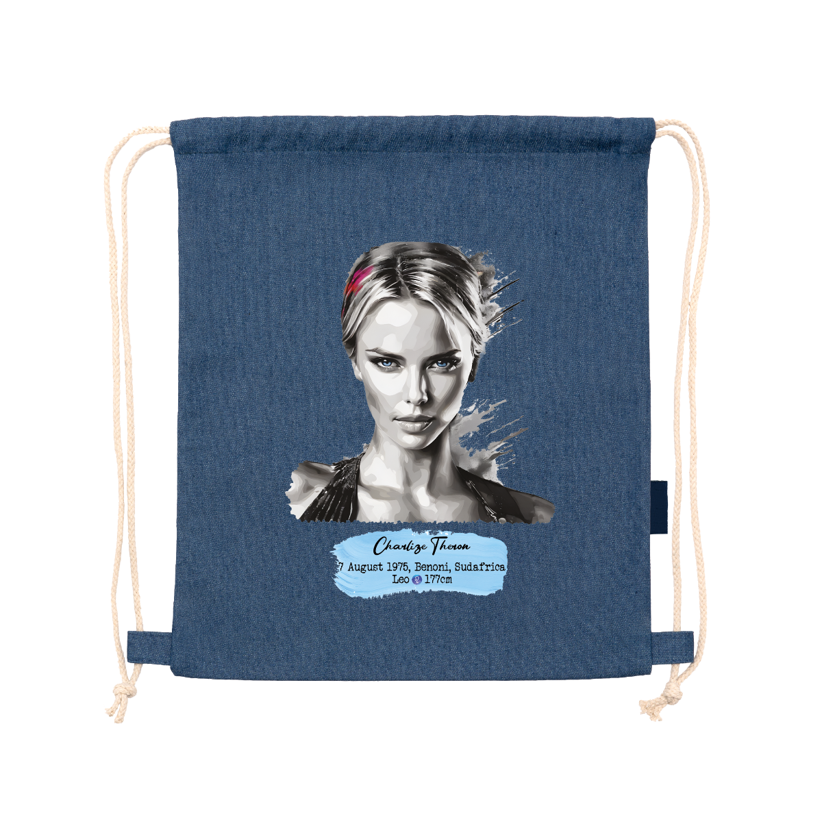 Sac à dos polyvalent en denim recyclé. Cordons de serrage réglables assortis à l'arrière, épaisseur 8 mm. 100 % denim, 320 g/m². Dimensions : 36 cm / 42 cm.