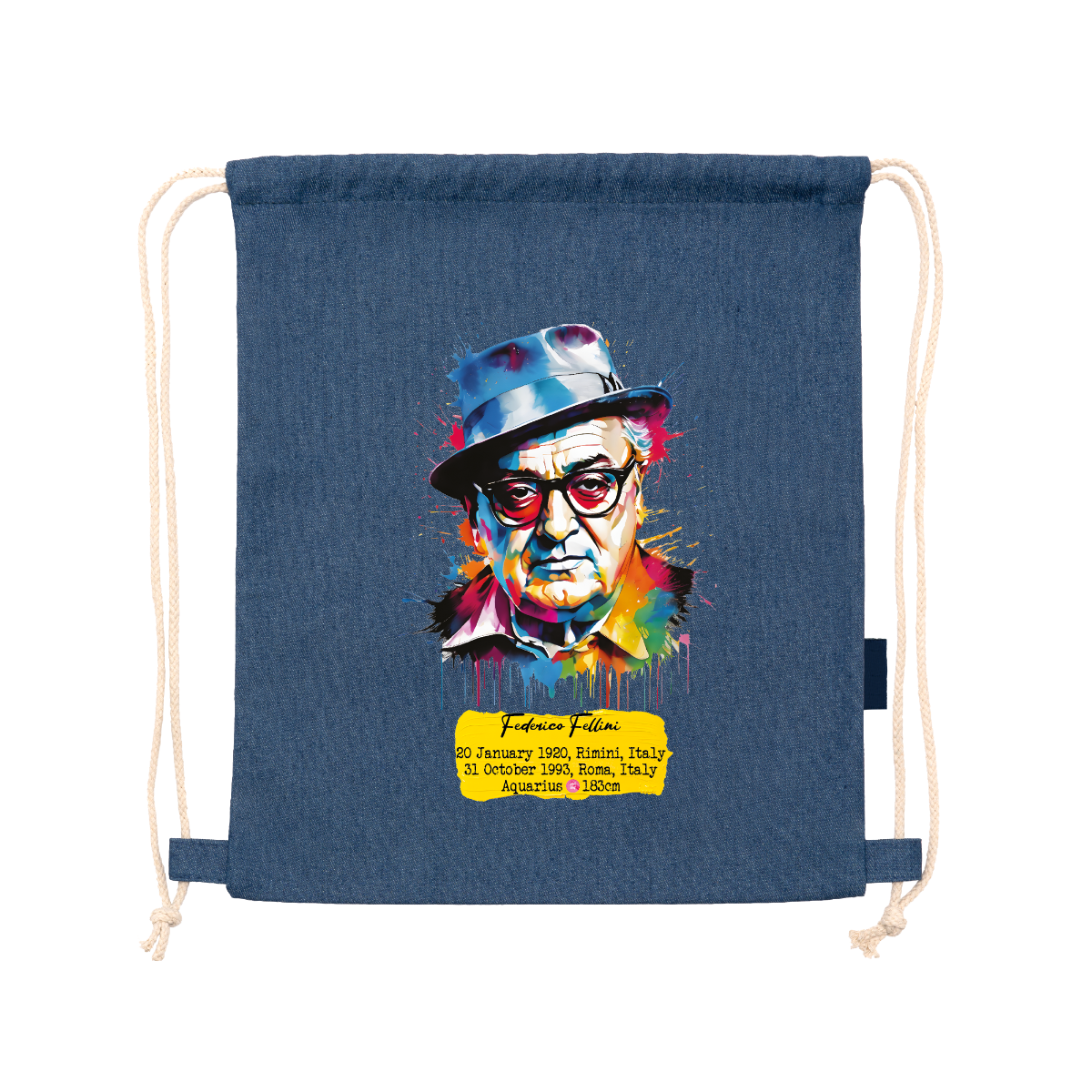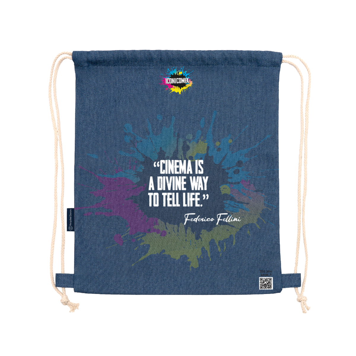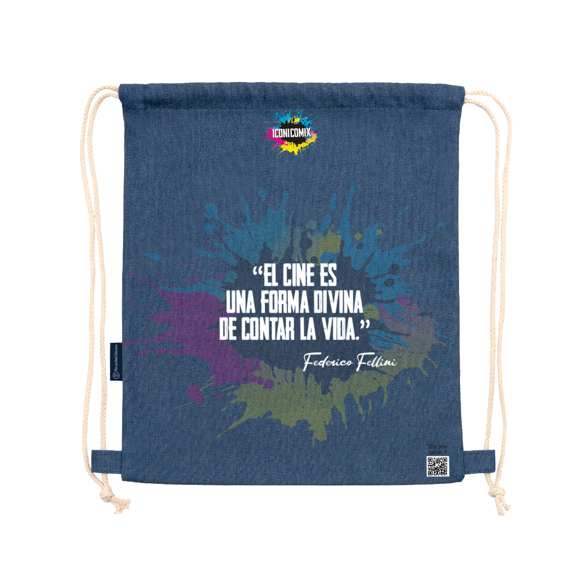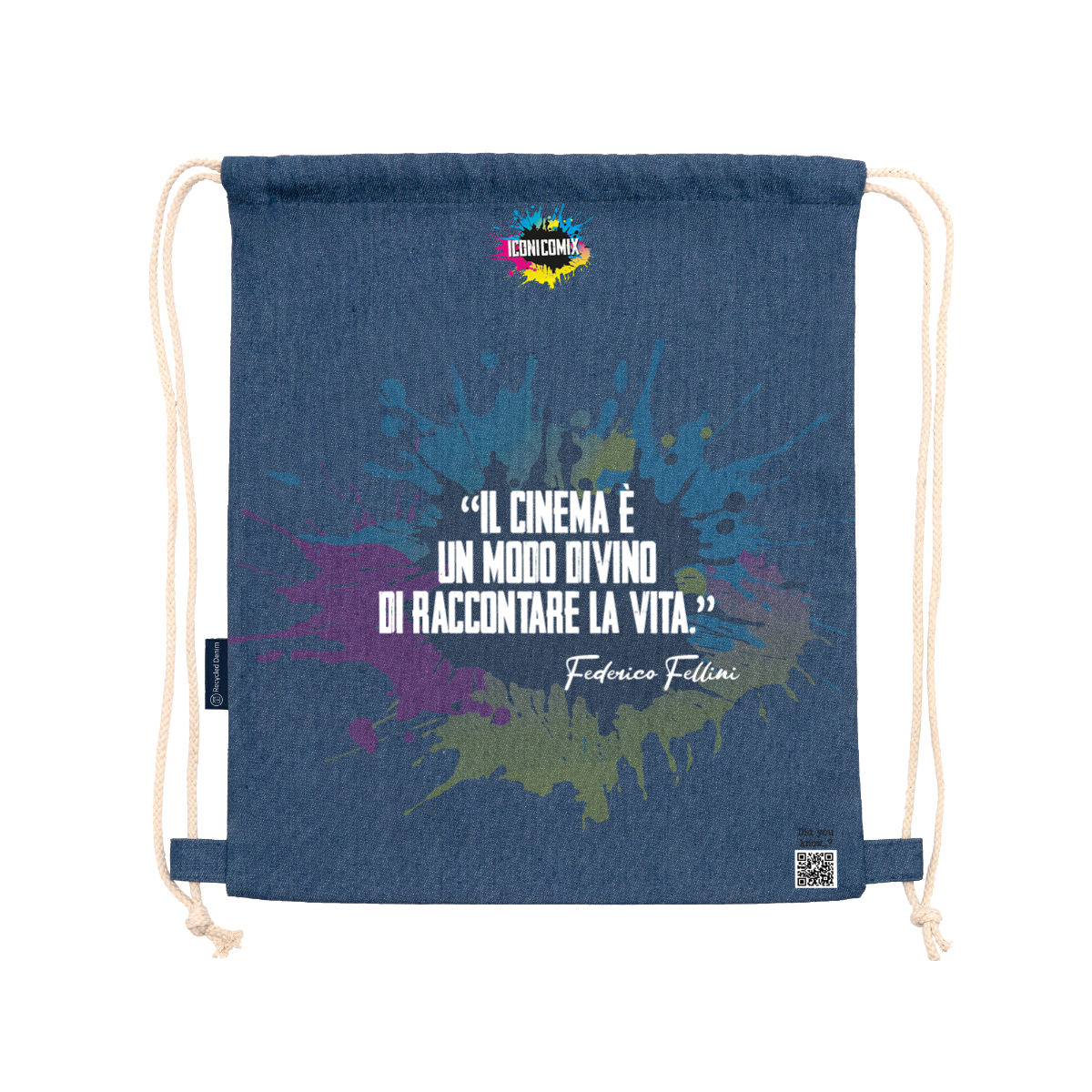 Zaino multiuso realizzato in denim riciclato. Cordoncini regolabili abbinati sul retro, spessore 8 mm. 100% denim, 320 g/m². Dimensioni: 36 cm / 42 cm .