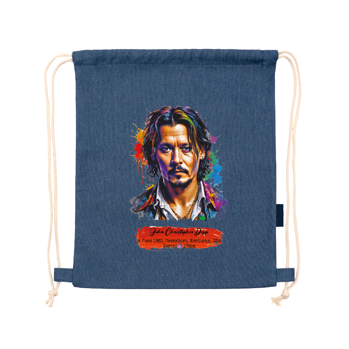 Zaino multiuso realizzato in denim riciclato. Cordoncini regolabili abbinati sul retro, spessore 8 mm. 100% denim, 320 g/m². Dimensioni: 36 cm / 42 cm .