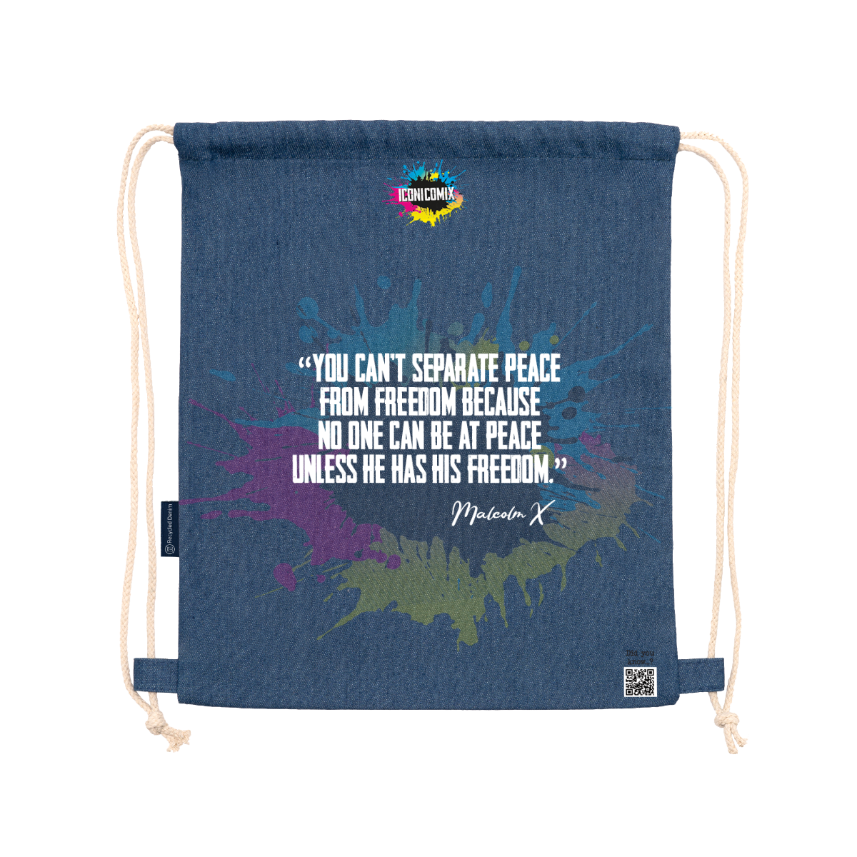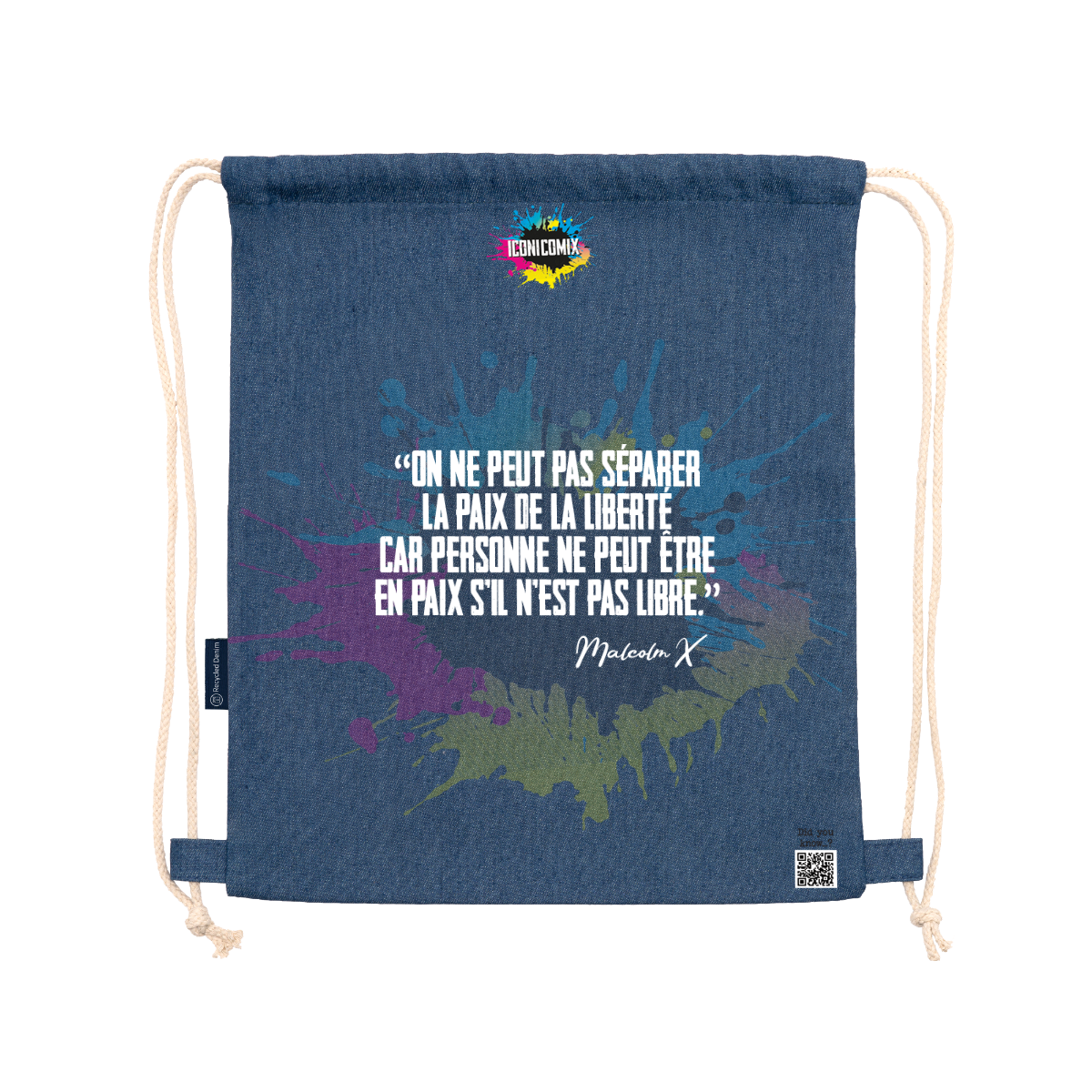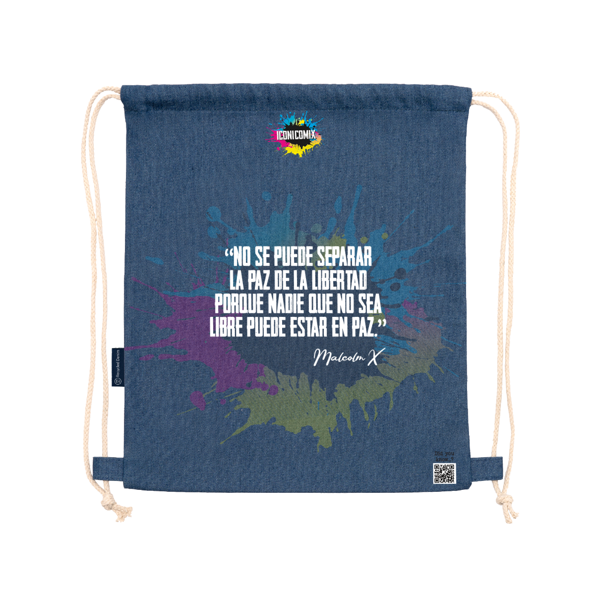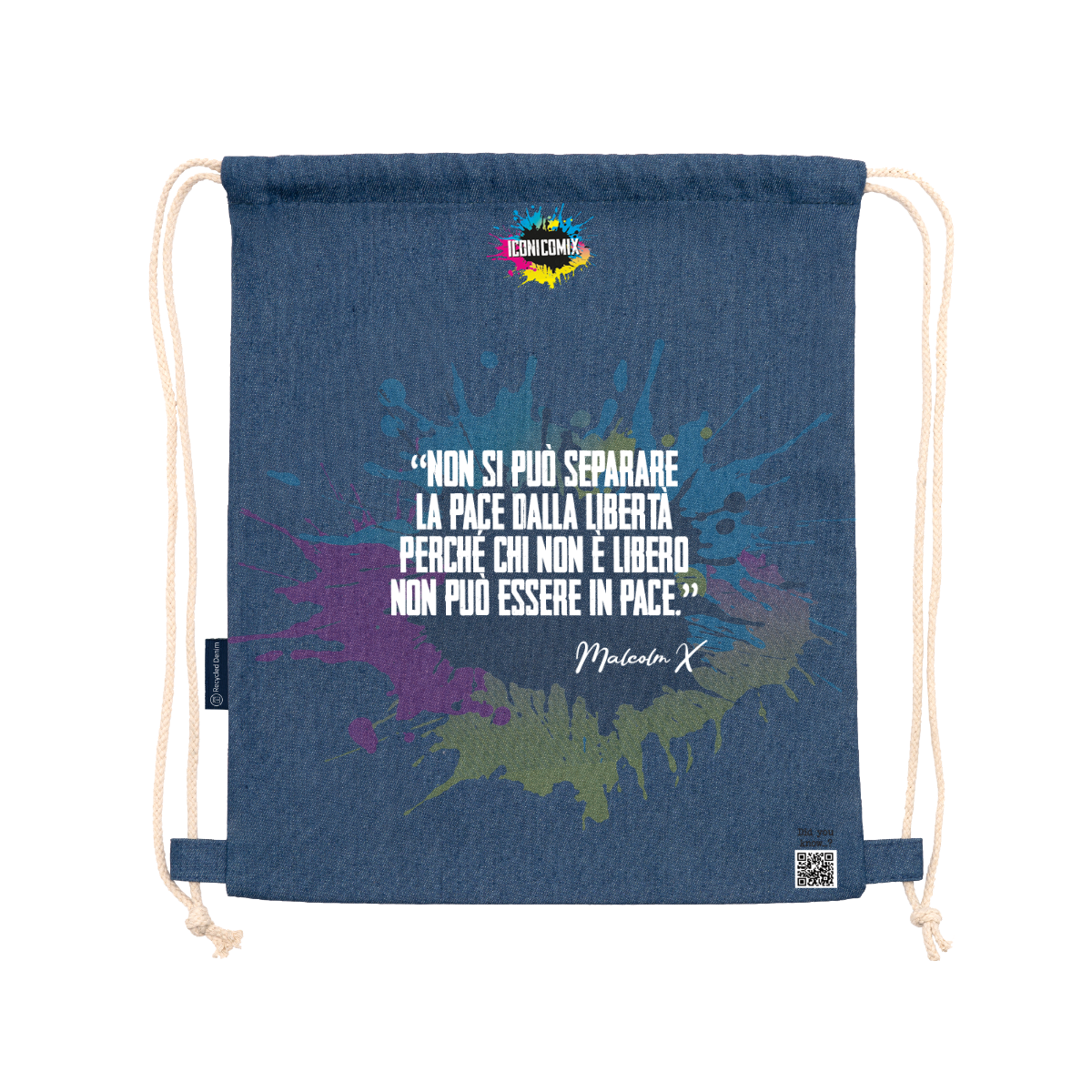 Zaino multiuso realizzato in denim riciclato. Cordoncini regolabili abbinati sul retro, spessore 8 mm. 100% denim, 320 g/m². Dimensioni: 36 cm / 42 cm .