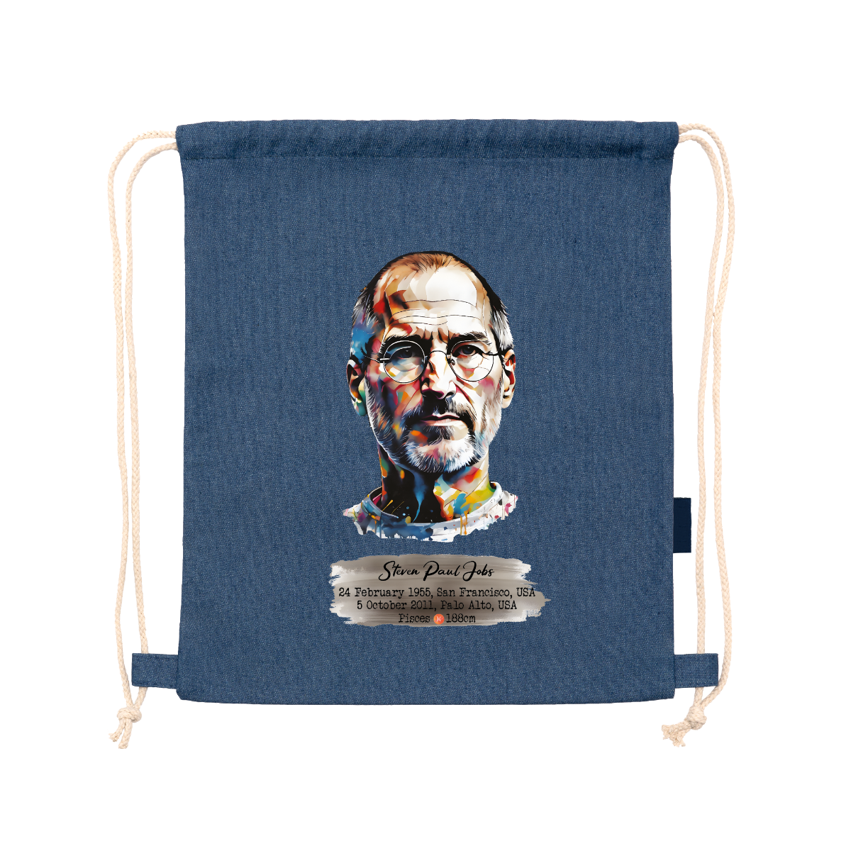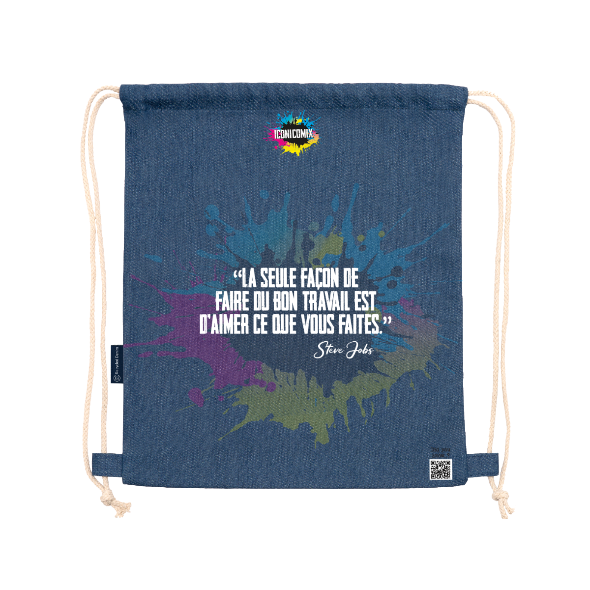 Zaino multiuso realizzato in denim riciclato. Cordoncini regolabili abbinati sul retro, spessore 8 mm. 100% denim, 320 g/m². Dimensioni: 36 cm / 42 cm .