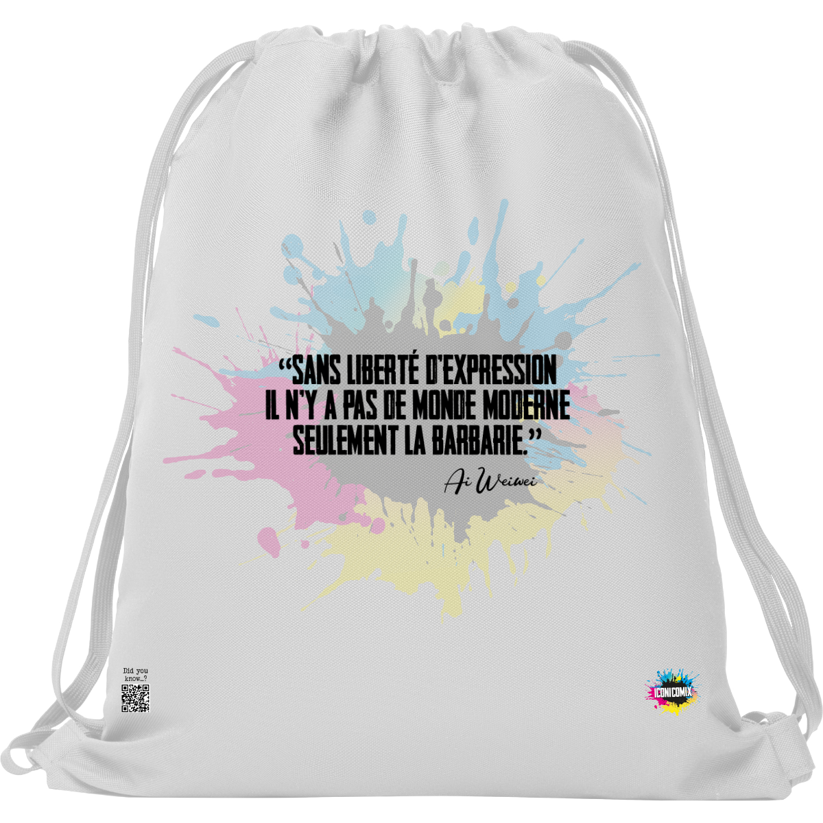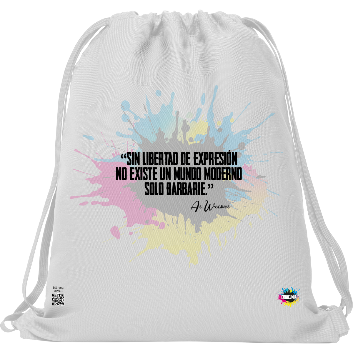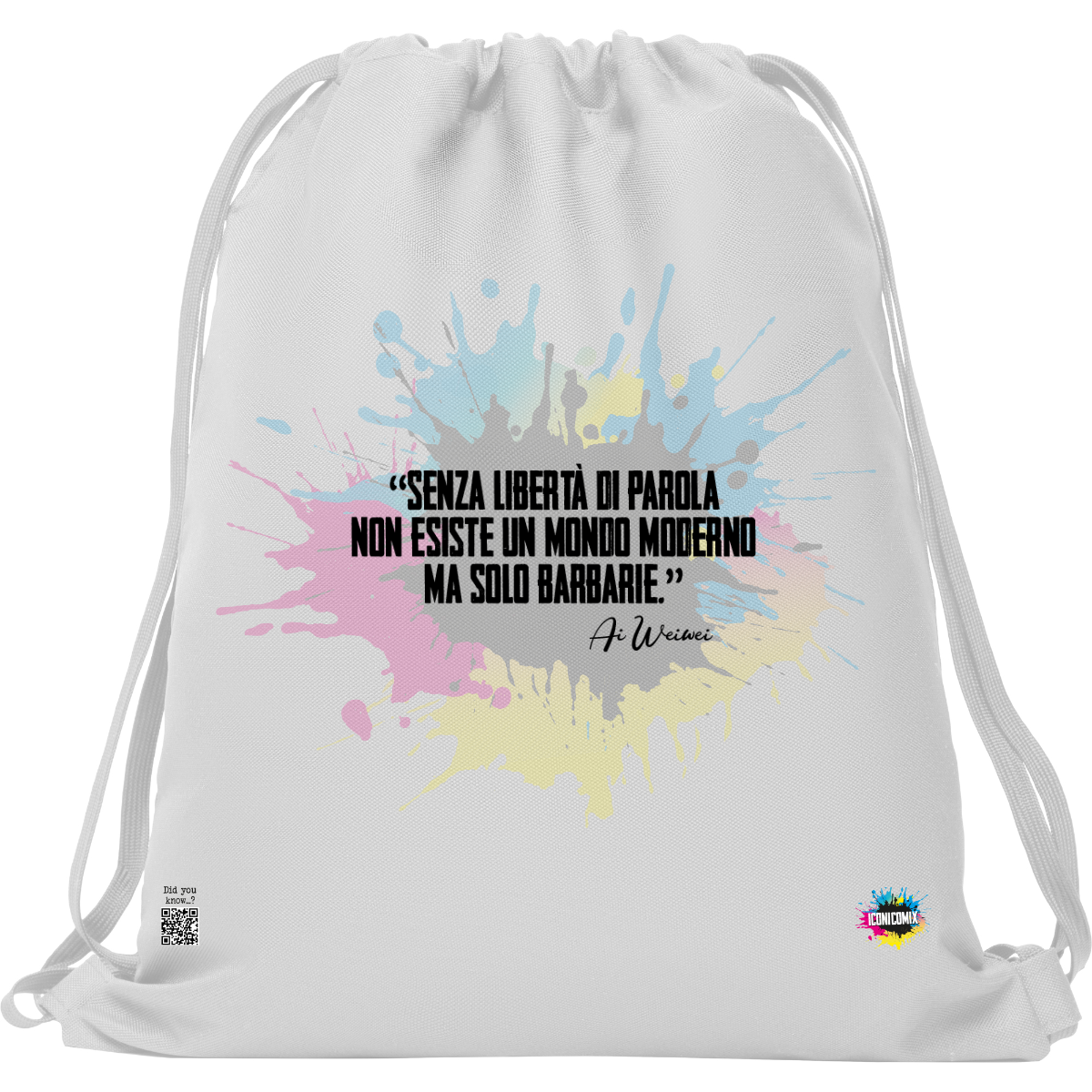 In ogni nostra grafica è presente anche un QR code che reindirizza al sito iconicomix.com, alla pagina ufficiale dell’icona che hai scelto. Una porta digitale che racconta la sua storia, le sue frasi e il suo mondo.