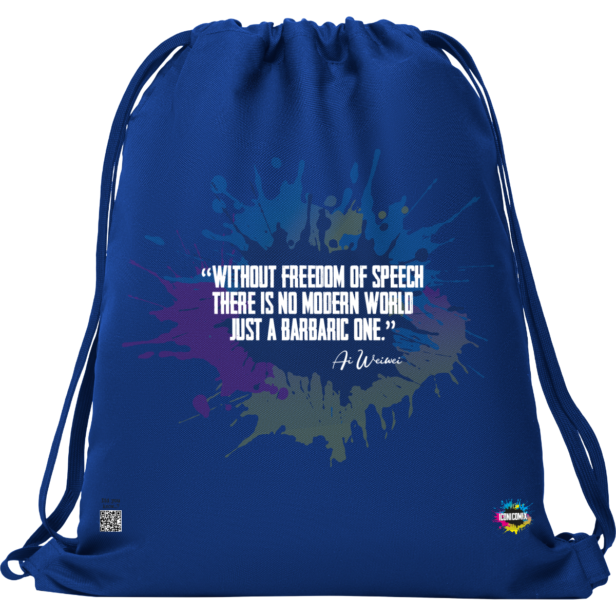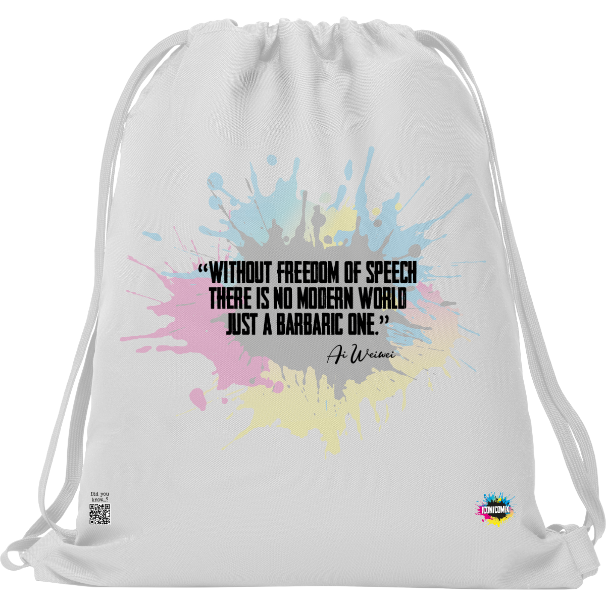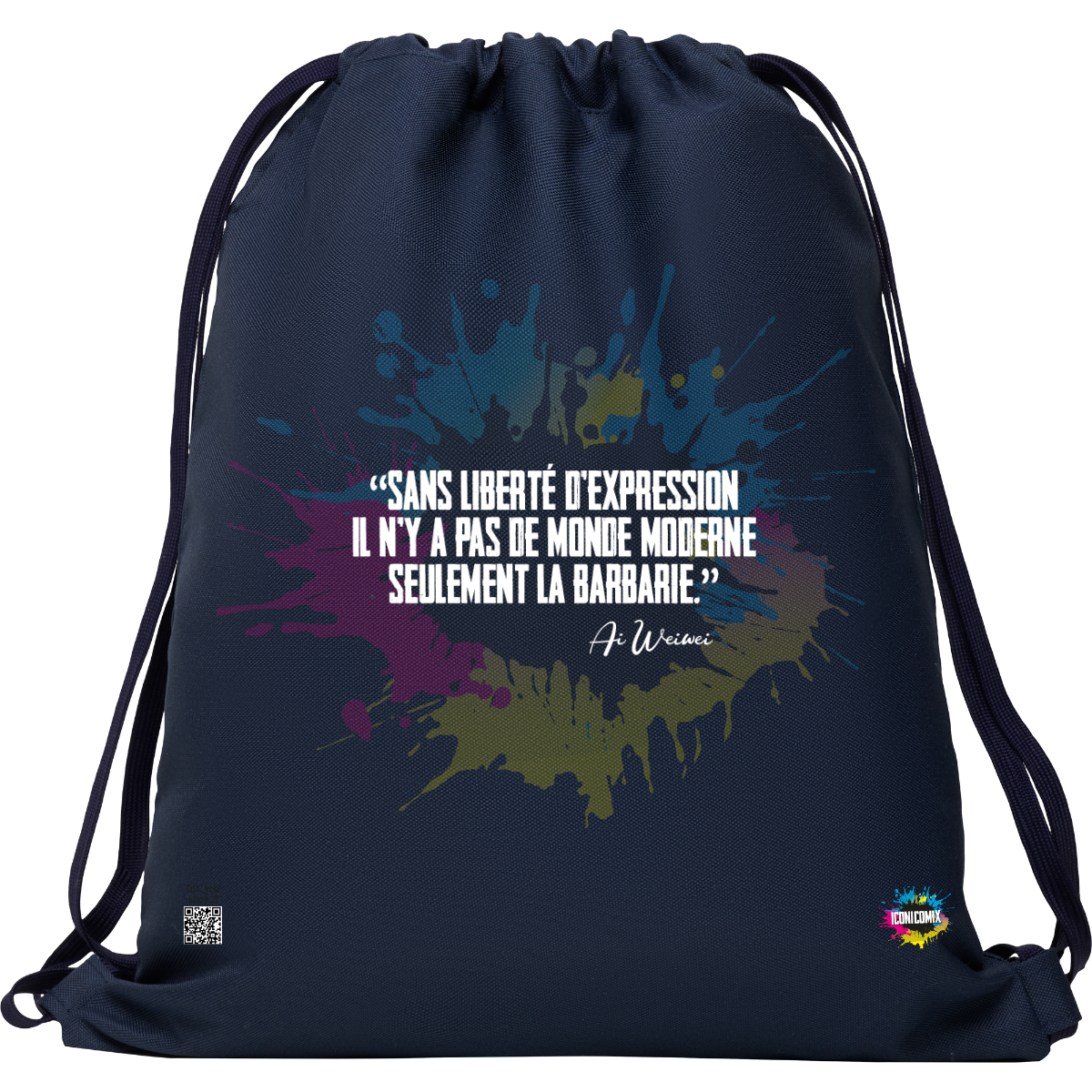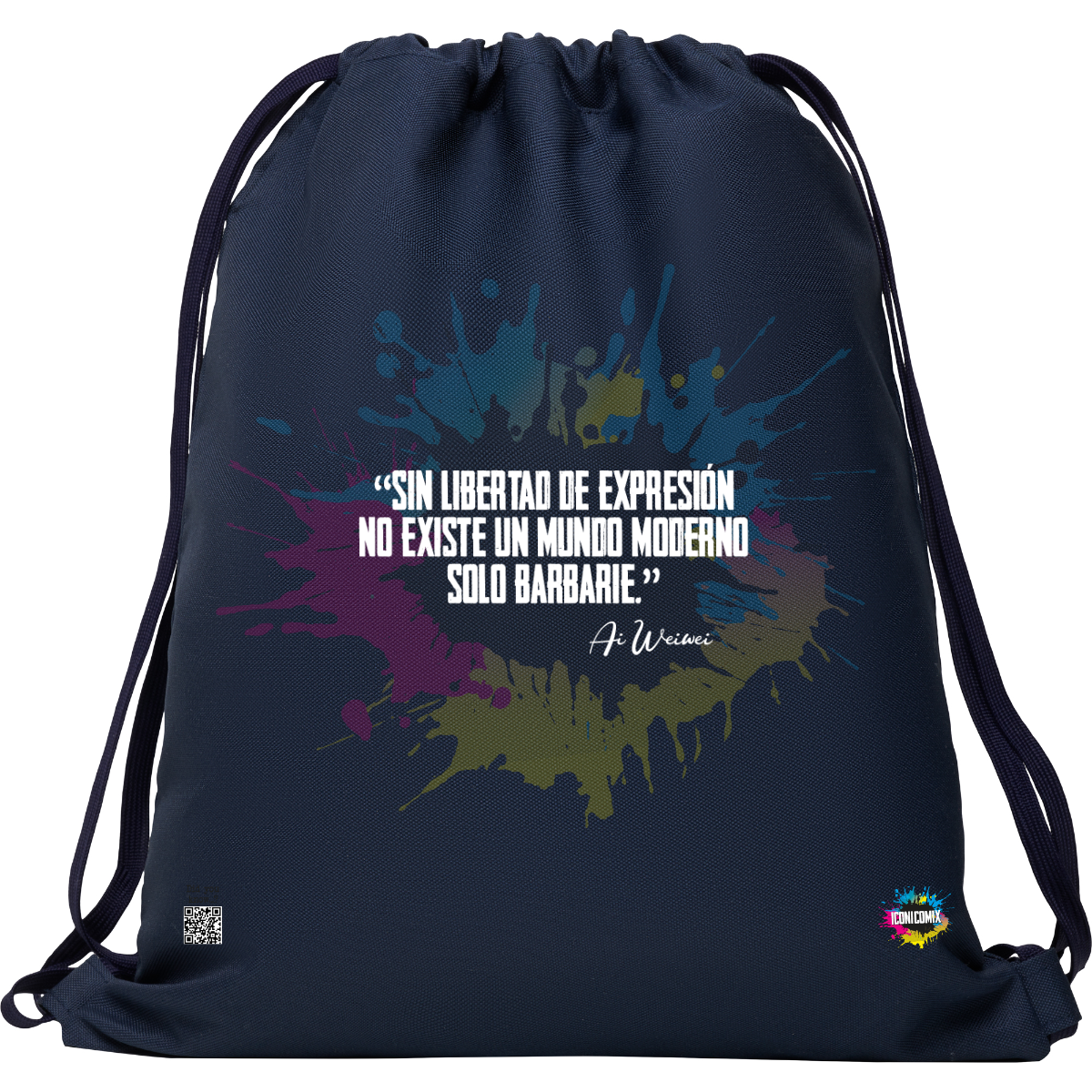 In ogni nostra grafica è presente anche un QR code che reindirizza al sito iconicomix.com, alla pagina ufficiale dell’icona che hai scelto. Una porta digitale che racconta la sua storia, le sue frasi e il suo mondo.