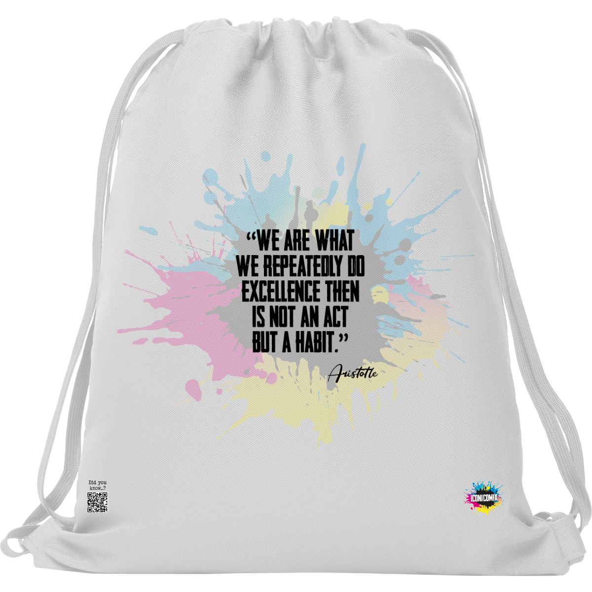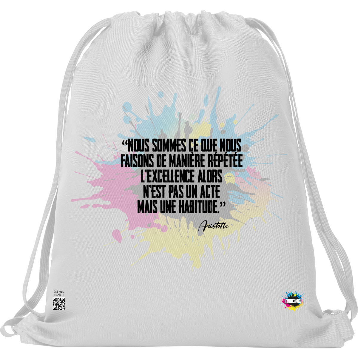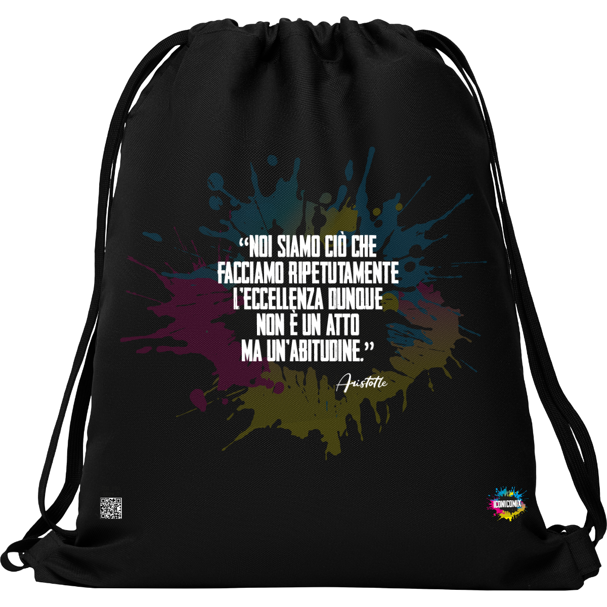 In ogni nostra grafica è presente anche un QR code che reindirizza al sito iconicomix.com, alla pagina ufficiale dell’icona che hai scelto. Una porta digitale che racconta la sua storia, le sue frasi e il suo mondo.