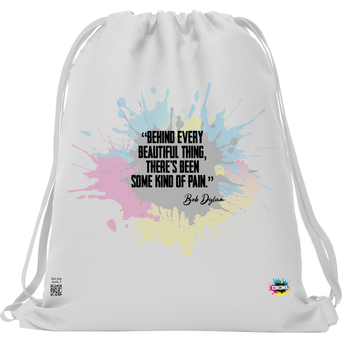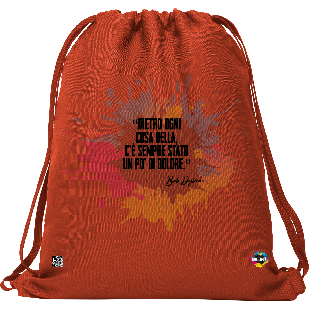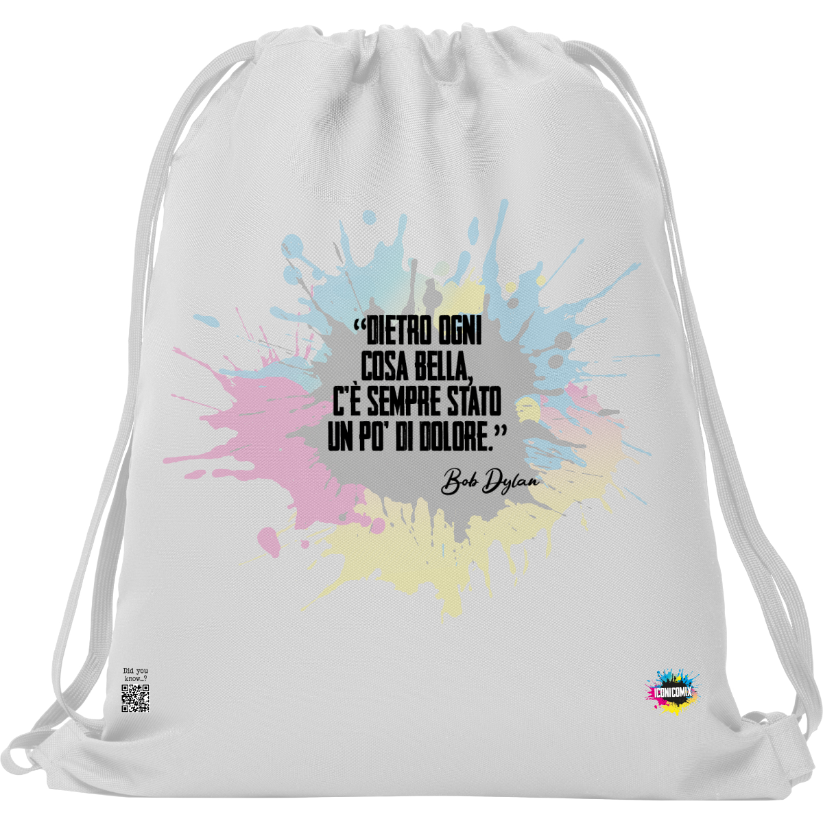 In ogni nostra grafica è presente anche un QR code che reindirizza al sito iconicomix.com, alla pagina ufficiale dell’icona che hai scelto. Una porta digitale che racconta la sua storia, le sue frasi e il suo mondo.