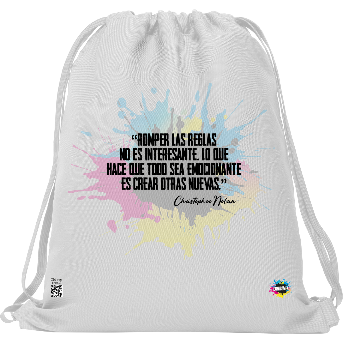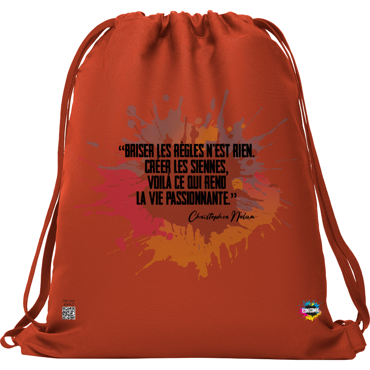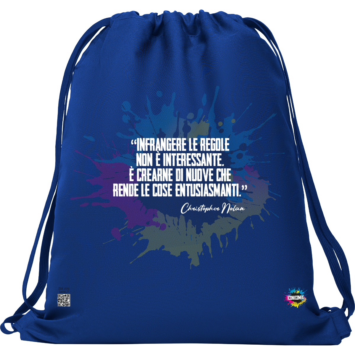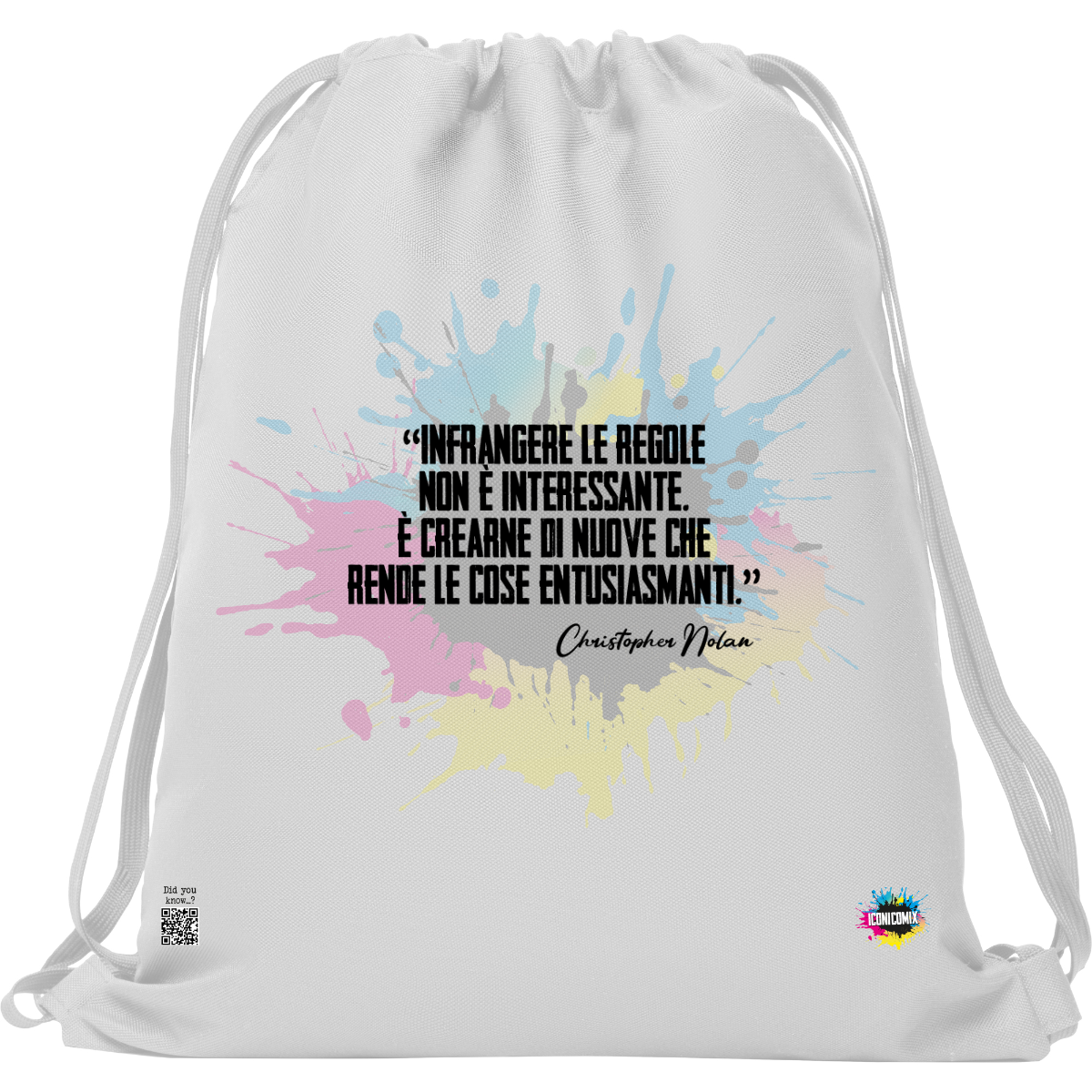 In ogni nostra grafica è presente anche un QR code che reindirizza al sito iconicomix.com, alla pagina ufficiale dell’icona che hai scelto. Una porta digitale che racconta la sua storia, le sue frasi e il suo mondo.