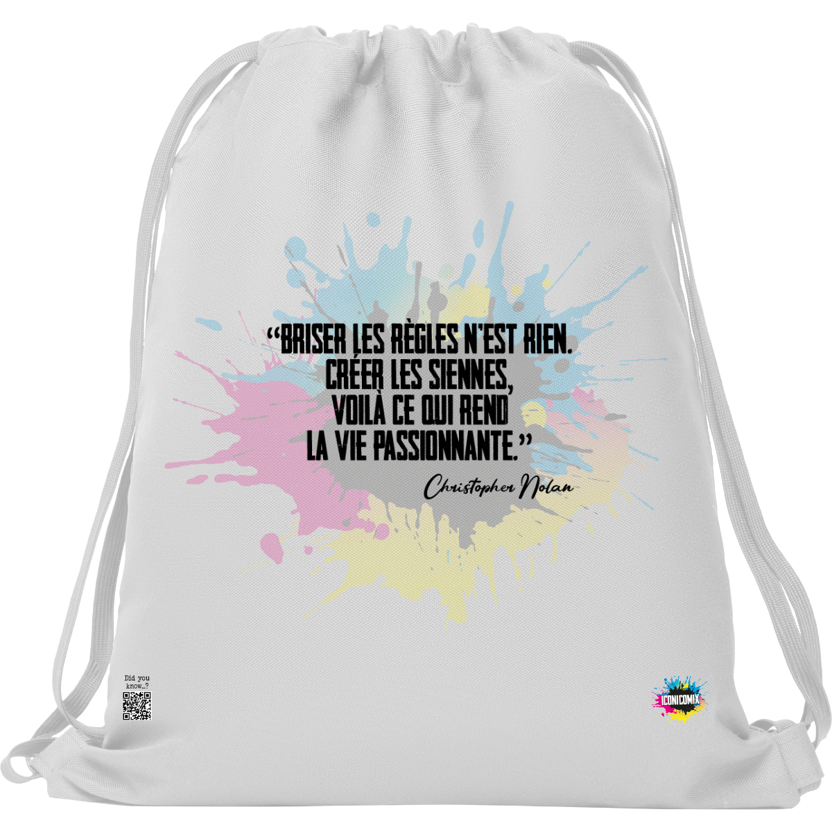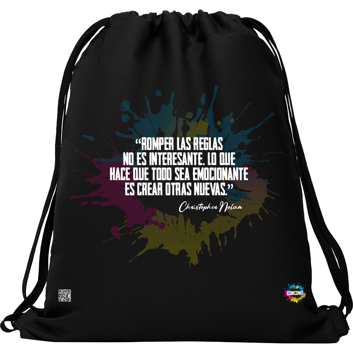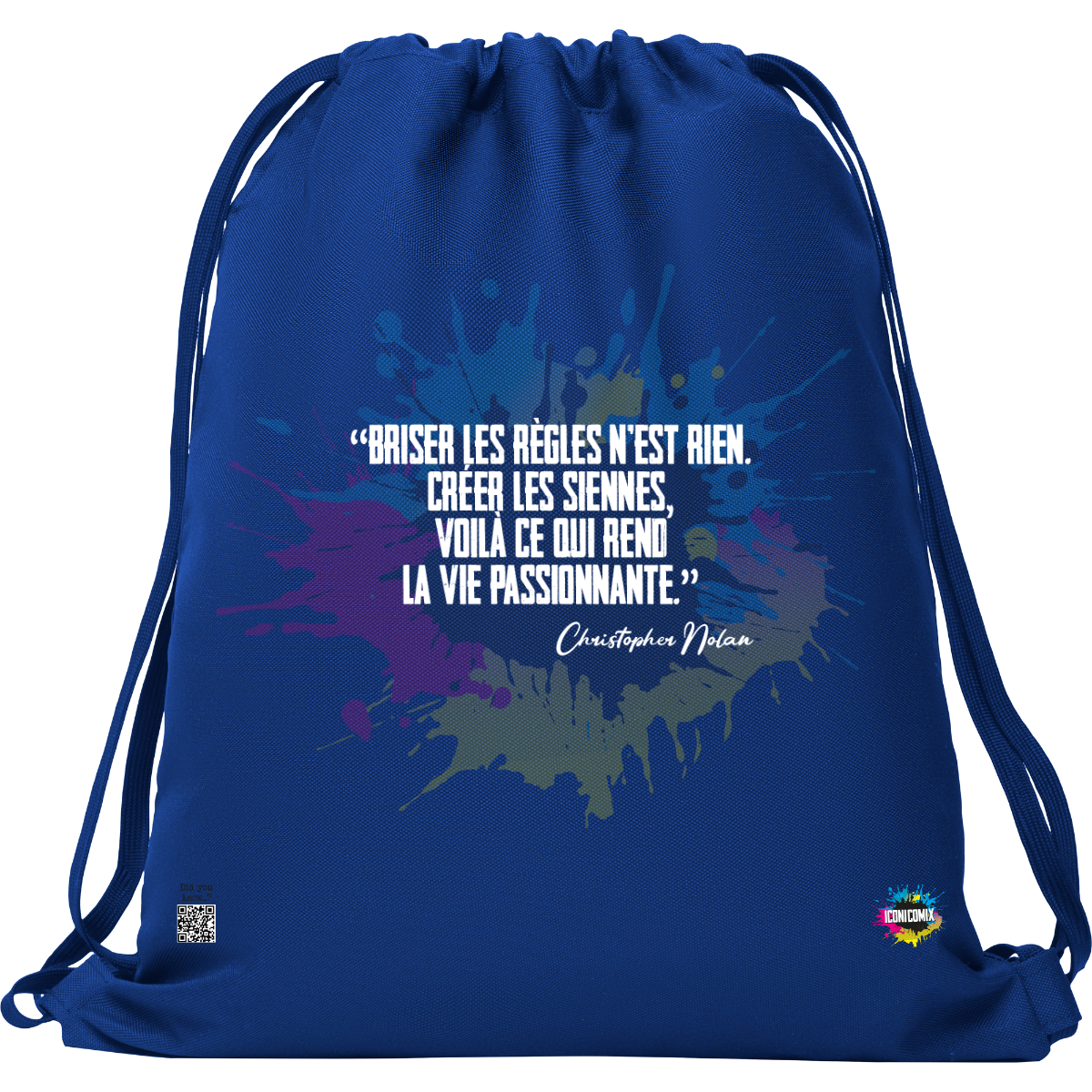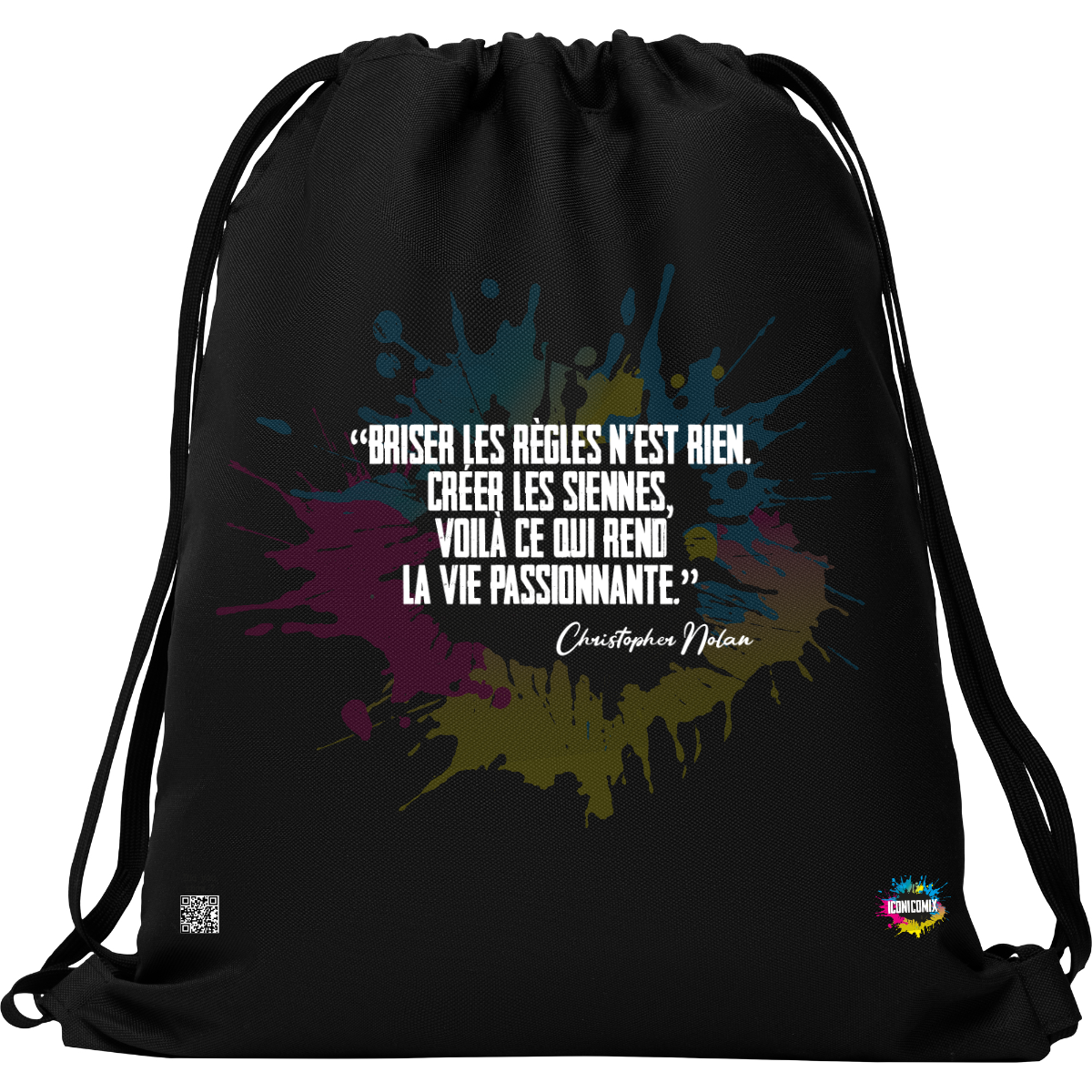 In ogni nostra grafica è presente anche un QR code che reindirizza al sito iconicomix.com, alla pagina ufficiale dell’icona che hai scelto. Una porta digitale che racconta la sua storia, le sue frasi e il suo mondo.