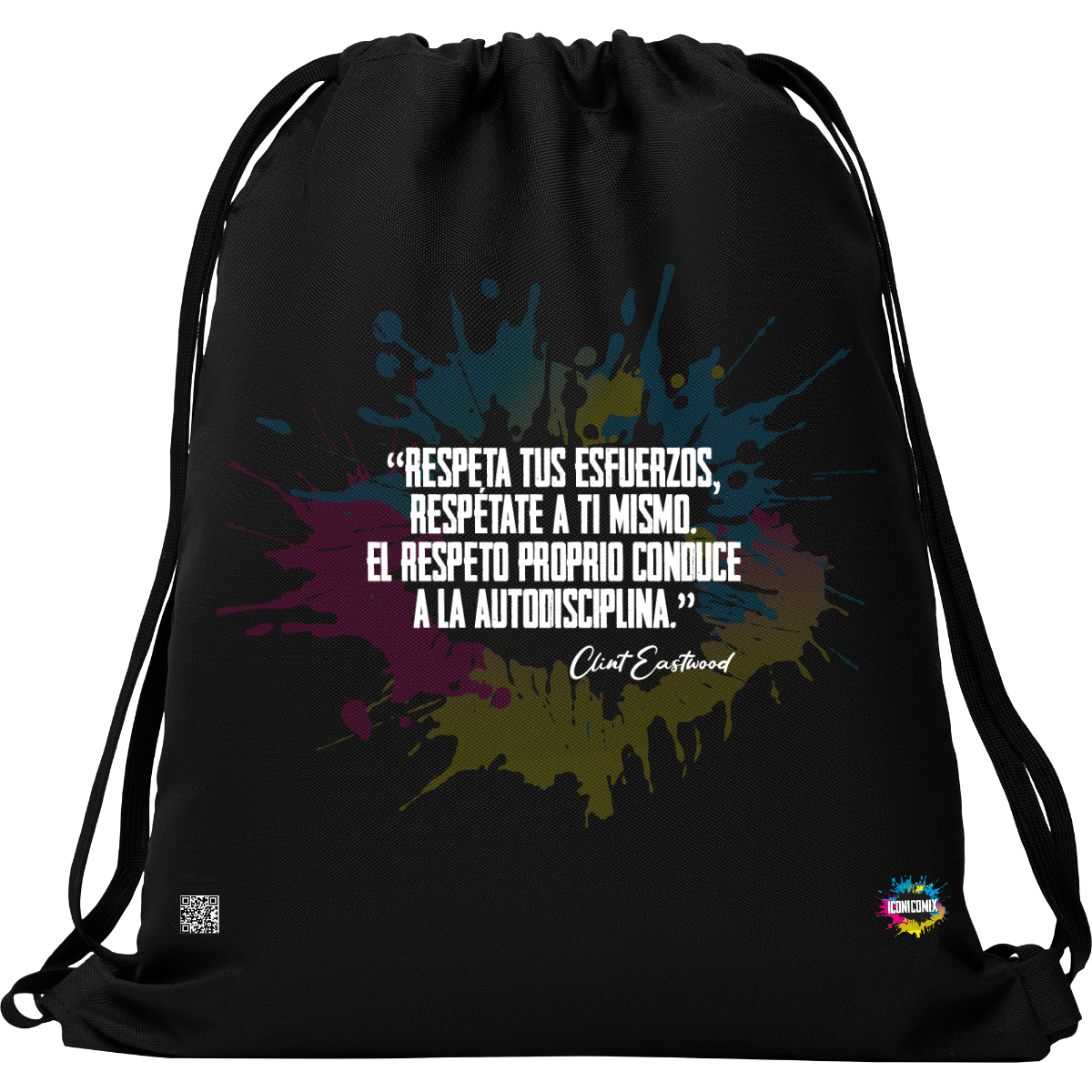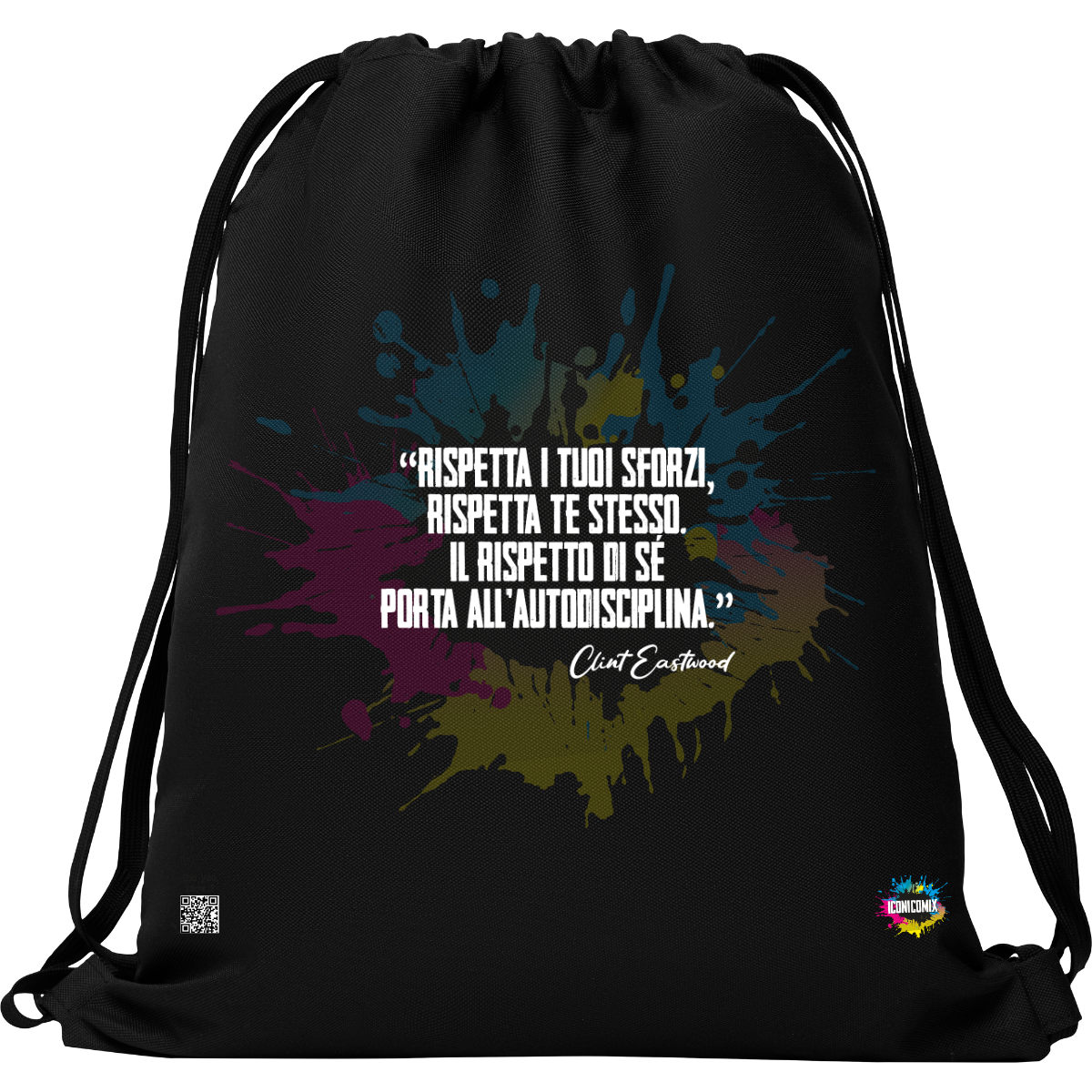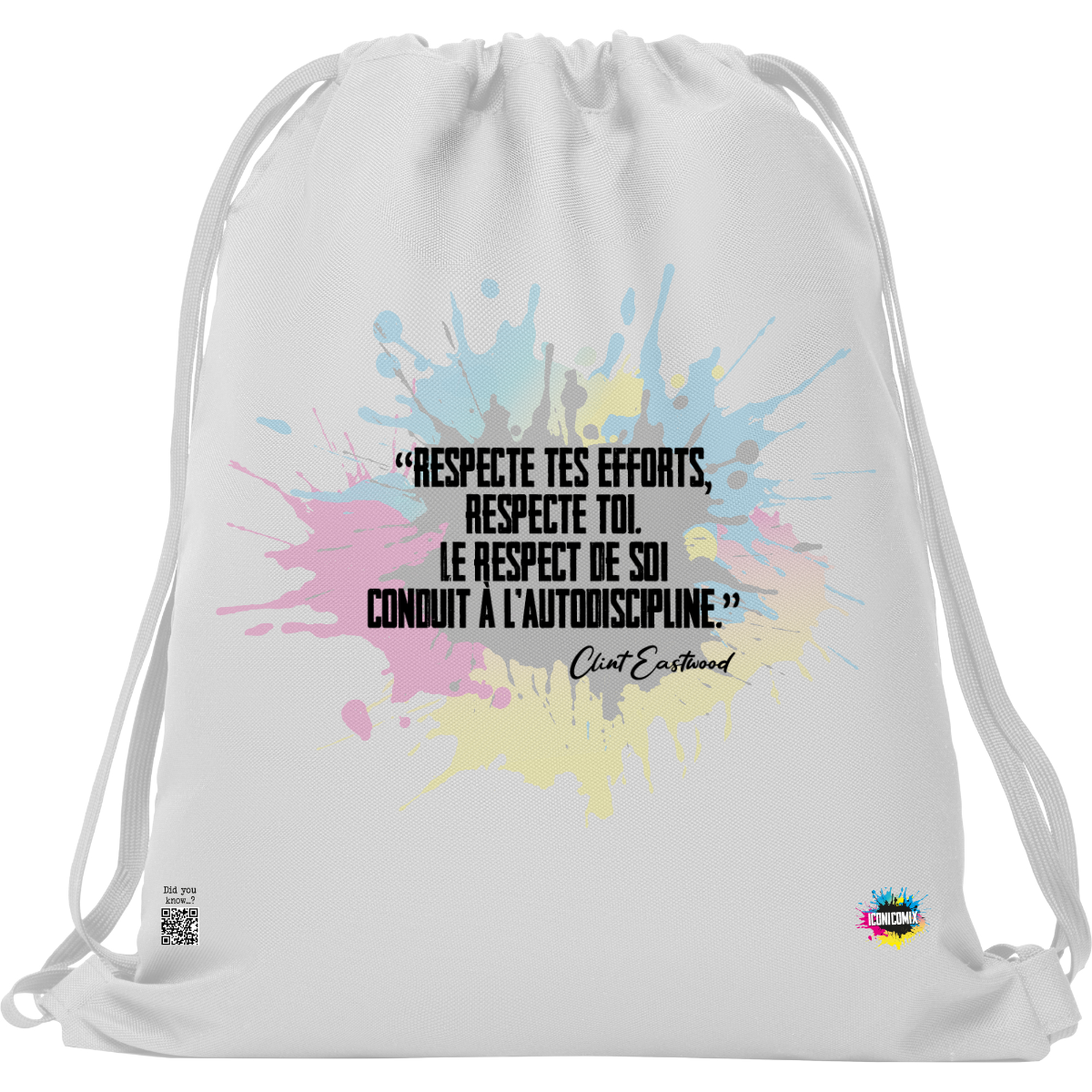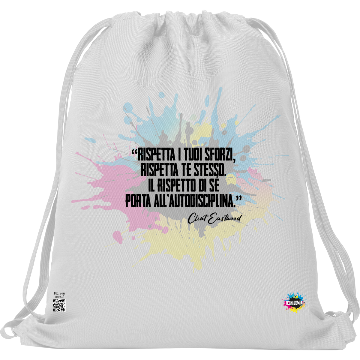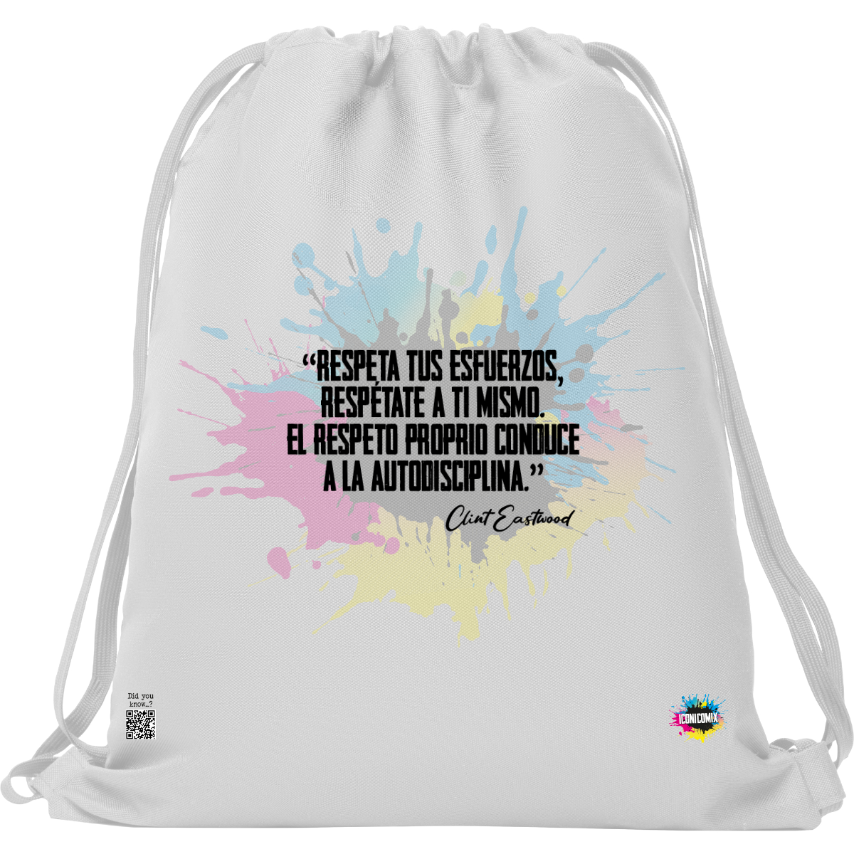 Multipurpose cotton backpack. Adjustable matching drawstrings on the back, 8 mm thick. 100% cotton, 140 g/m². Measures 37cm / 41cm