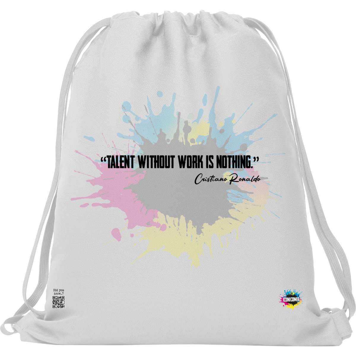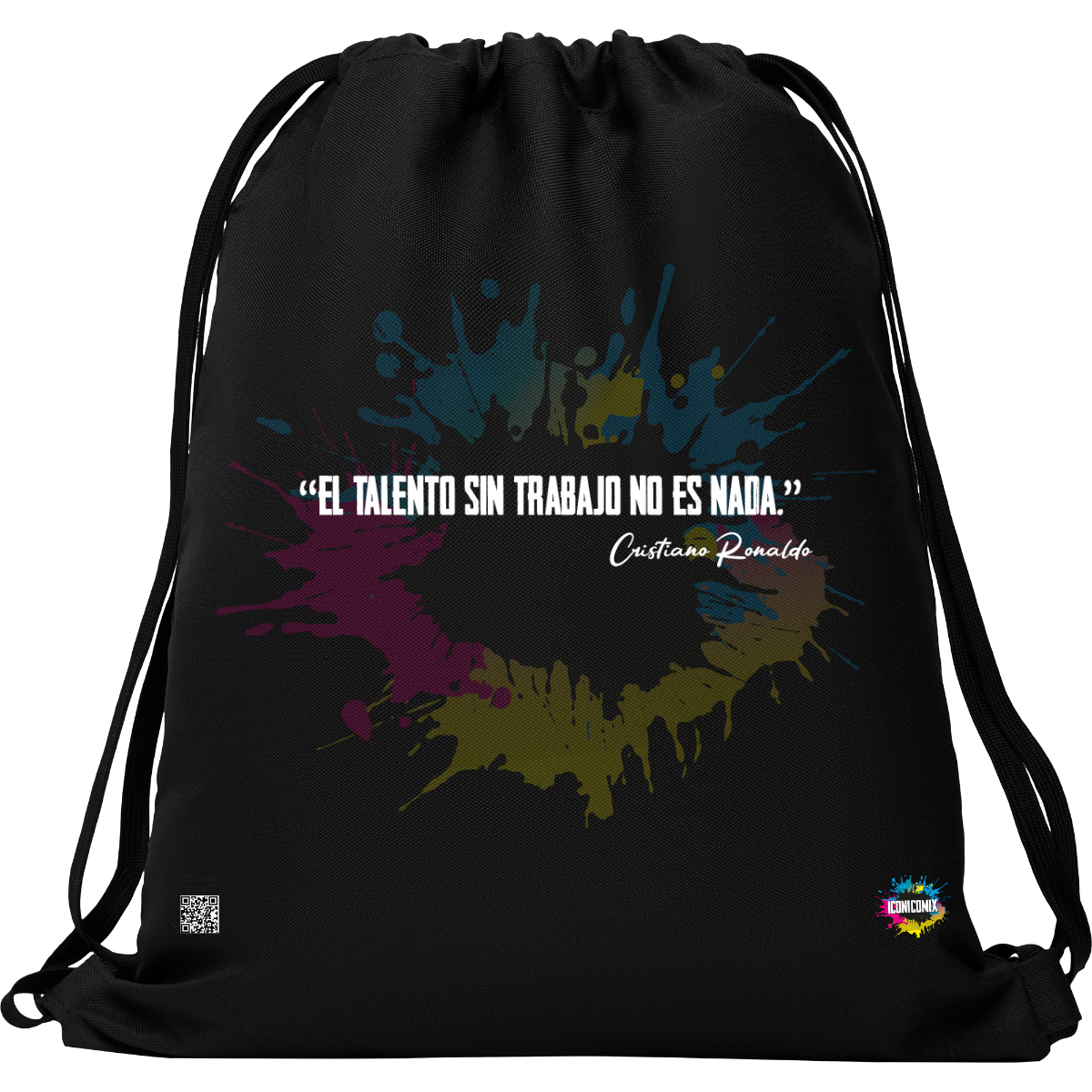 Each of our graphics also features a QR code that redirects you to the iconicomix.com website, the official page of the icon you've chosen. A digital gateway that tells its story, its phrases, and its world.