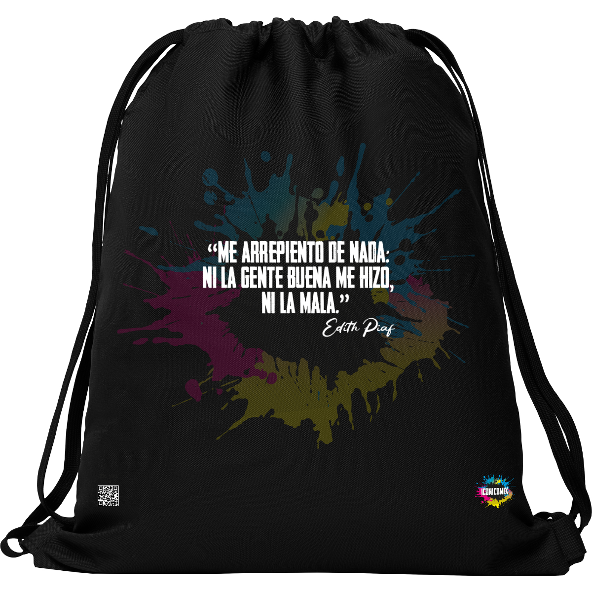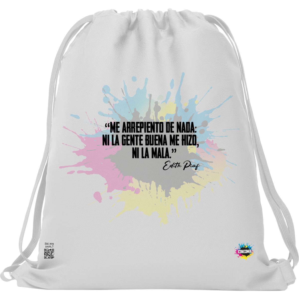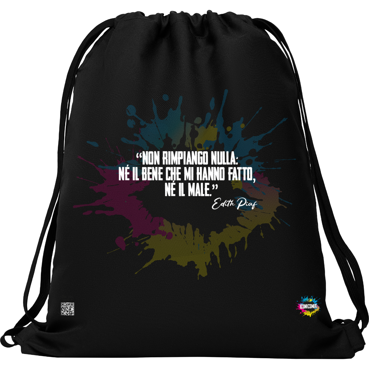 In ogni nostra grafica è presente anche un QR code che reindirizza al sito iconicomix.com, alla pagina ufficiale dell’icona che hai scelto. Una porta digitale che racconta la sua storia, le sue frasi e il suo mondo.