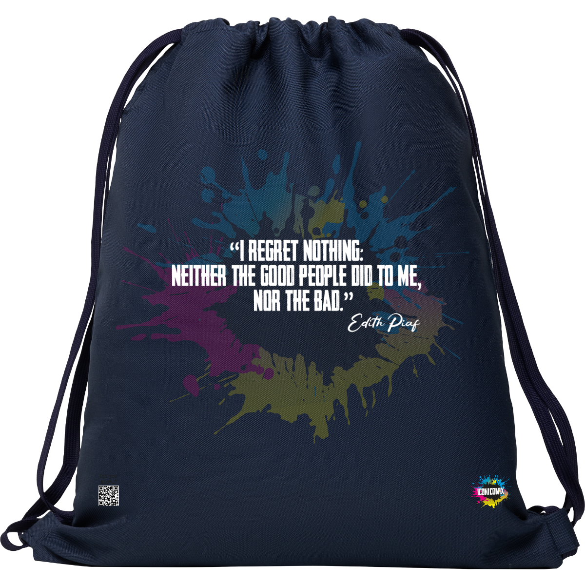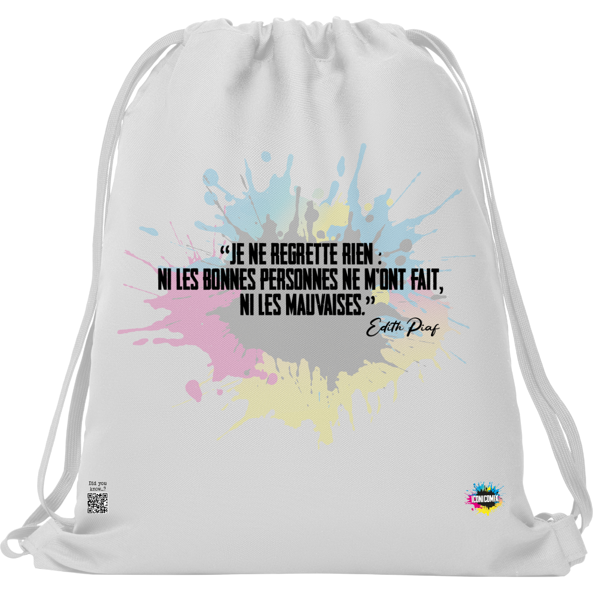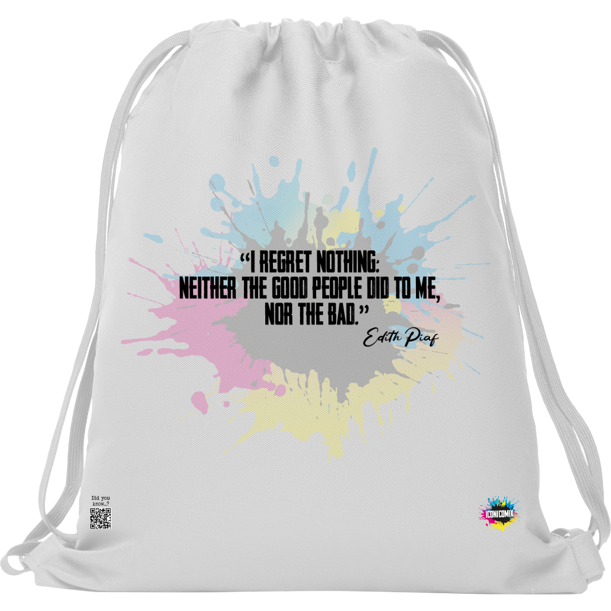 In ogni nostra grafica è presente anche un QR code che reindirizza al sito iconicomix.com, alla pagina ufficiale dell’icona che hai scelto. Una porta digitale che racconta la sua storia, le sue frasi e il suo mondo.