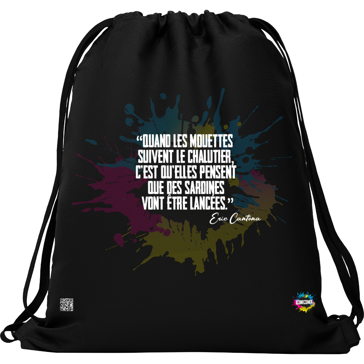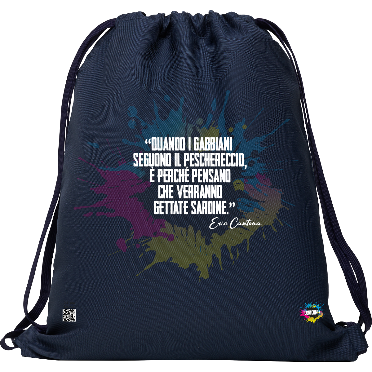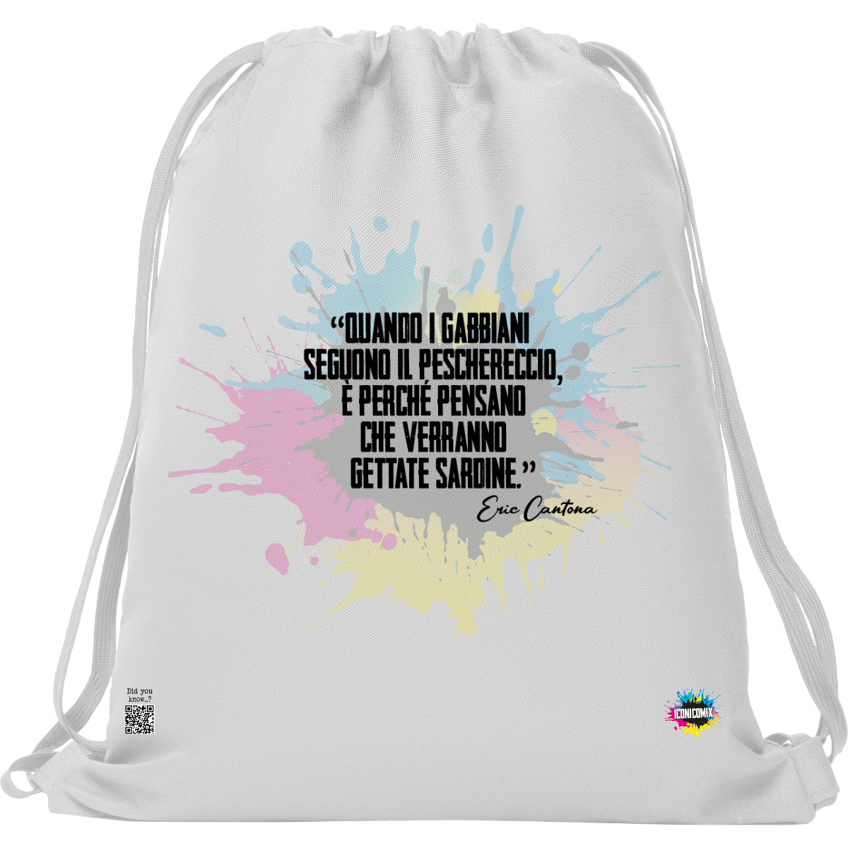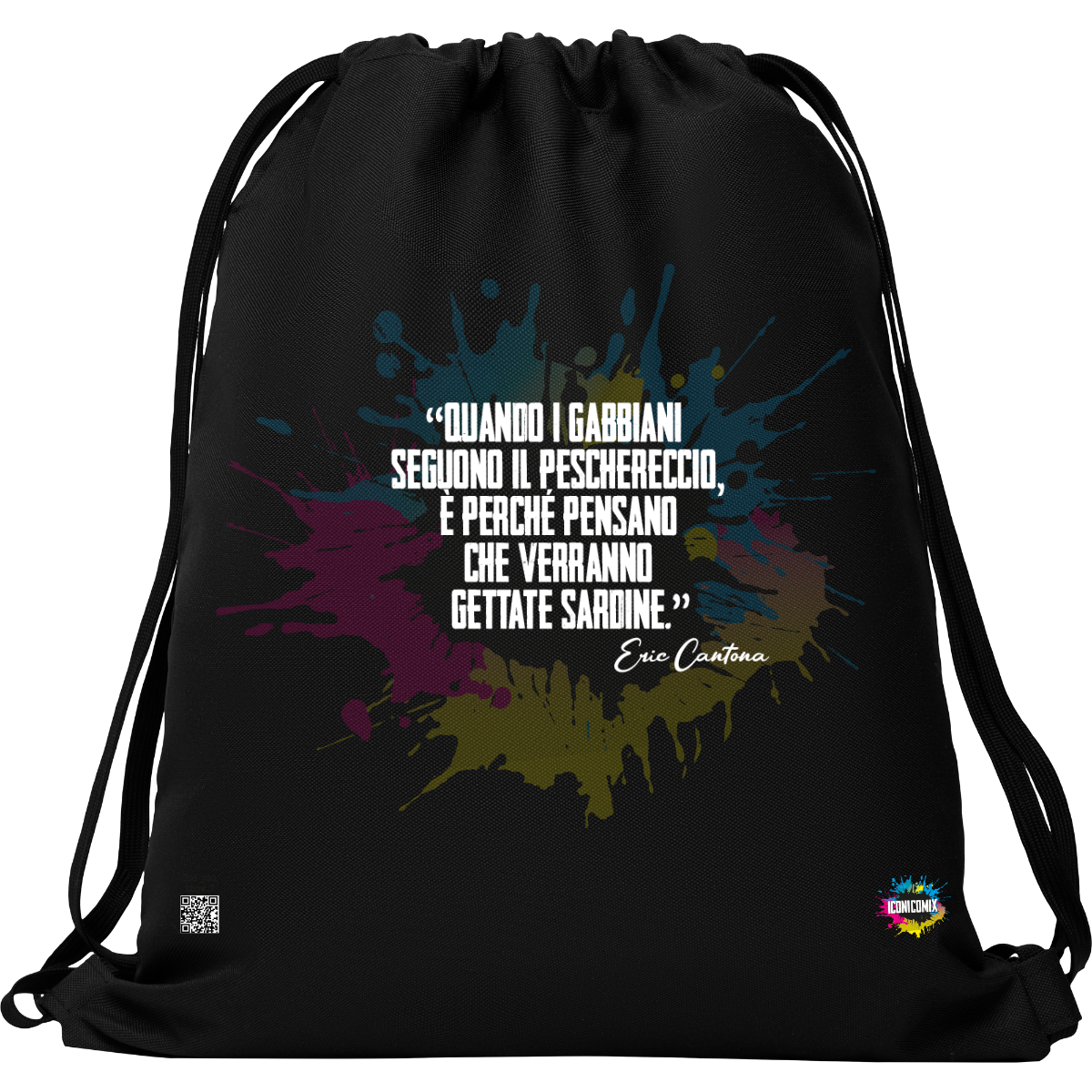 In ogni nostra grafica è presente anche un QR code che reindirizza al sito iconicomix.com, alla pagina ufficiale dell’icona che hai scelto. Una porta digitale che racconta la sua storia, le sue frasi e il suo mondo.