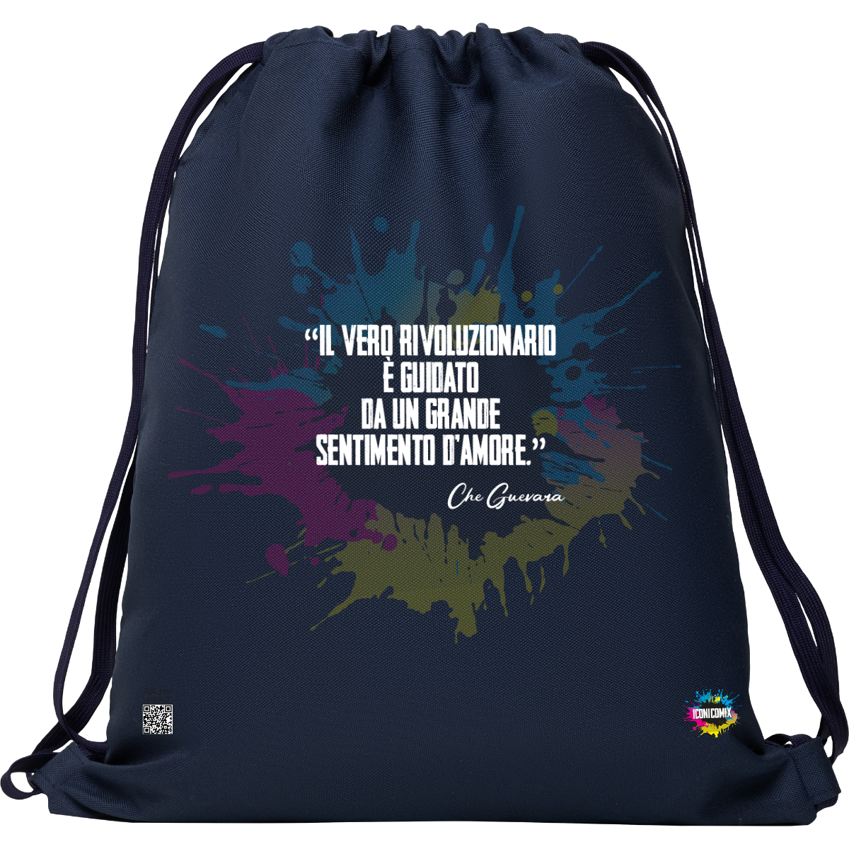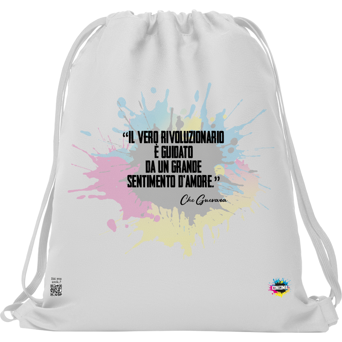 In ogni nostra grafica è presente anche un QR code che reindirizza al sito iconicomix.com, alla pagina ufficiale dell’icona che hai scelto. Una porta digitale che racconta la sua storia, le sue frasi e il suo mondo.