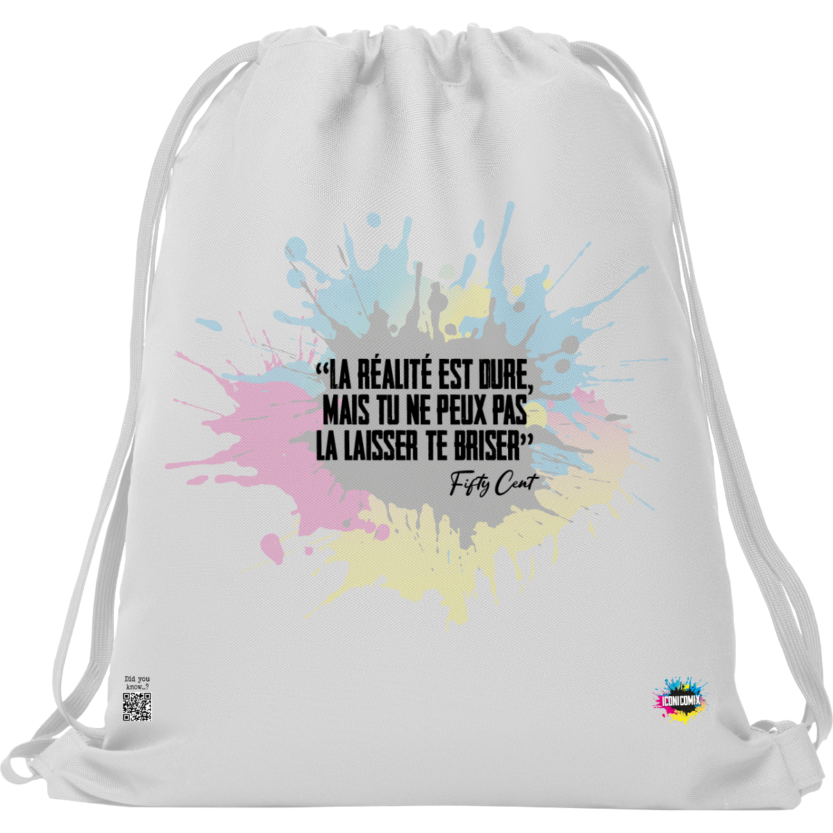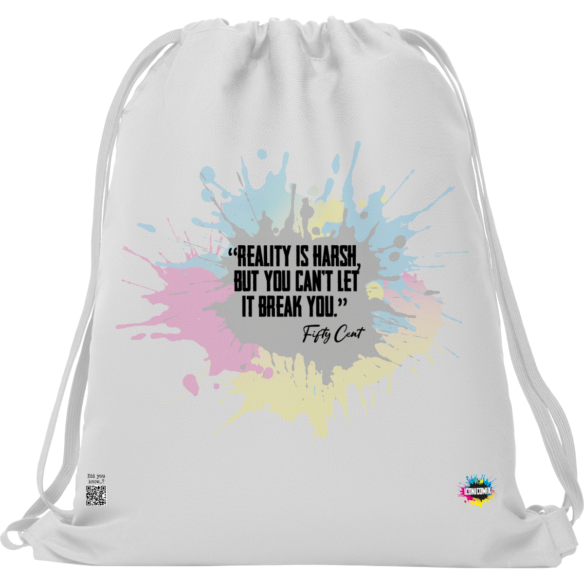 In ogni nostra grafica è presente anche un QR code che reindirizza al sito iconicomix.com, alla pagina ufficiale dell’icona che hai scelto. Una porta digitale che racconta la sua storia, le sue frasi e il suo mondo.