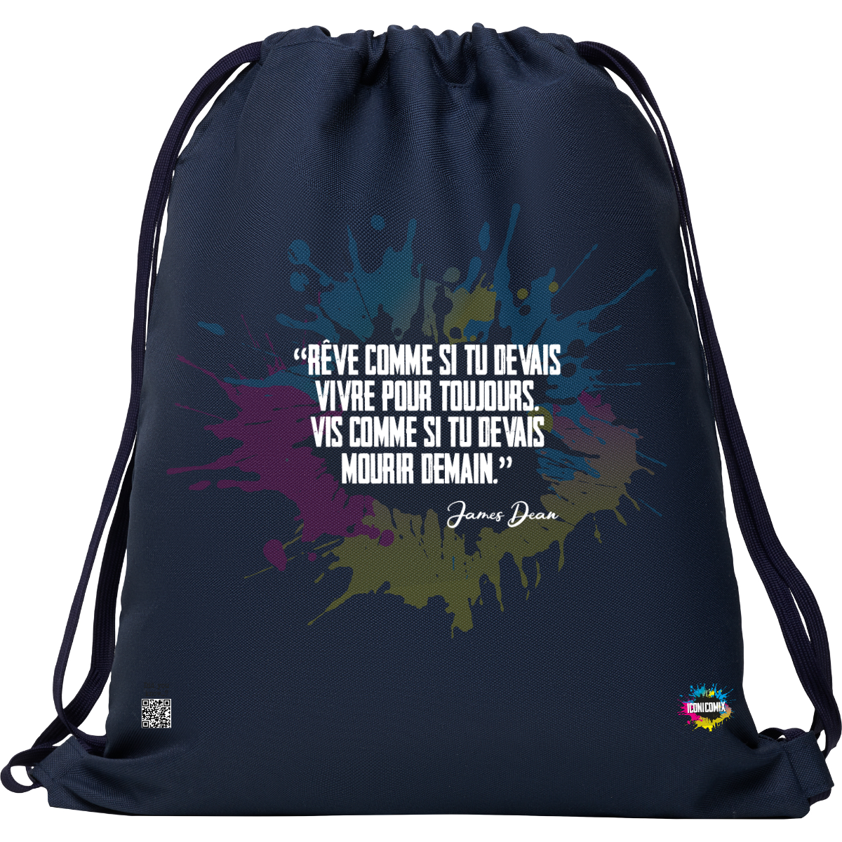 Borsa sportiva con coulisse dal design semplice. Cordini piatti abbinati. Tasca interna con cerniera. 100% poliestere 600D. 150 g/m².  Misure  35,5 X 42,5 cm