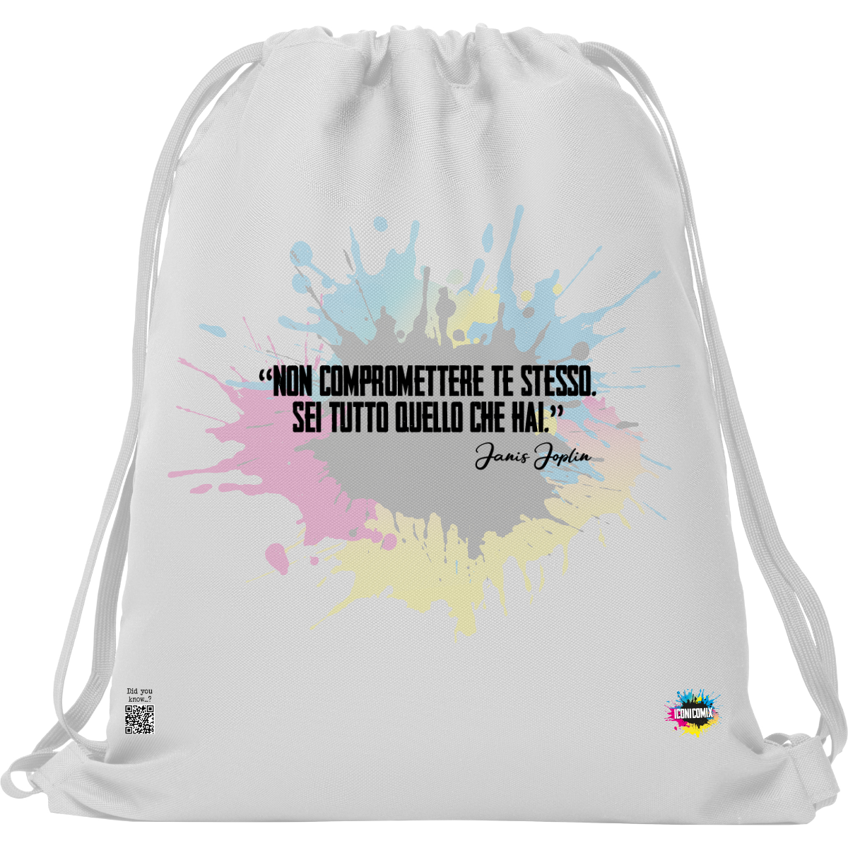 In ogni nostra grafica è presente anche un QR code che reindirizza al sito iconicomix.com, alla pagina ufficiale dell’icona che hai scelto. Una porta digitale che racconta la sua storia, le sue frasi e il suo mondo.