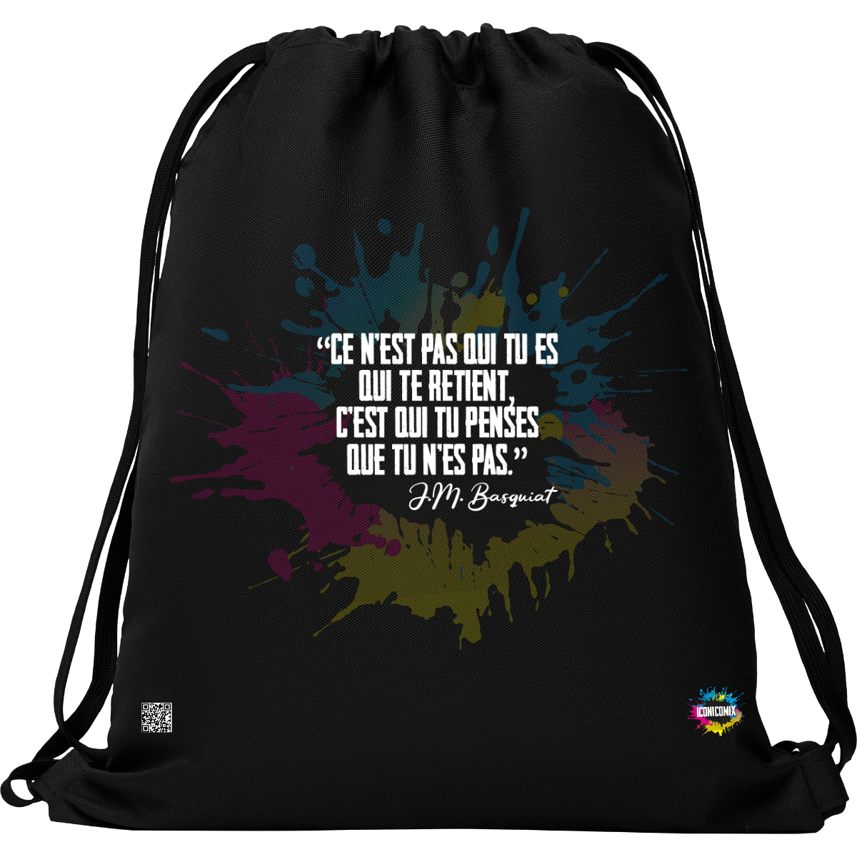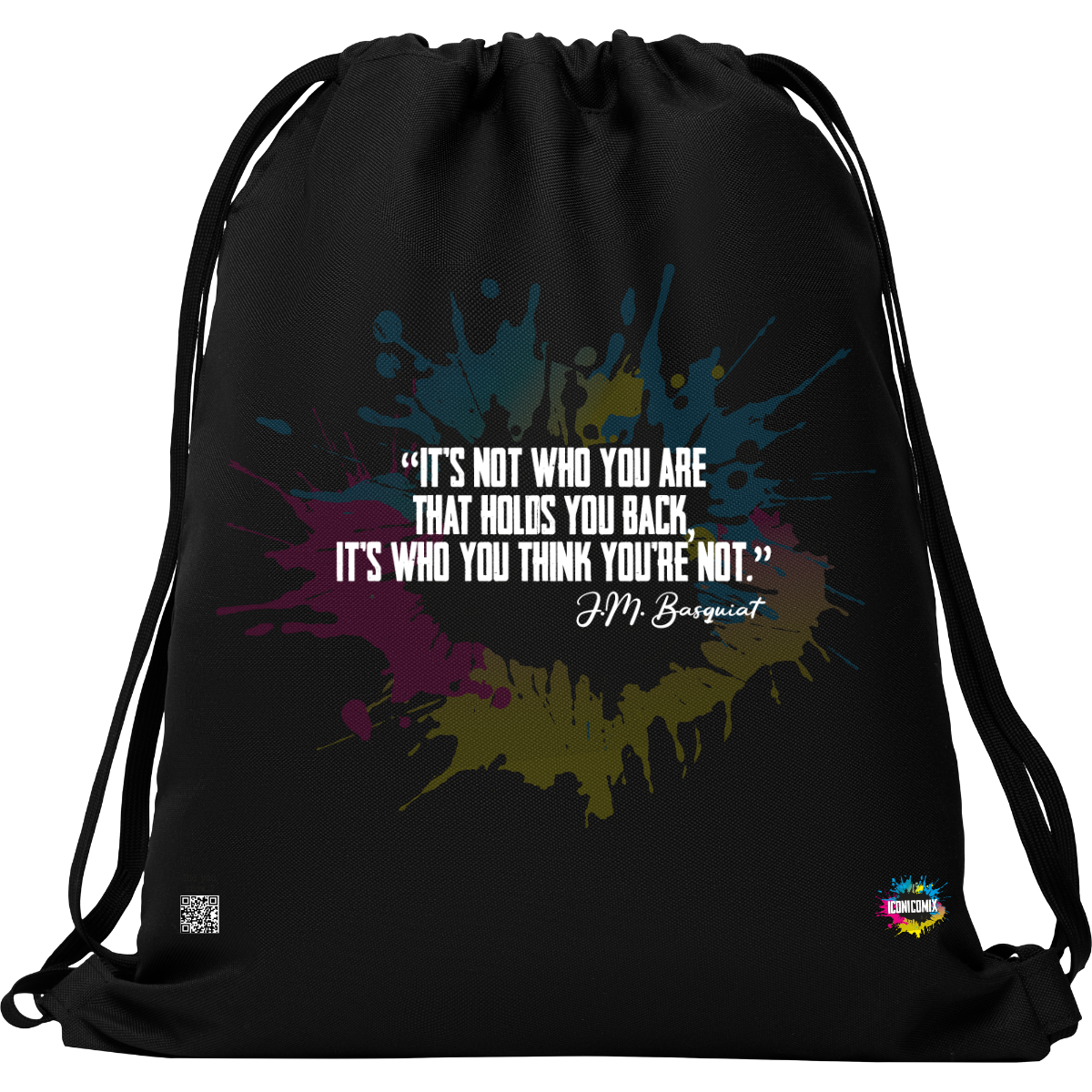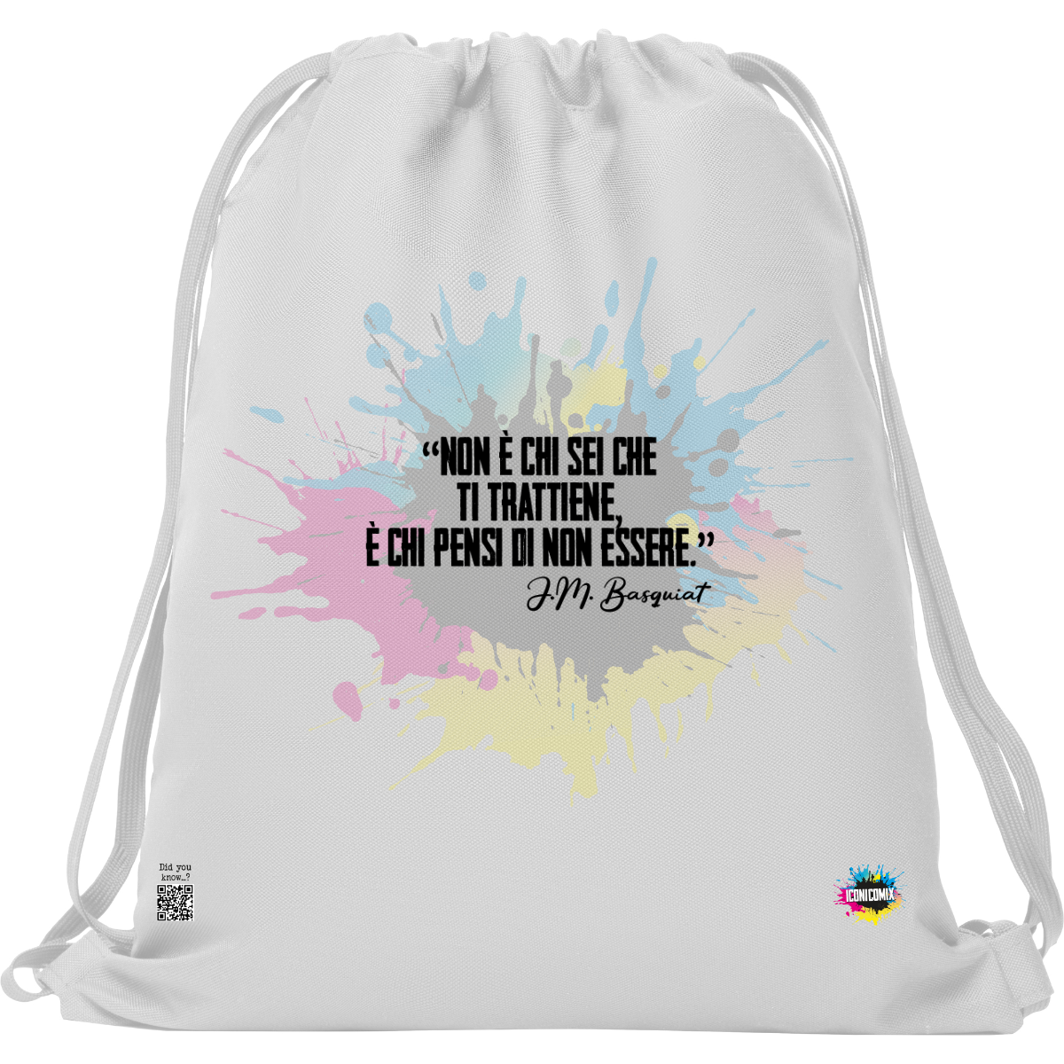 In ogni nostra grafica è presente anche un QR code che reindirizza al sito iconicomix.com, alla pagina ufficiale dell’icona che hai scelto. Una porta digitale che racconta la sua storia, le sue frasi e il suo mondo.