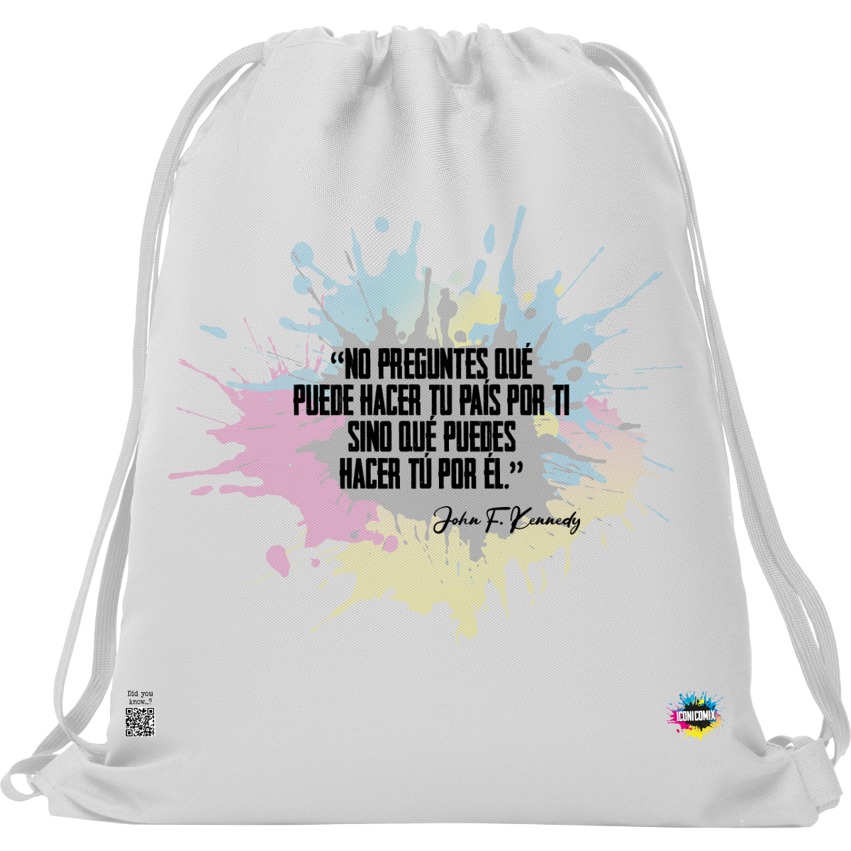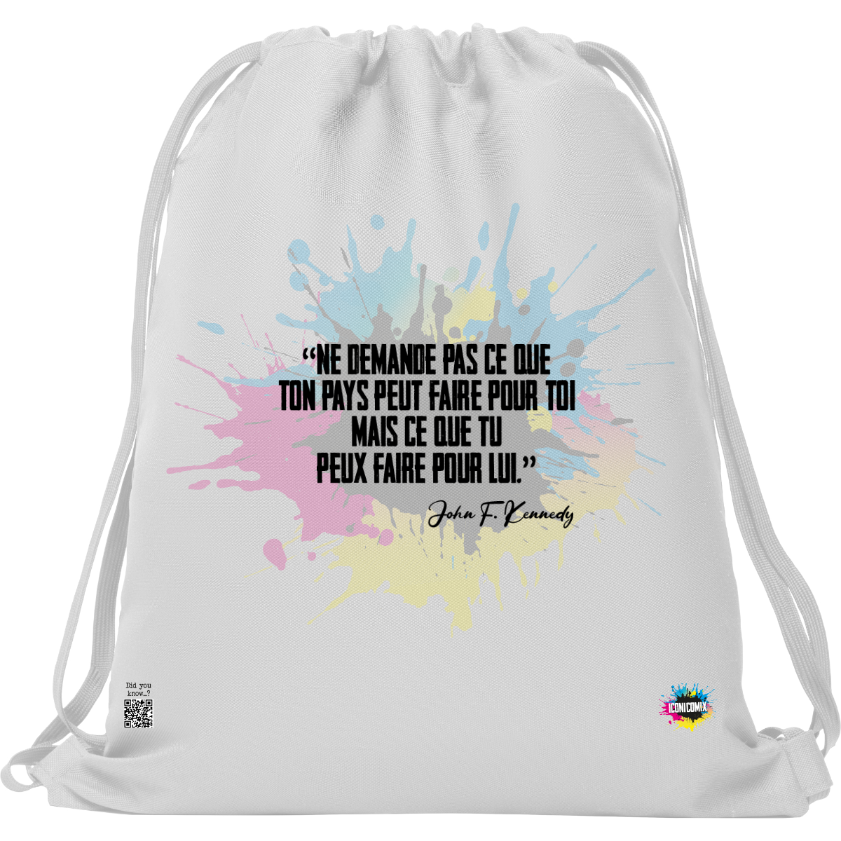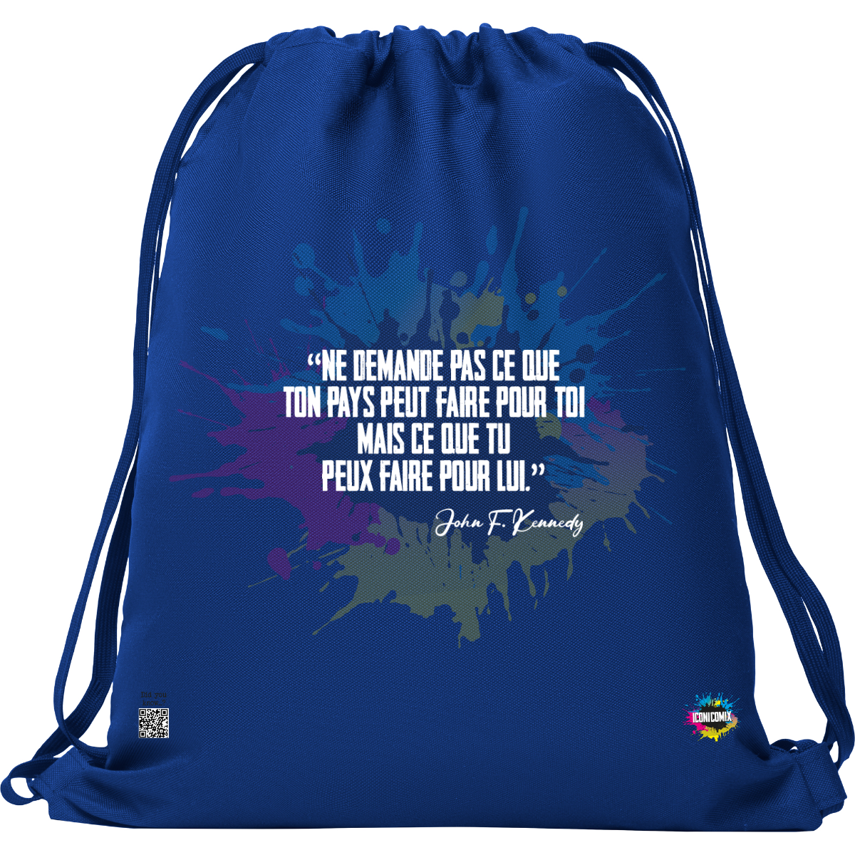 Multipurpose cotton backpack. Adjustable matching drawstrings on the back, 8 mm thick. 100% cotton, 140 g/m².  Measures 37cm / 41cm